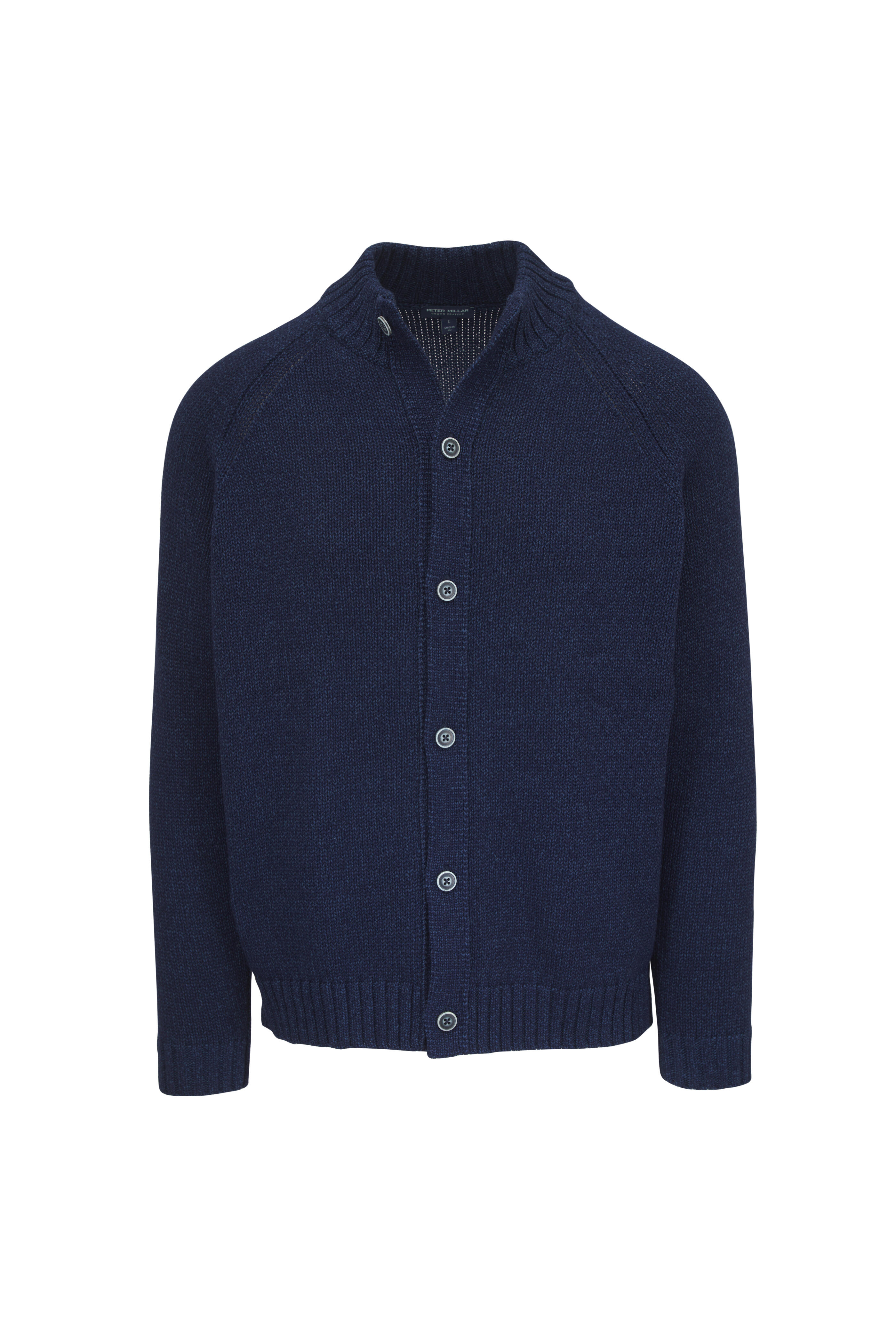 Crew neckline. Front button placket. Ribbed knit trim. Three gauge knit. Made in the UK. Approximately 27" shoulder to hem (measurements taken from size L). Tailored fit. 70% cotton, 30% acrylic. Hand wash.