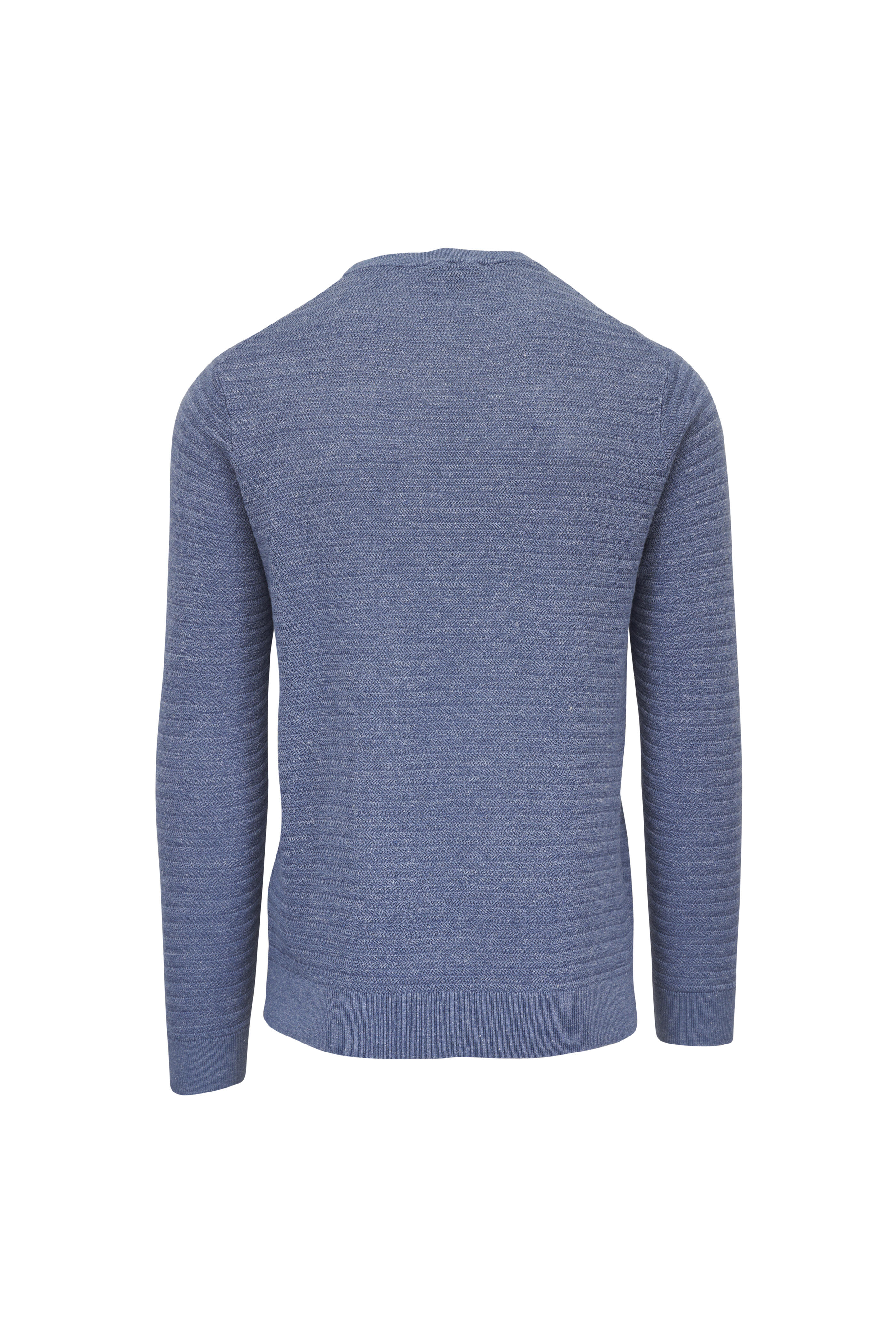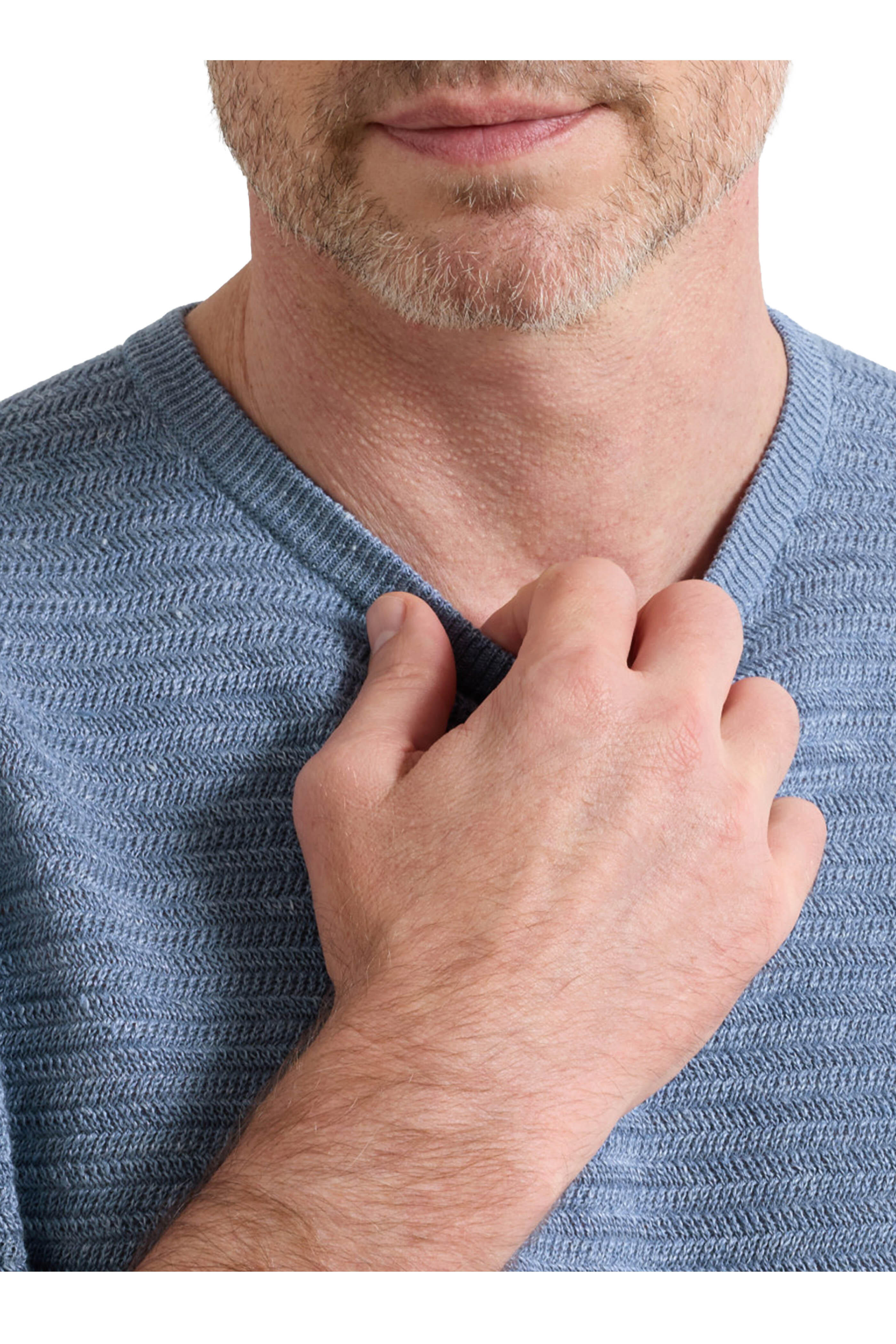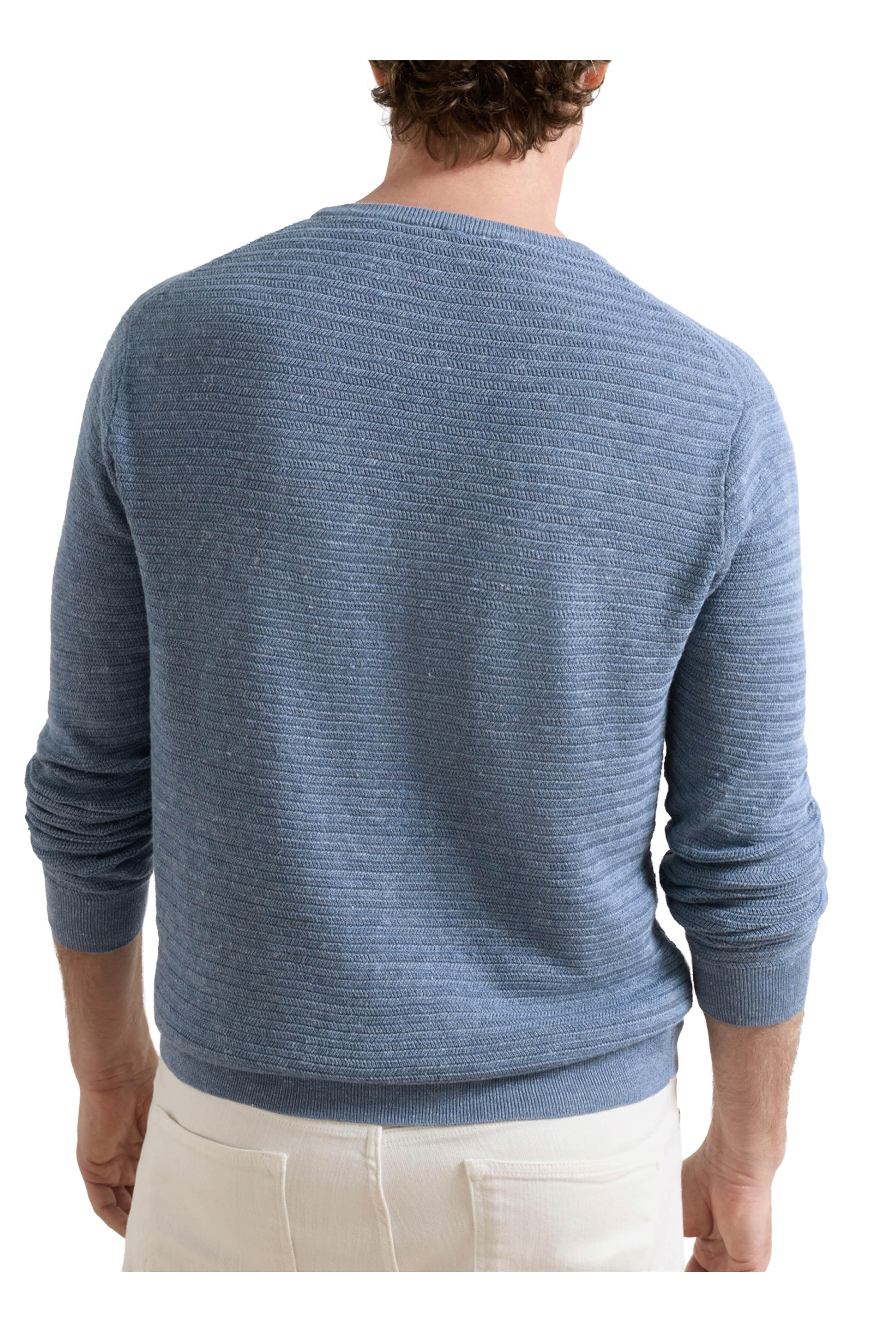 Crew neckline. Ribbed trims. Made in the UK. 73% linen, 27% cotton. Hand wash.