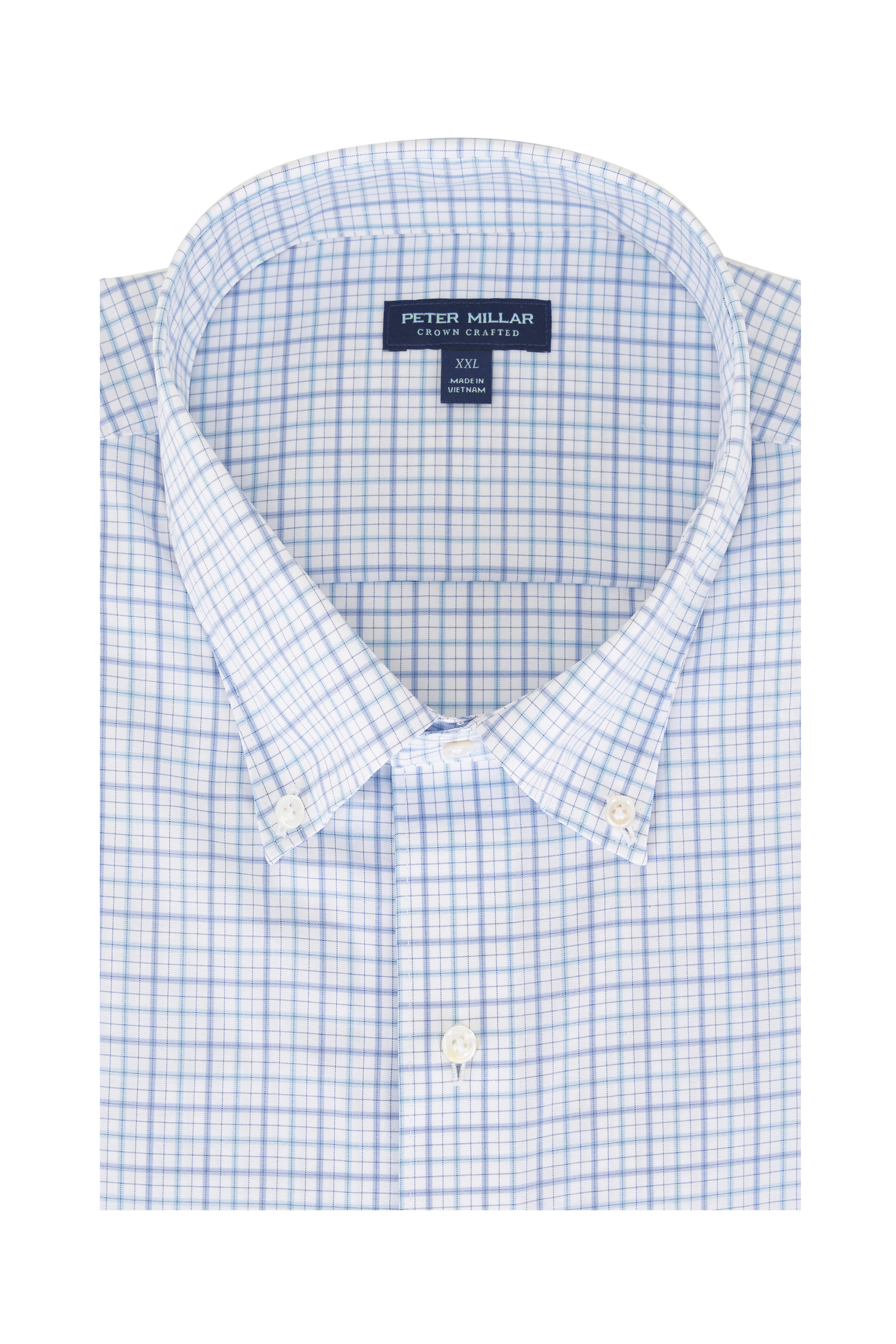 Button down collar. French front button placket. Single button adjustable mitered cuffs. Imported. UPF 50+ sun protection. Tailored fit. 100% polyester. Machine wash. Four-way stretch, wicking, quick-dry and easy-care.