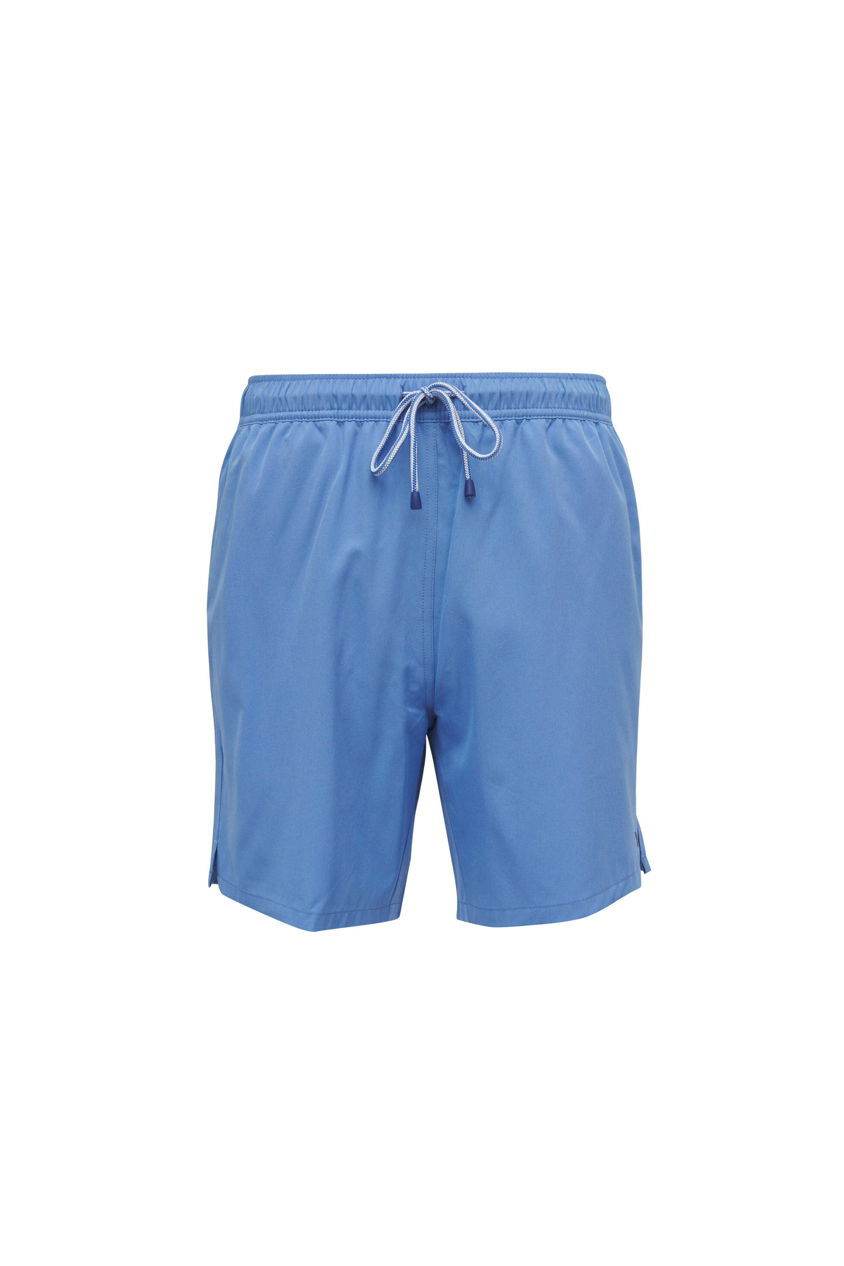 Drawstring waist. Lower waist side pockets; back snap button pocket. Imported. Inseam: 7". Classic fit. 88% polyester, 12% spandex; mesh lining. Machine wash.