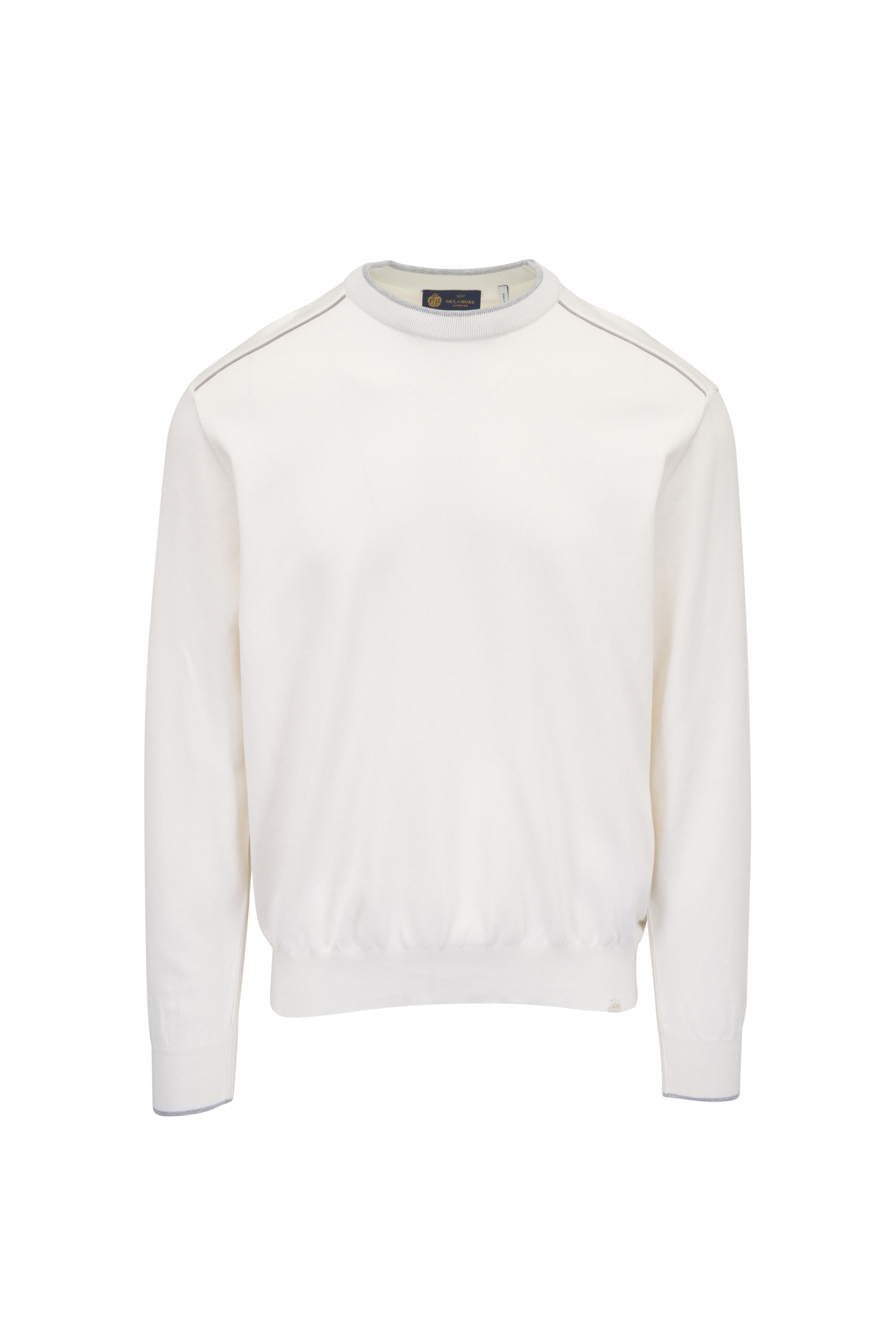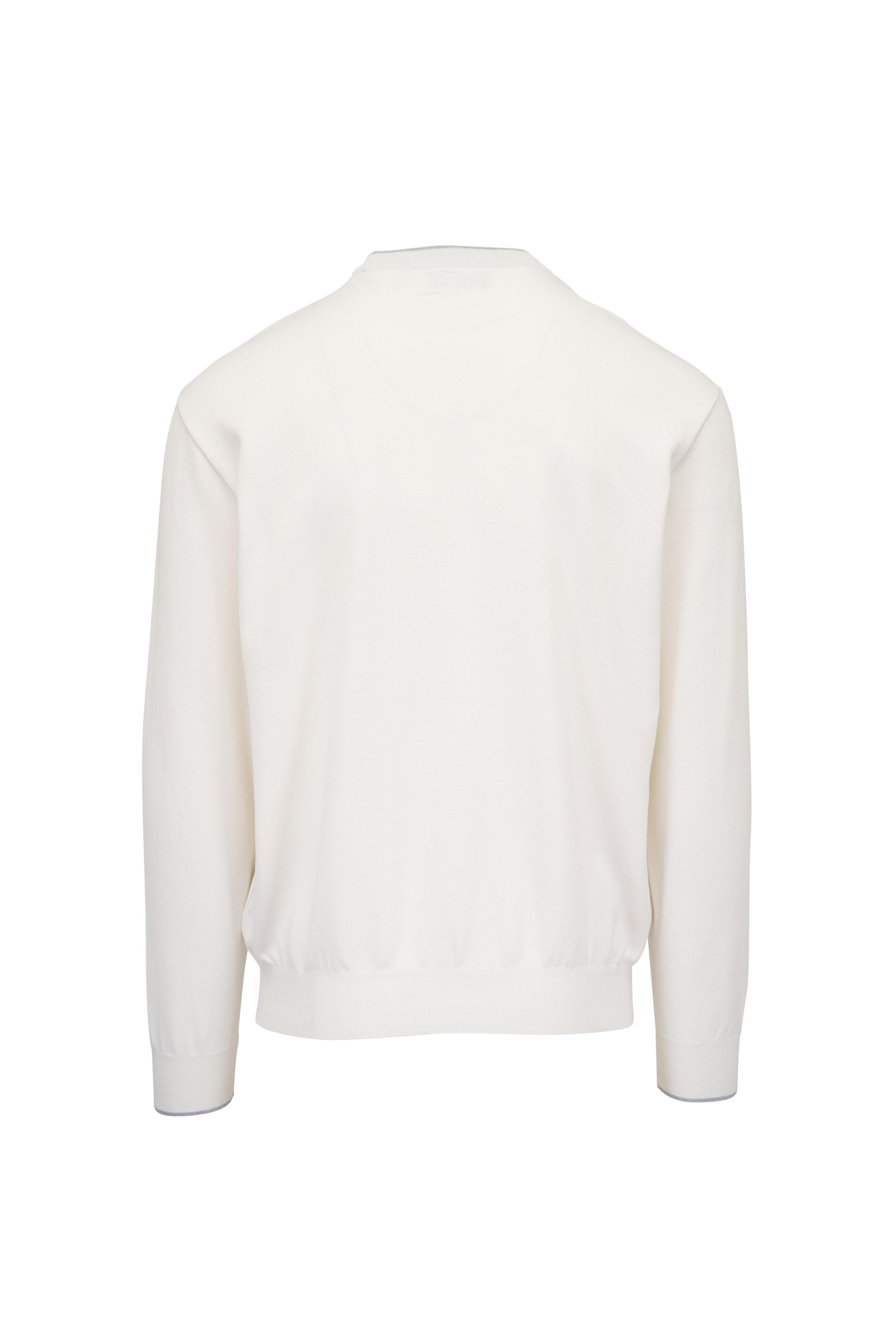 White Silk & Cotton Tipped Crewneck Pullover