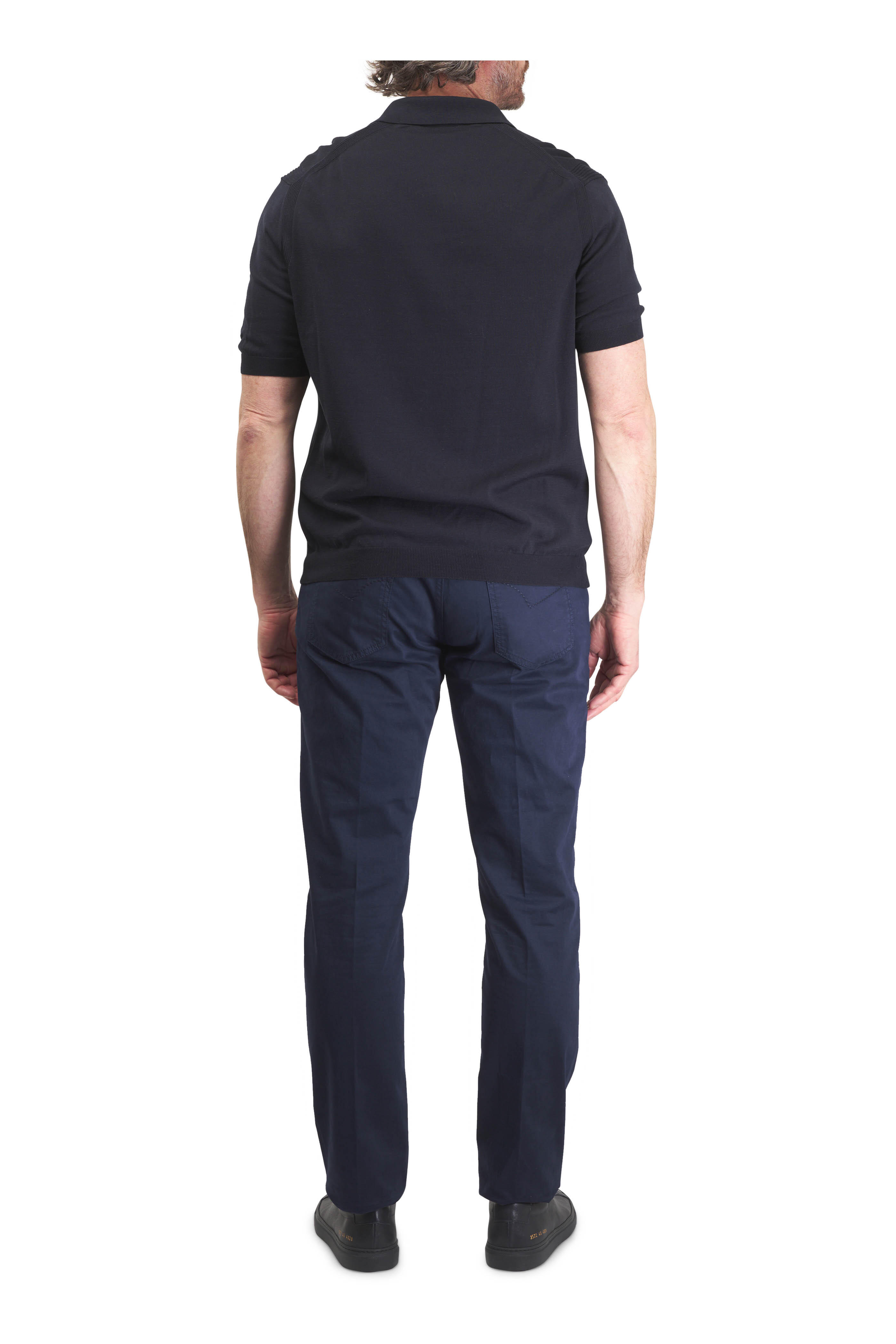 Navy Blue Silk & Cotton Knit Polo