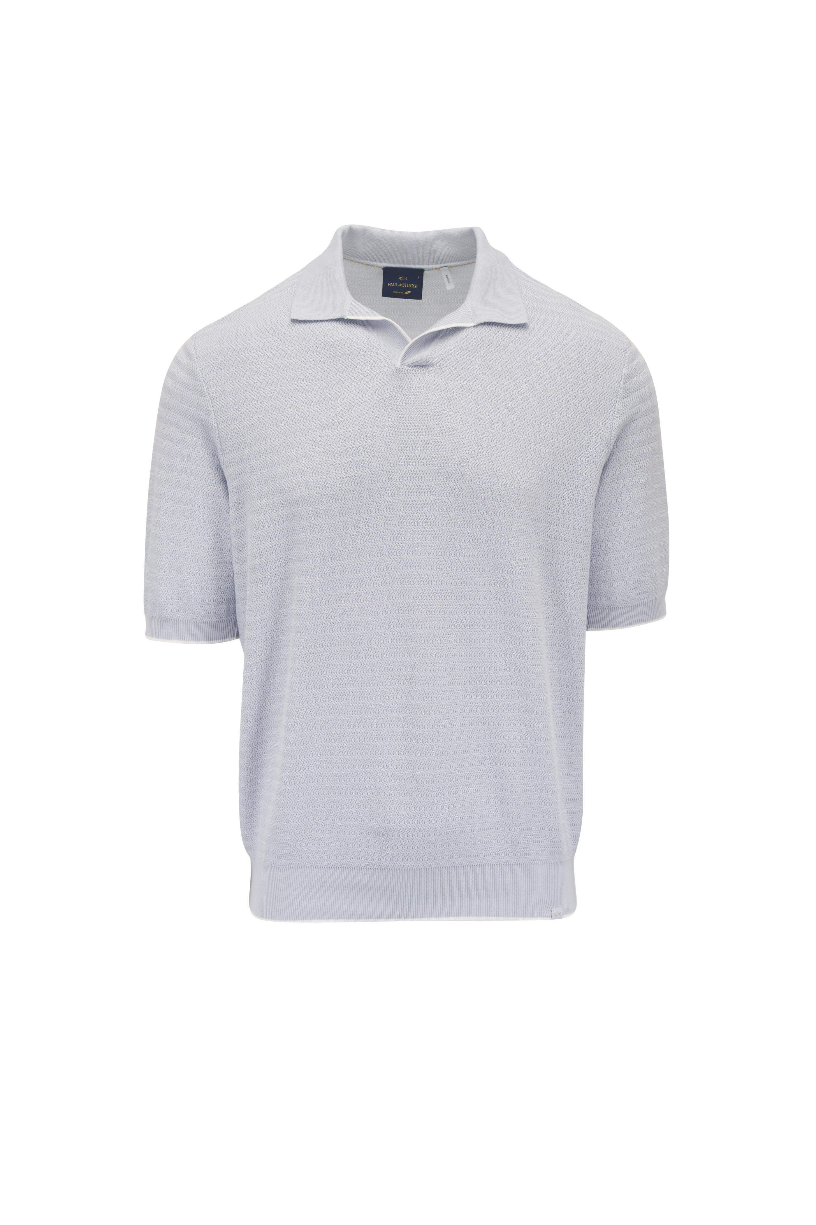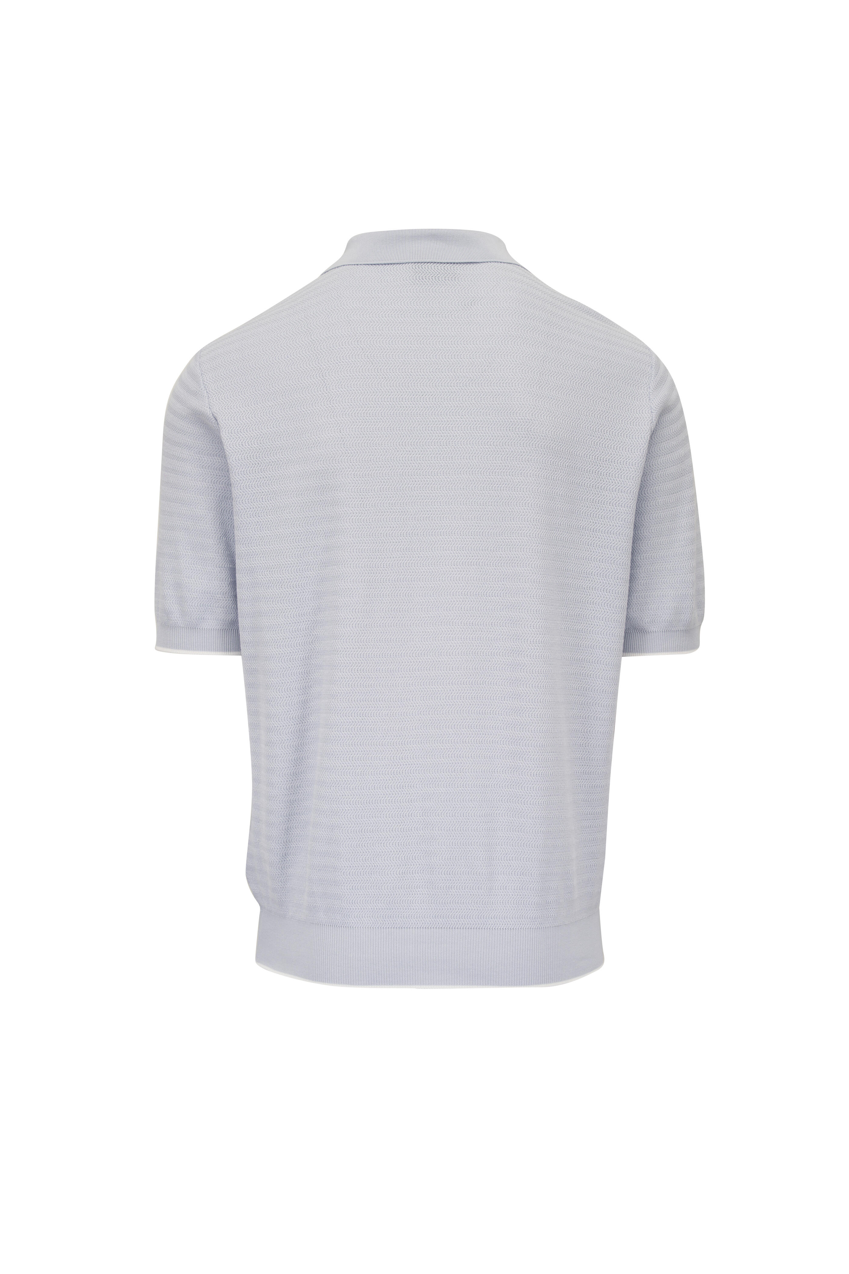 Spread collar. Buttonless v-neckline. Ribbed knit trim. Made in Italy. Approximately 26" shoulder to hem (measurement taken from size L). 100% cotton. Machine wash.