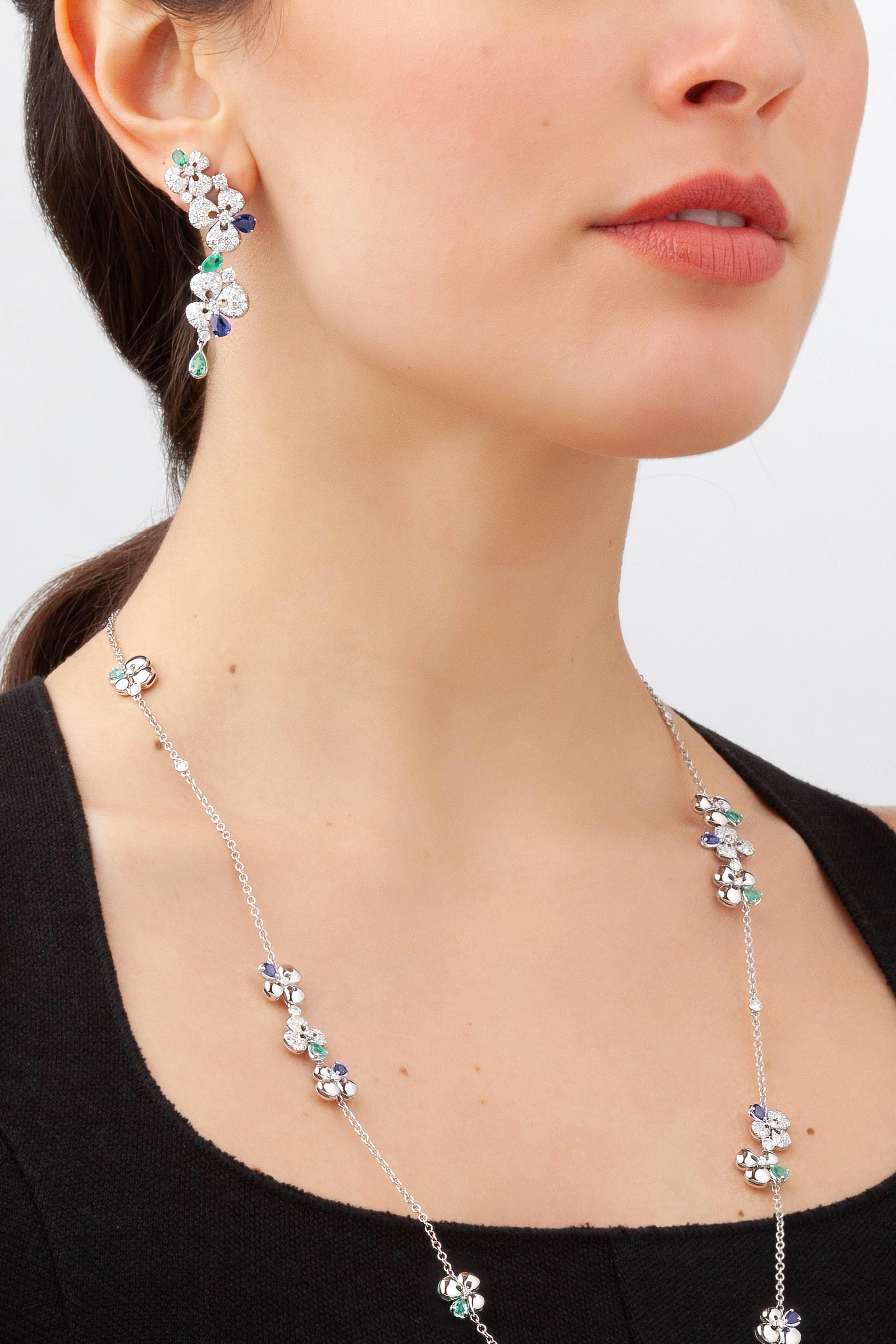 18k White Gold. 1.50 ct Blue Sapphire. 2.72 ct Diamond. 1.02 ct Emerald.