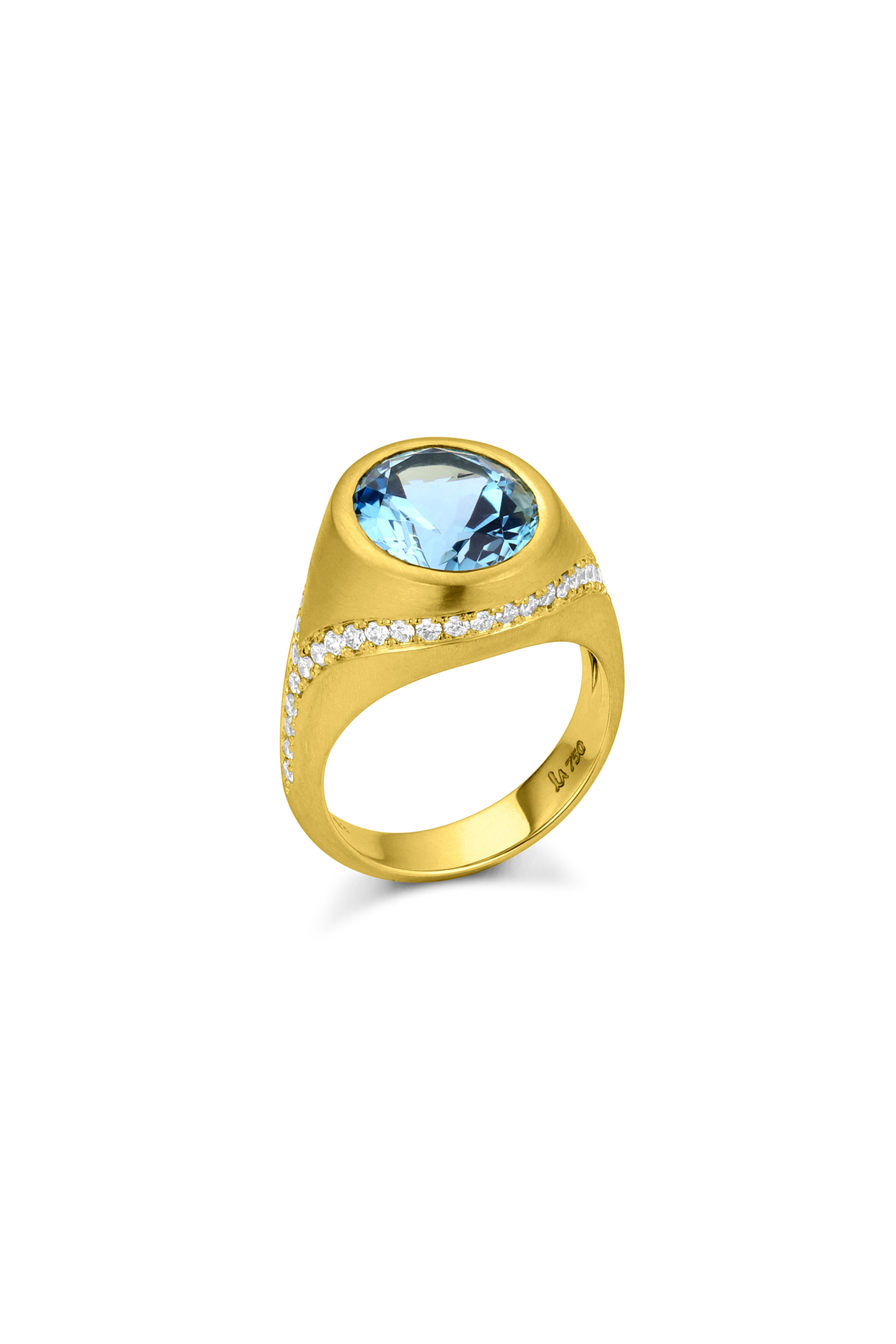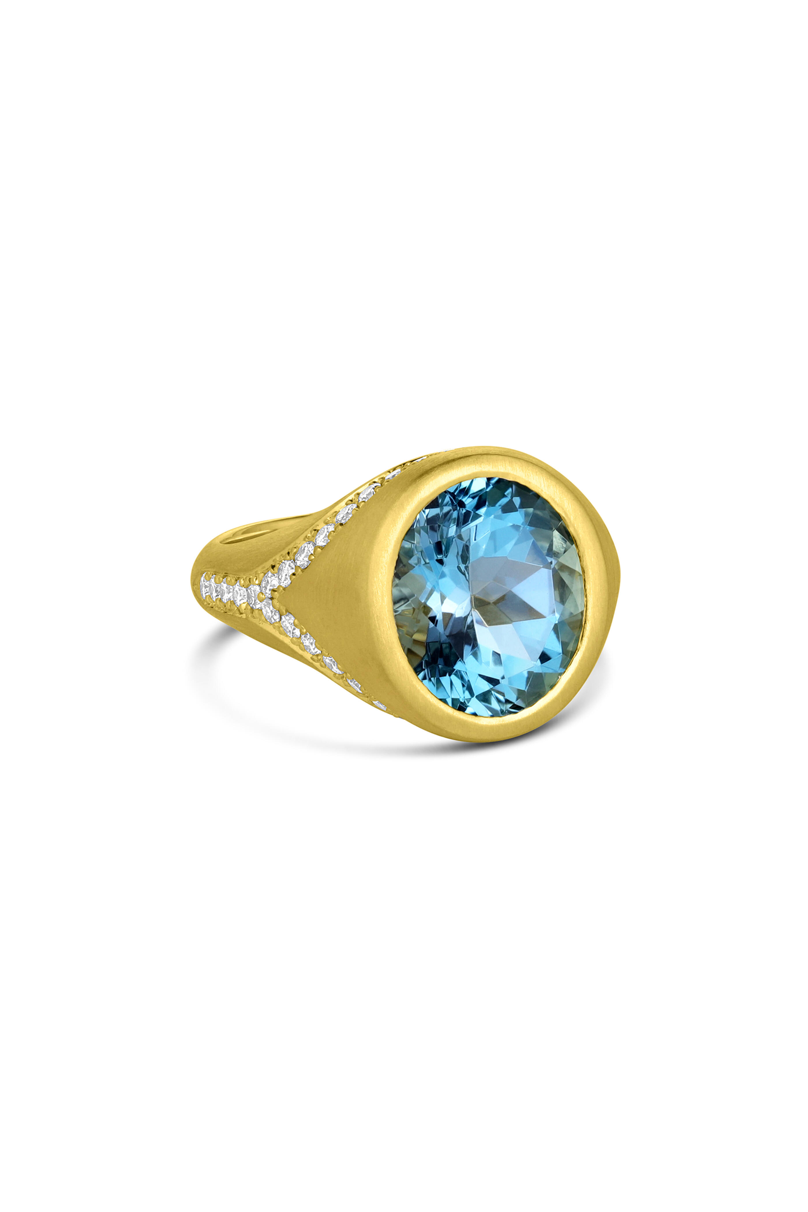 • Leigh Maxwell - 18k Yellow Gold Aquamarine & Diamond Bezel Ring