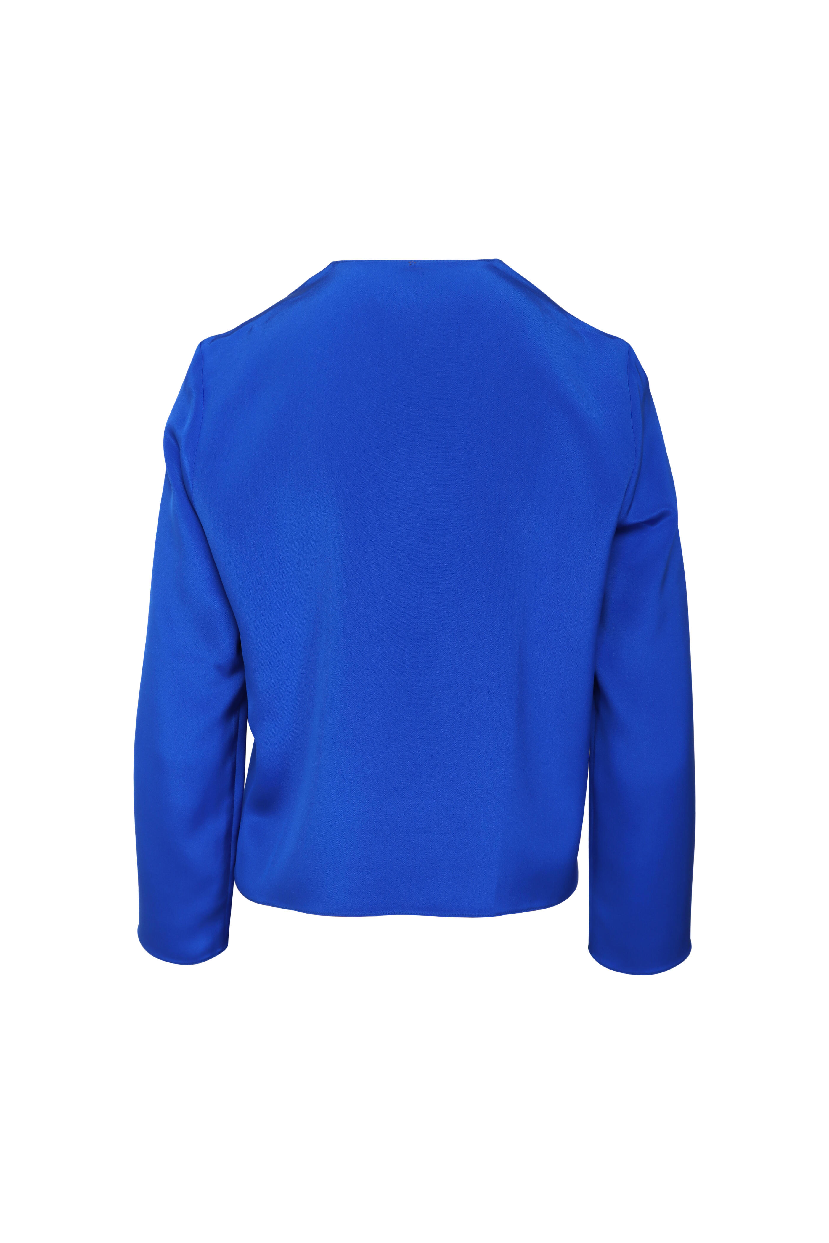 Split v neck. Long sleeves. Center front foldover detail. Relaxed fit. Made in USA. 100% silk. Dry clean.