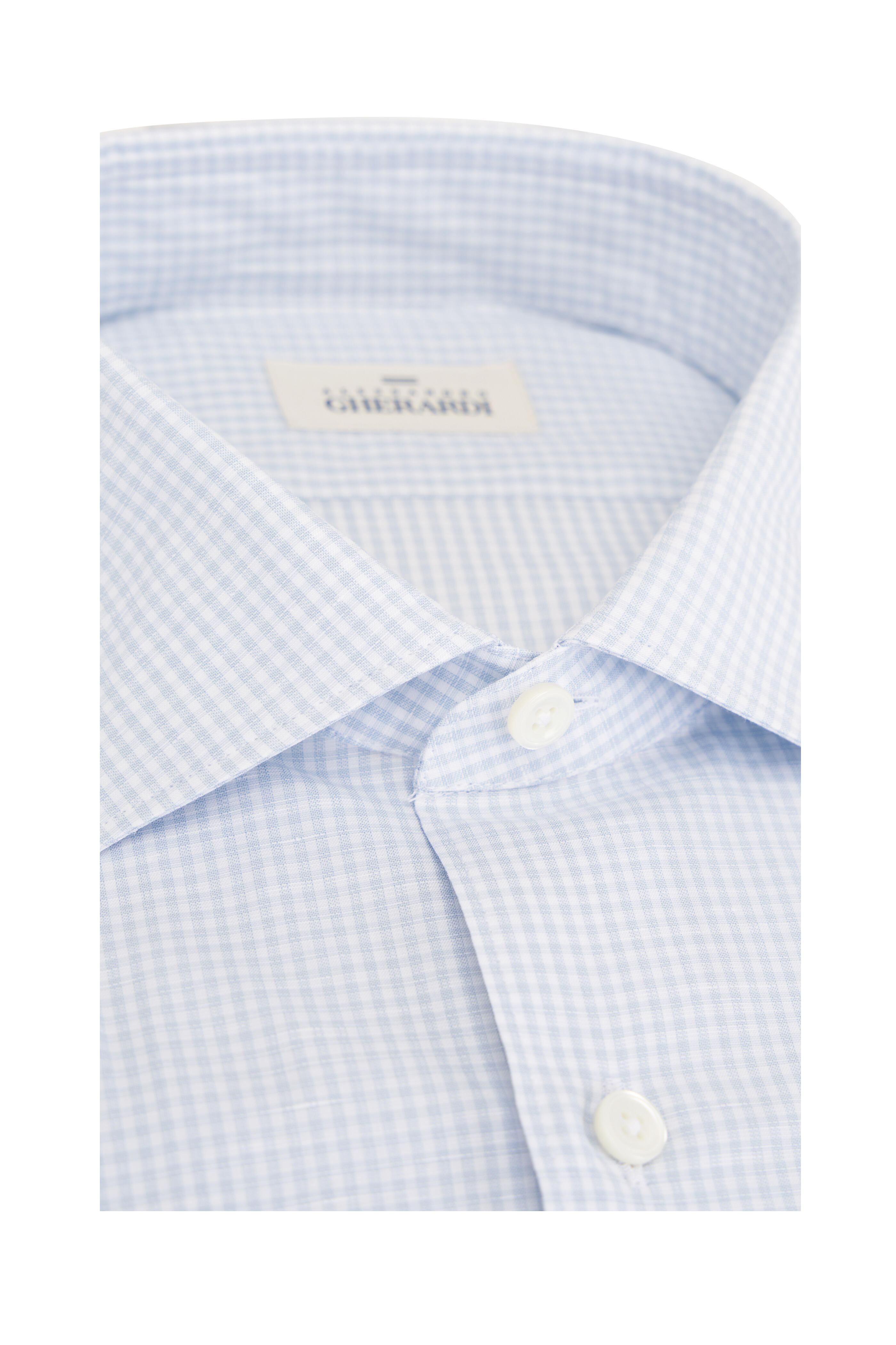 Cutaway collar. French front button placket. Single-button adjustable barrel cuffs. Made in Italy. 64% cotton, 36% linen. Machine wash.