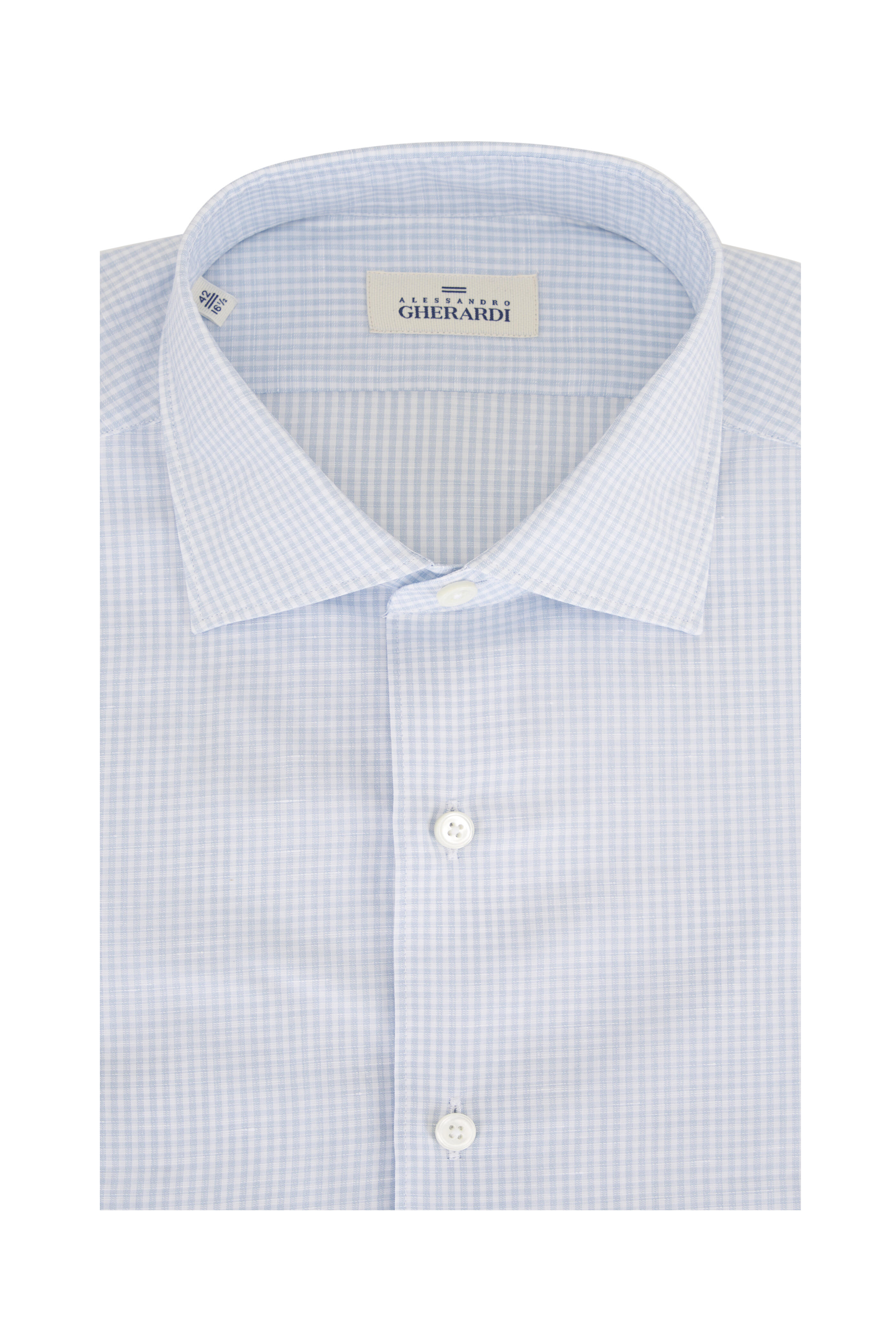 Blue Micro Check Cotton & Linen Dress Shirt