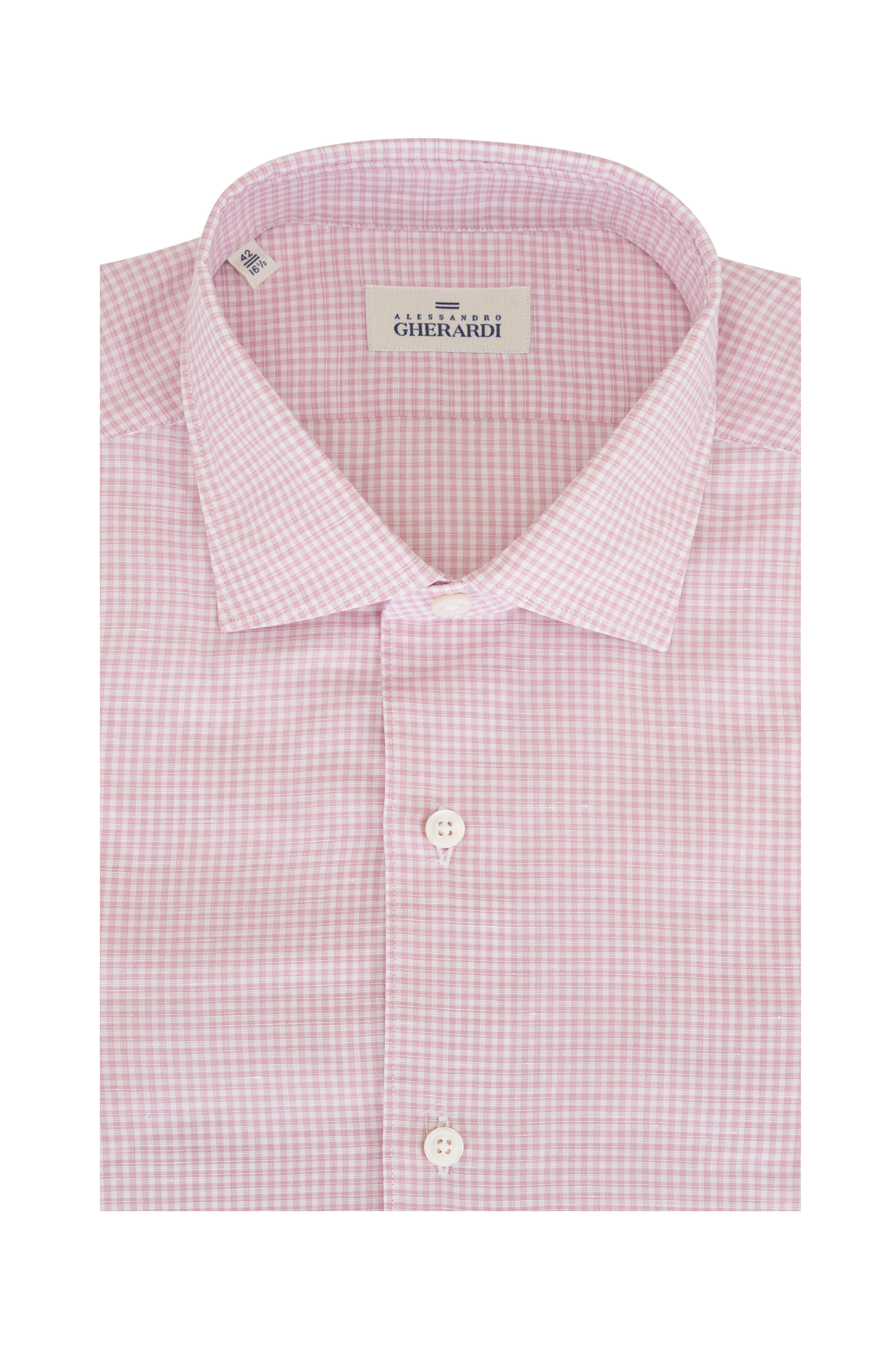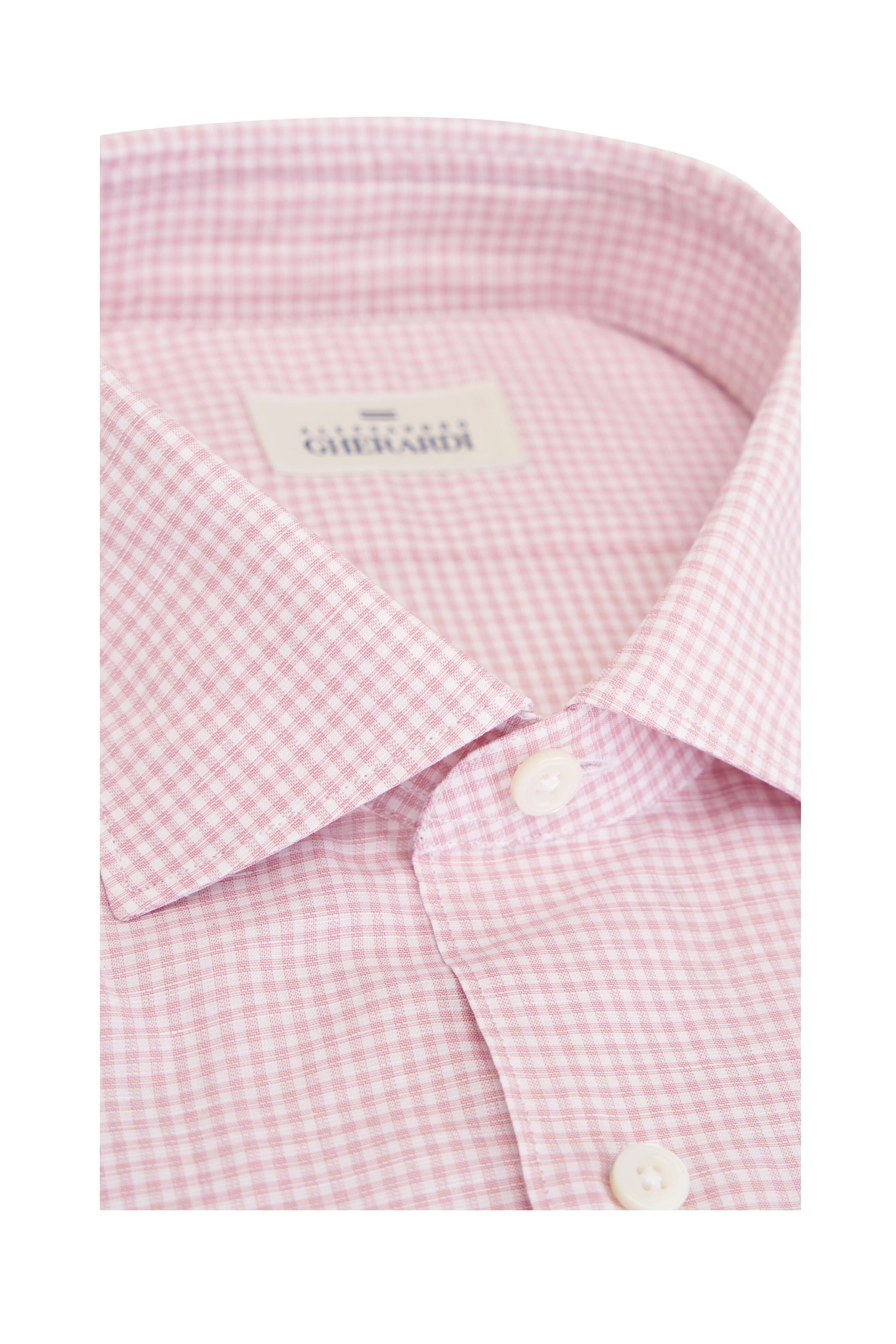 Red Micro Check Cotton & Linen Dress Shirt