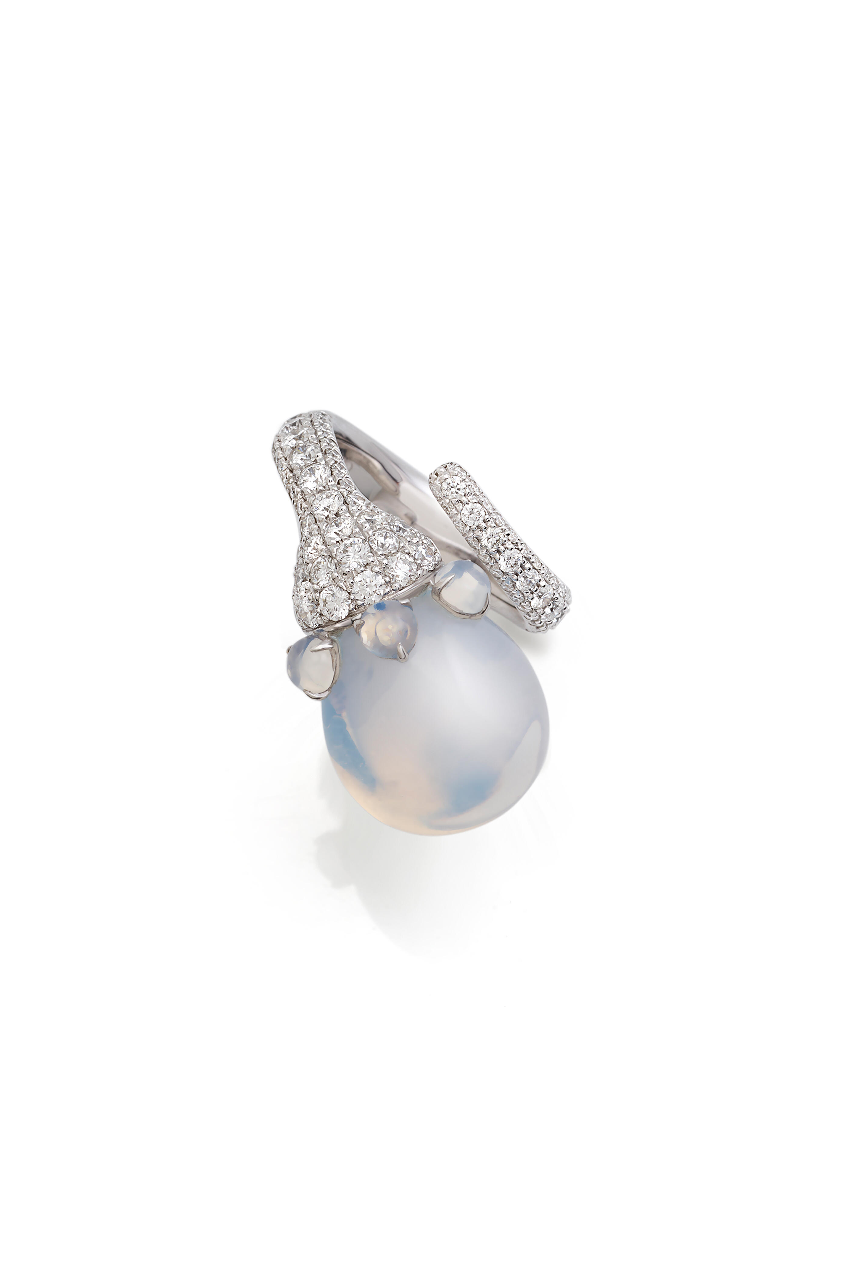 18k White Gold. 1.39 ct Diamond. 3.40 ct Crystal Pearl.