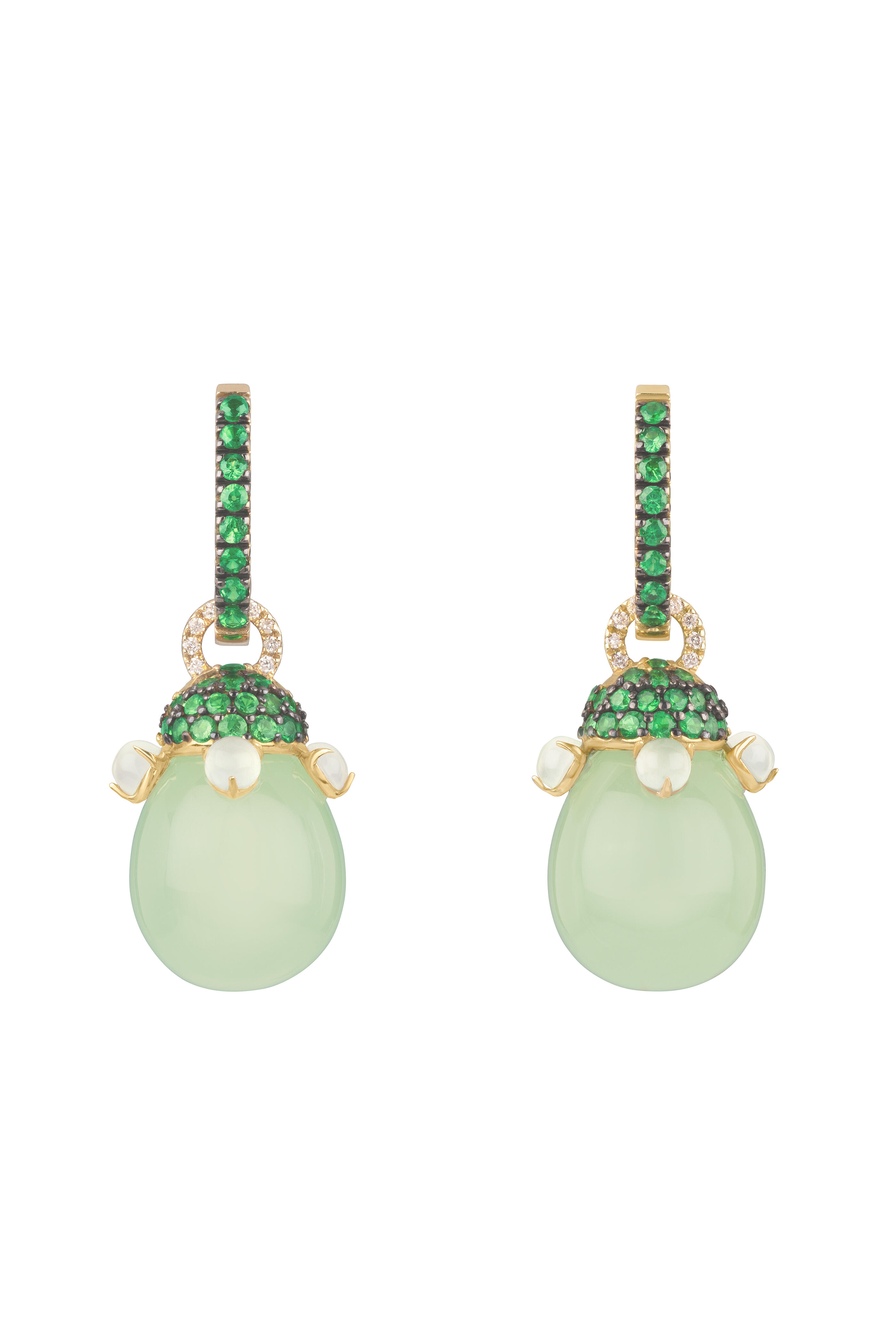 18k Yellow Gold Tsavorite & Diamond Drop Earrings
