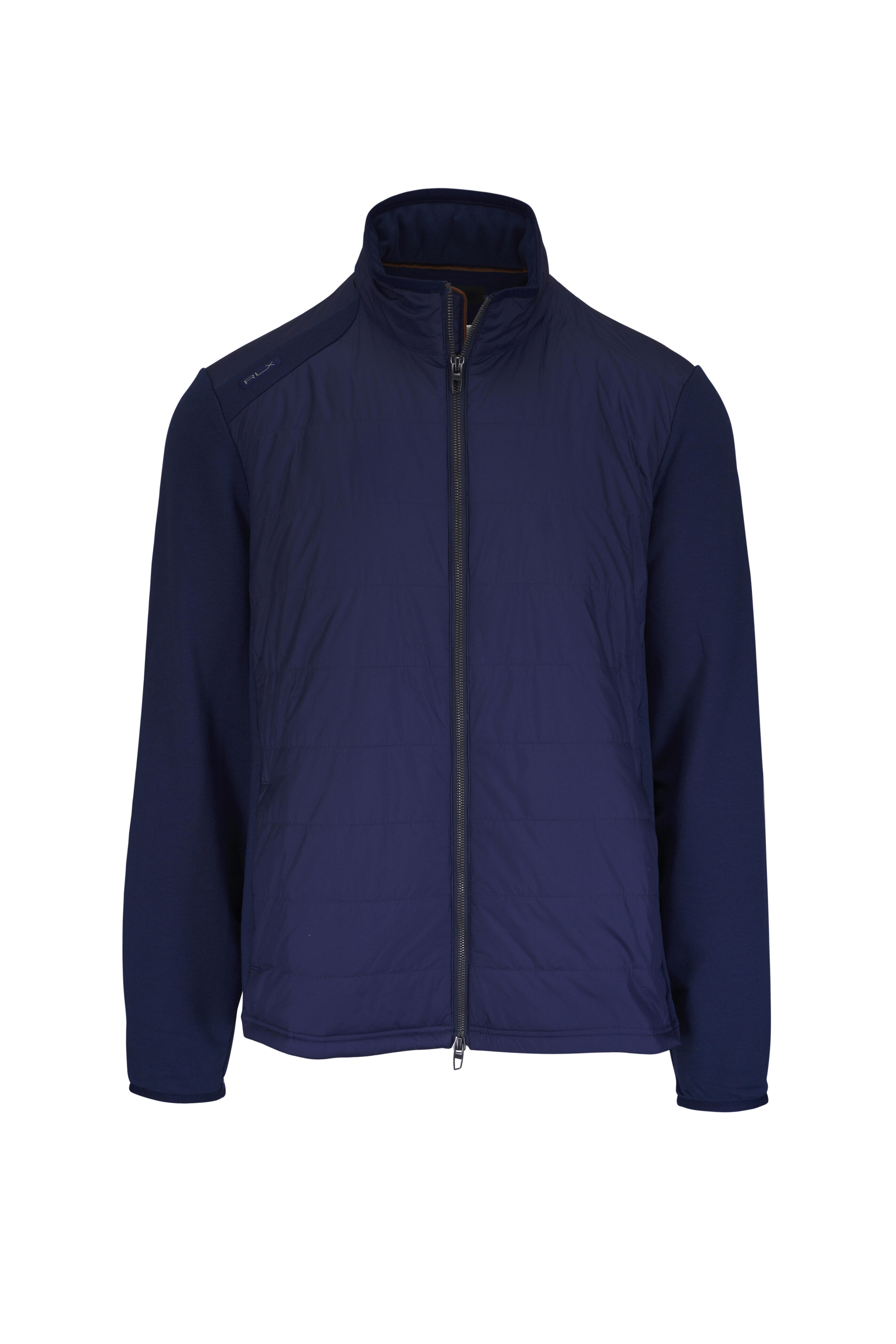Mockneck collar. Two-way front zip. Zip front pockets. Straight hem. Imported. Shoulder to hem 28" (size l). 66% Modal, 28% wool, 6% elastane; lined. Machine wash.