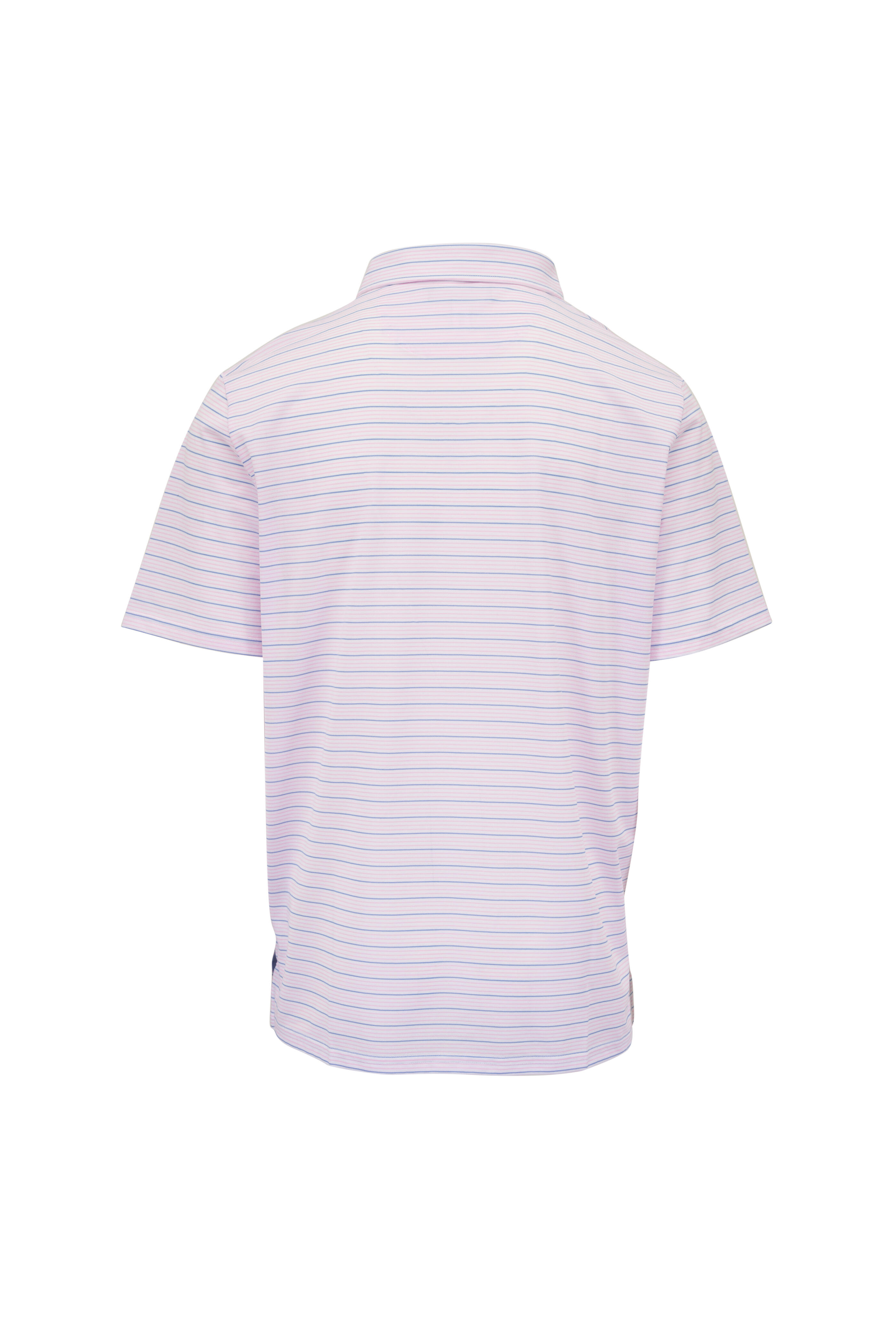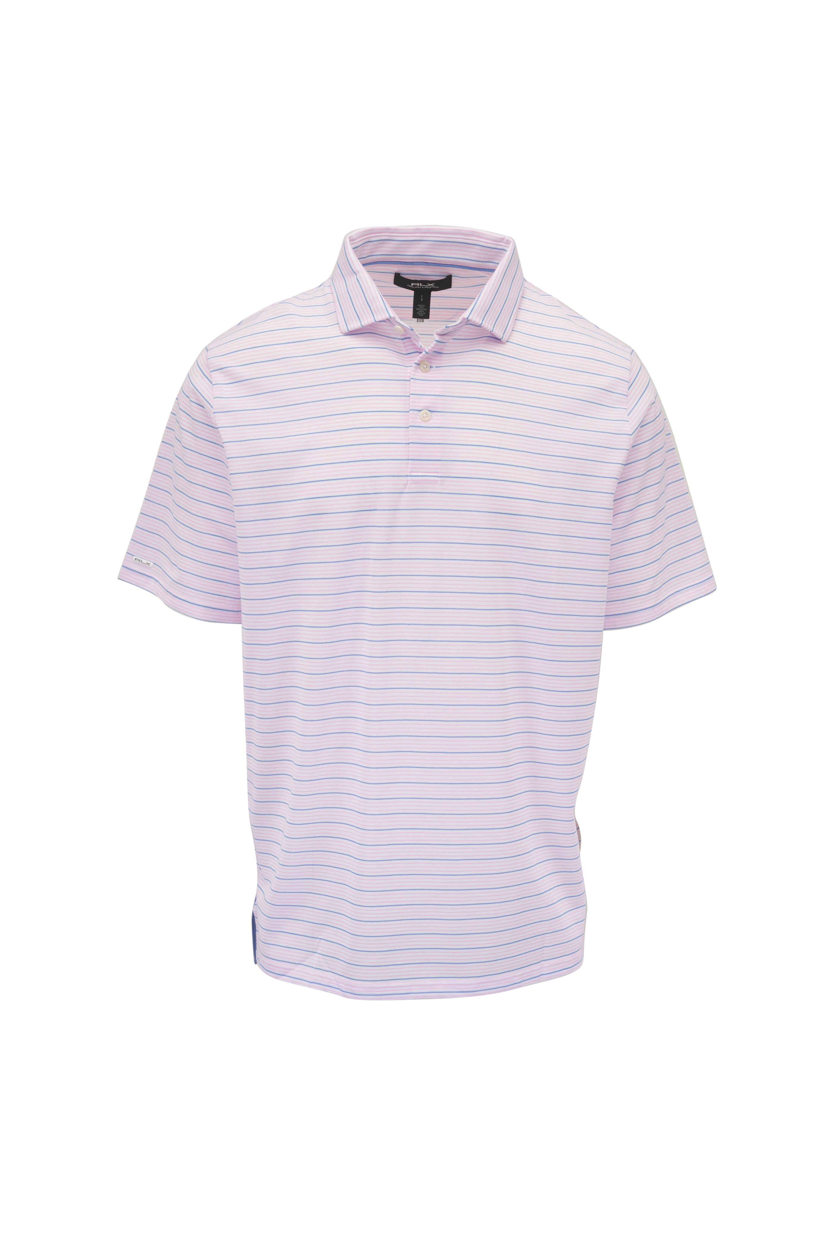 Polo collar. Three-button placket. Tennis tail. Imported. 54% cotton, 46% polyster. Machine washable.