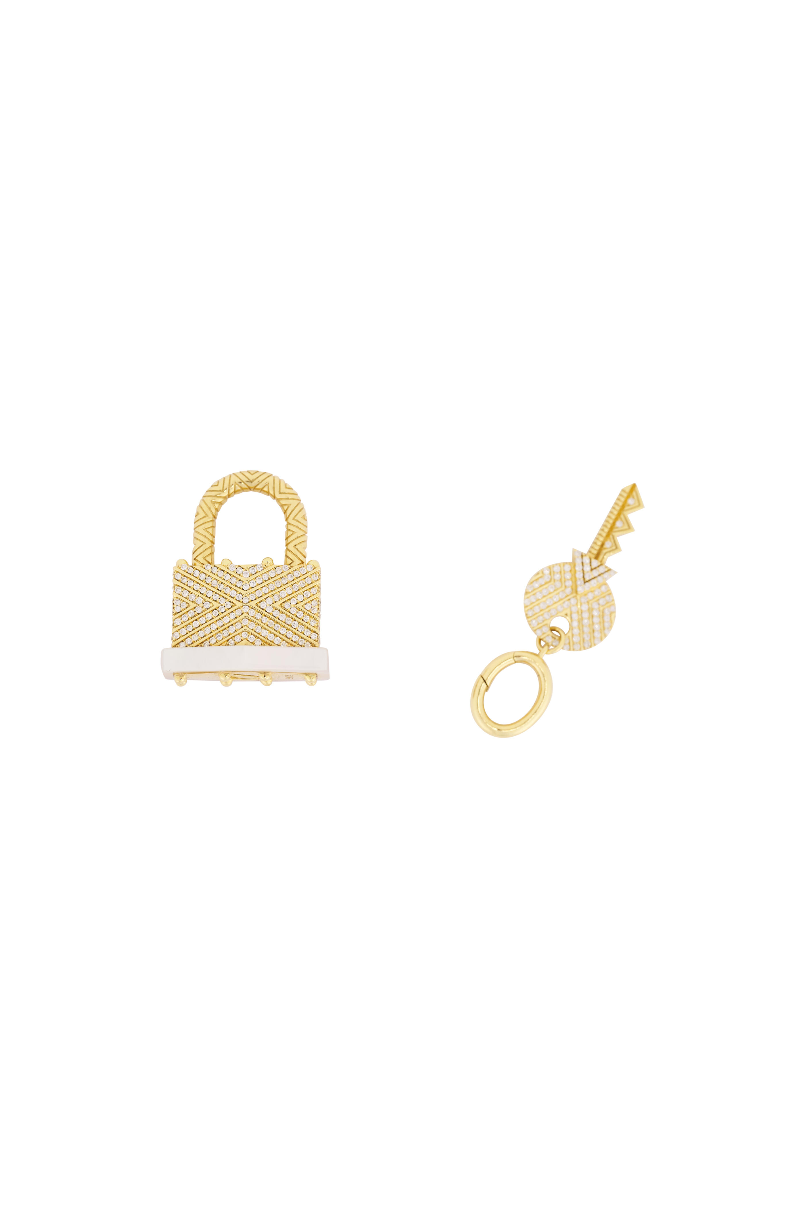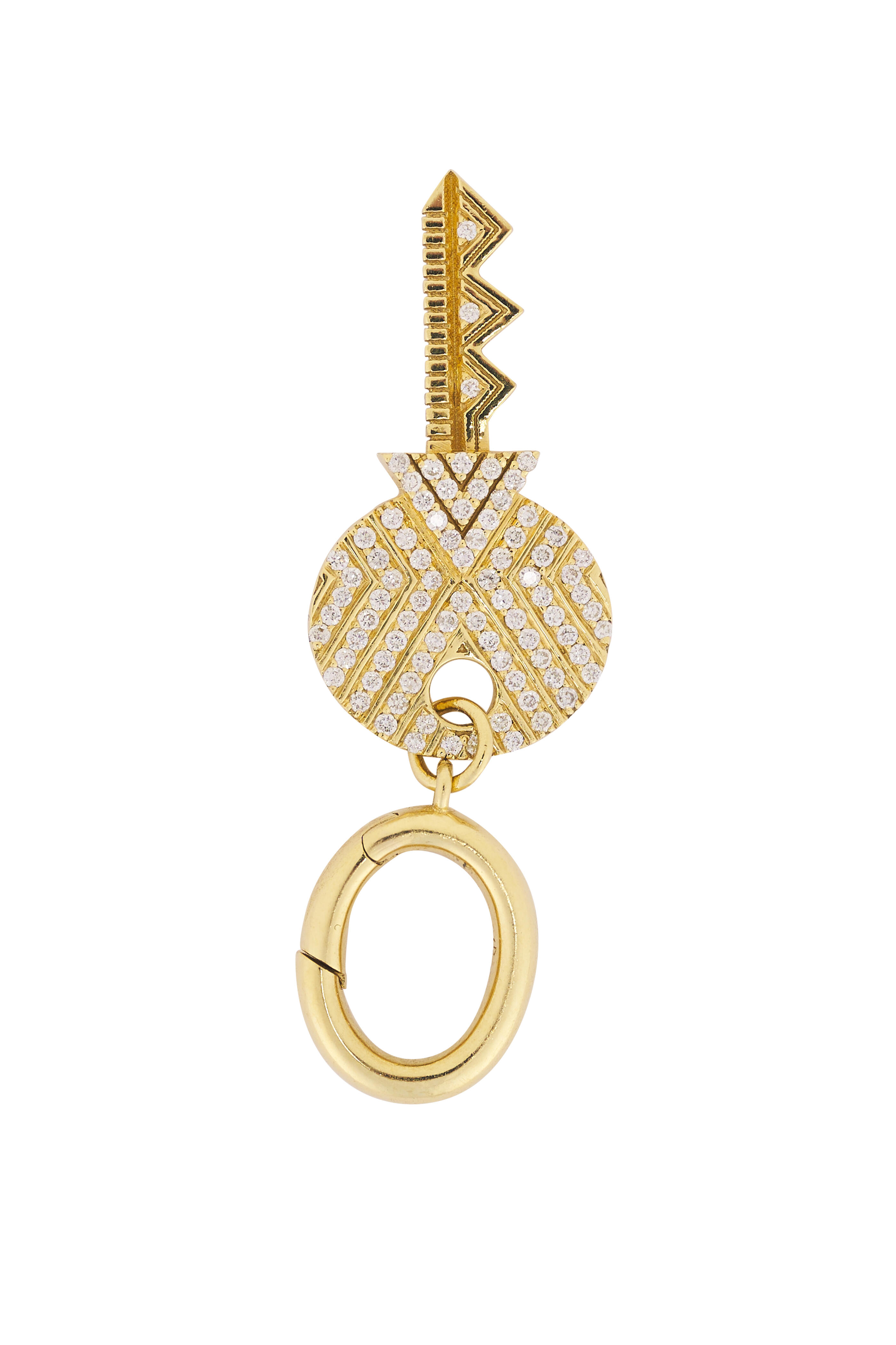 18k gold. Diamond 0.26 total carat weight. Lock design. Includes a key. Engraved detailing. Prong setting. Push down and turn lock closure. Made in the USA.