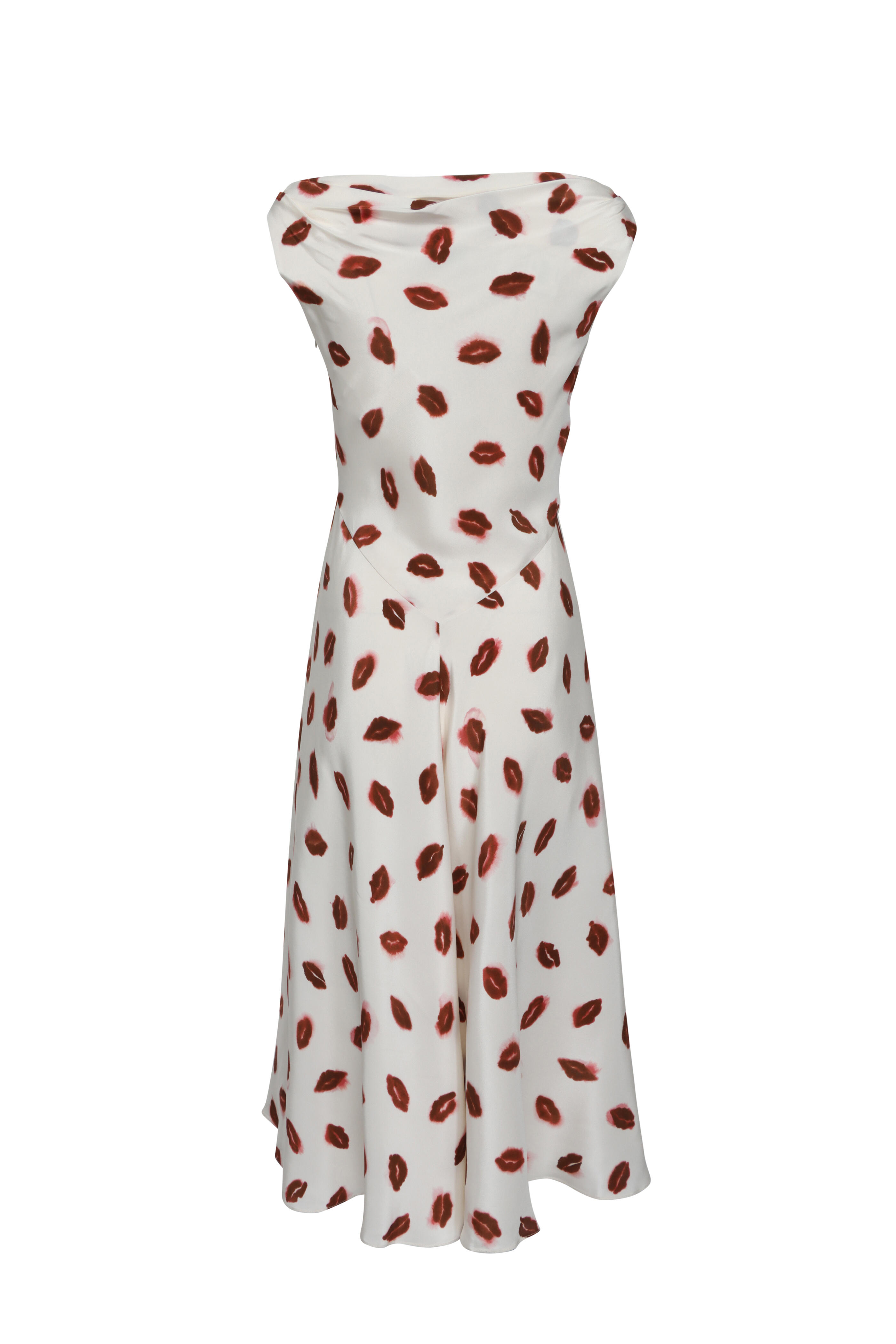 Cowl neck. Sleeveless. Concealed side zip closure. Slim through waist. Aline silhouette. Made in Italy. Maxi length. 100% silk. Dry clean.