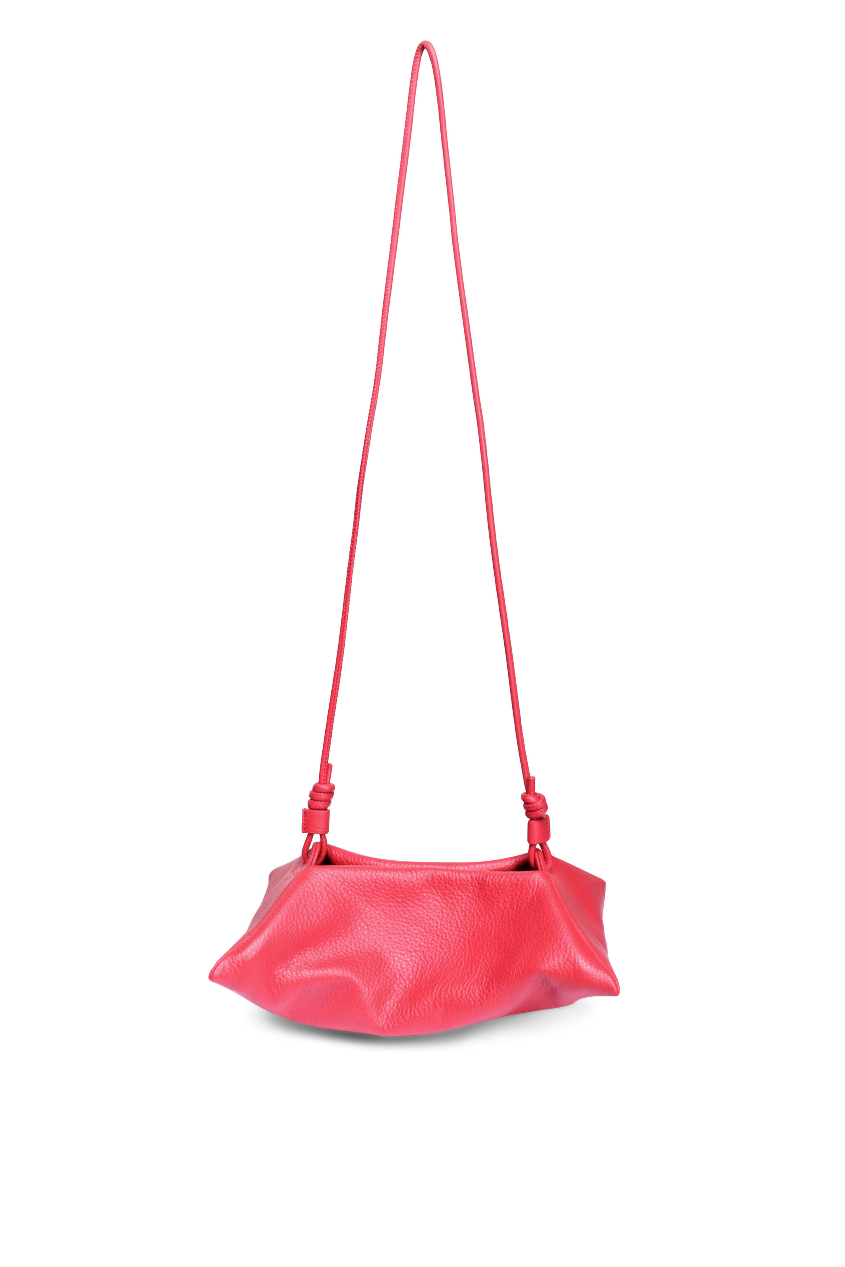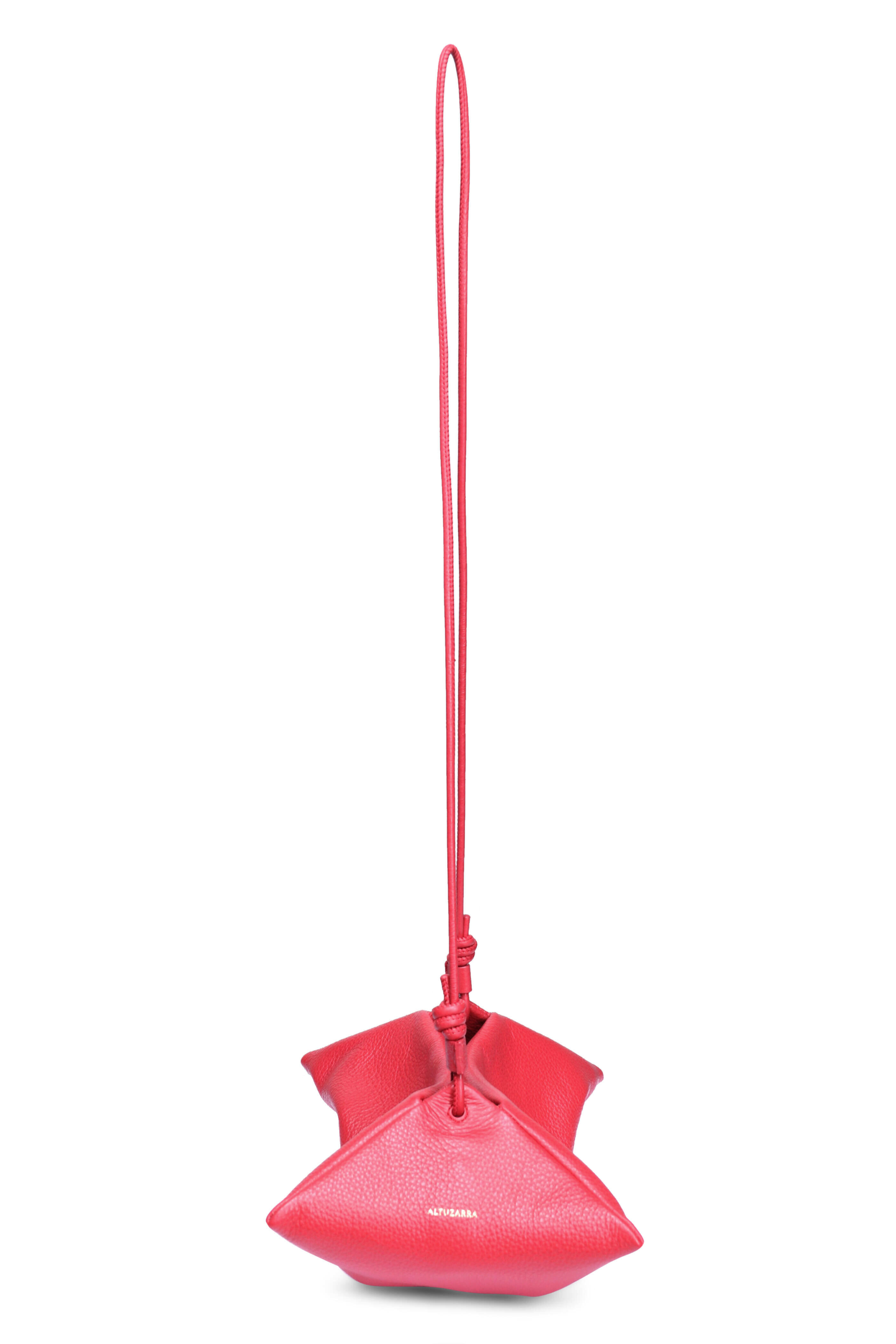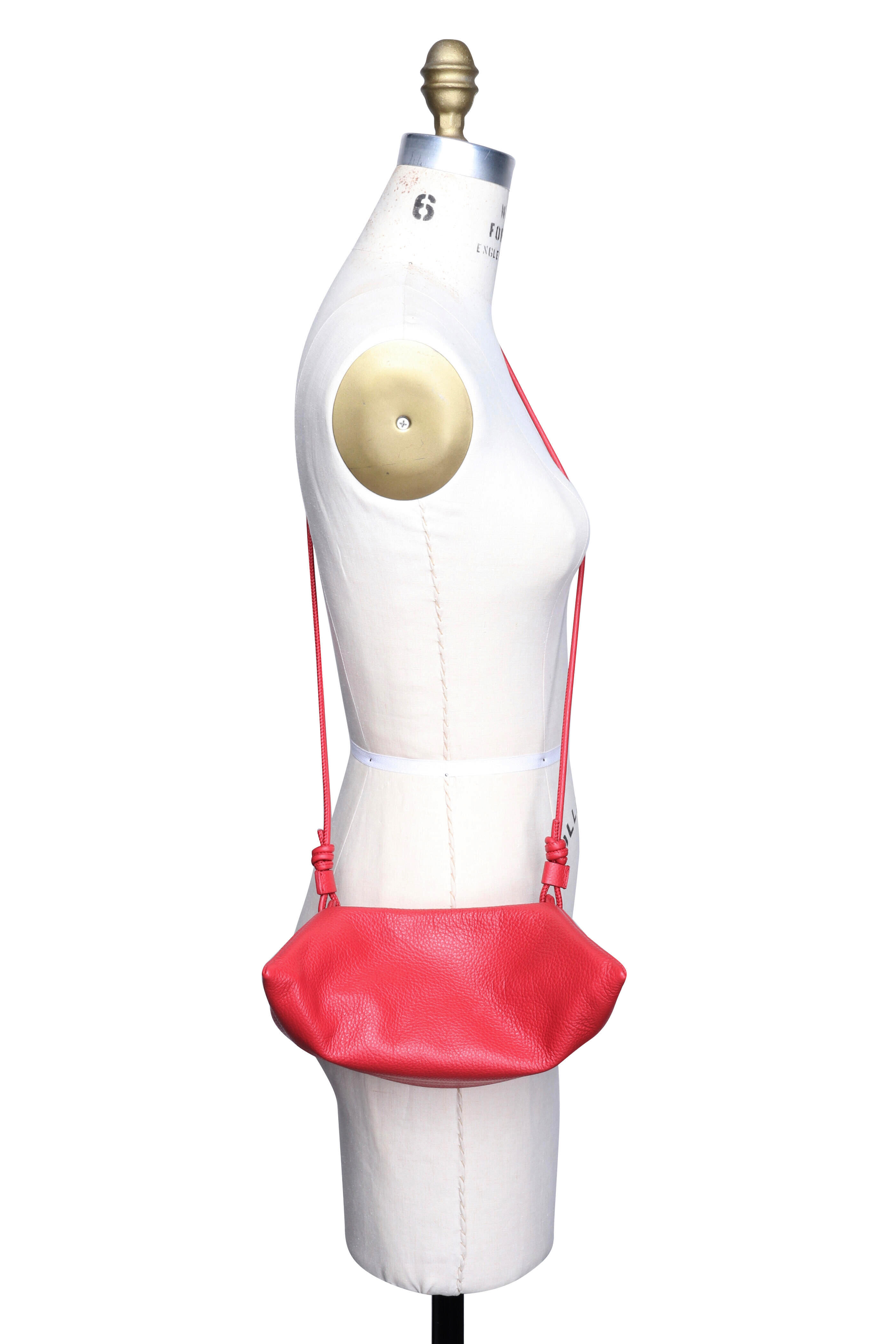 Grained leather upper. Suede lining. Magnetic closure. Adjustable elongated leather crossbody strap. Inspired by ancient art of origami. Made in Spain. 6” x 2” x 7.5”. Strap drop: 20.5”.