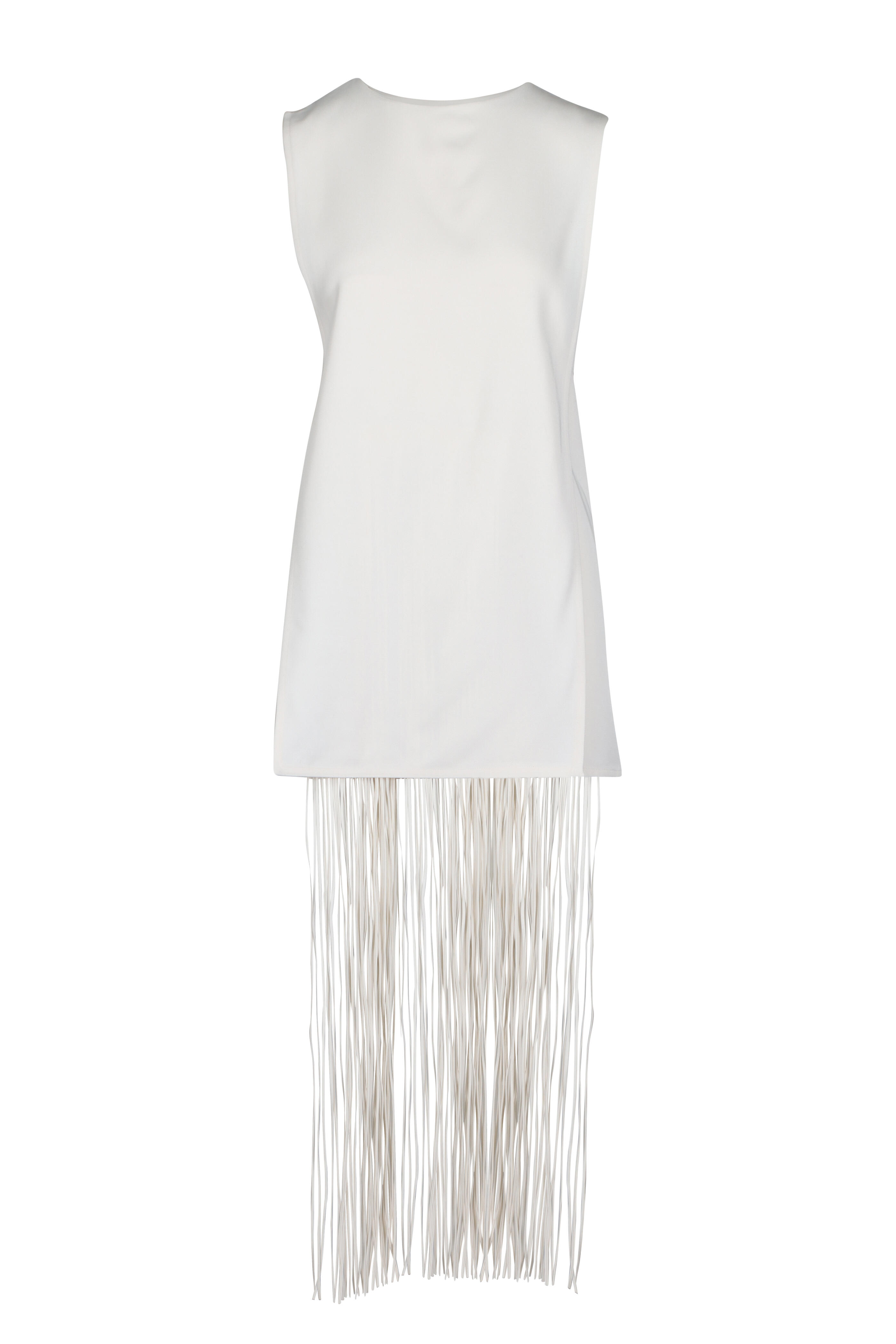 Unlined. Heavyweight crepe fabric. Hidden back zip closure. Detachable fringe skirt design with snap button closure. Imported. 53% rayon, 47% viscose. Dry clean only.