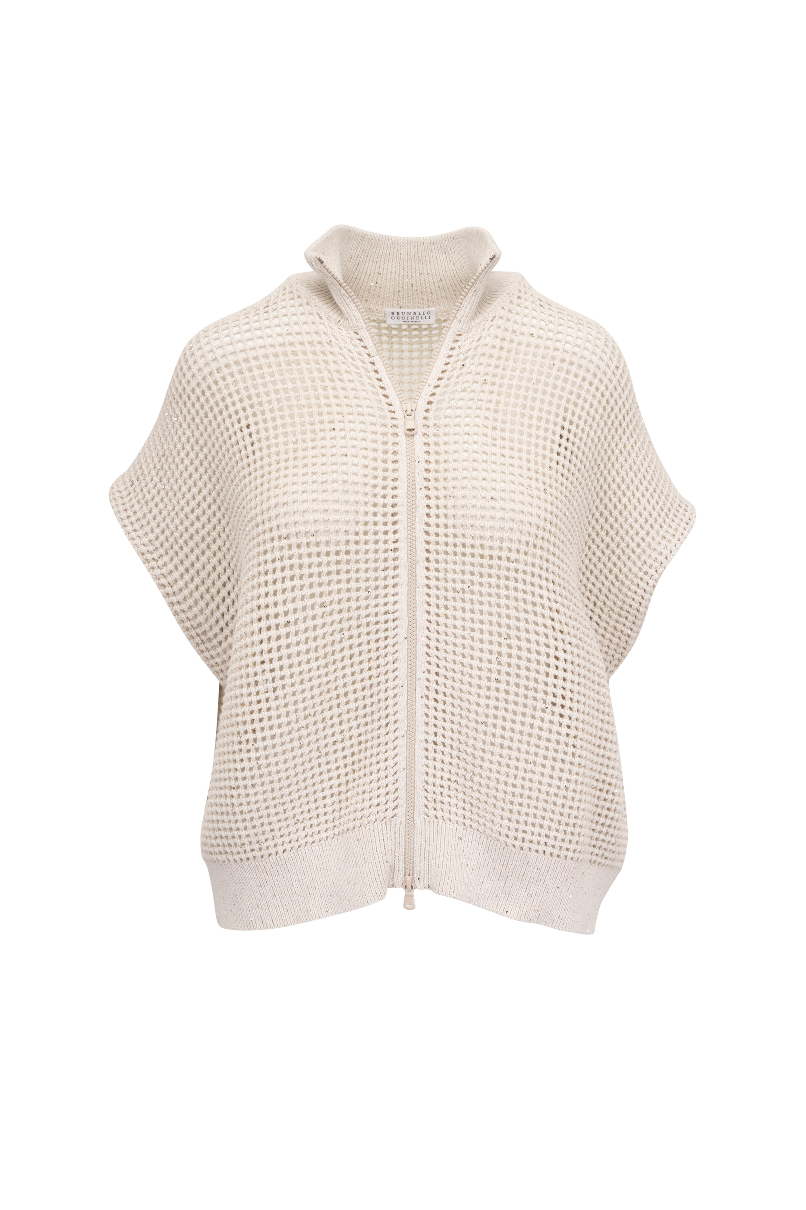 High collar. Two-way zip. Sequin detailing. Made in Italy. 96% cotton, 4% polyester. Hand wash.