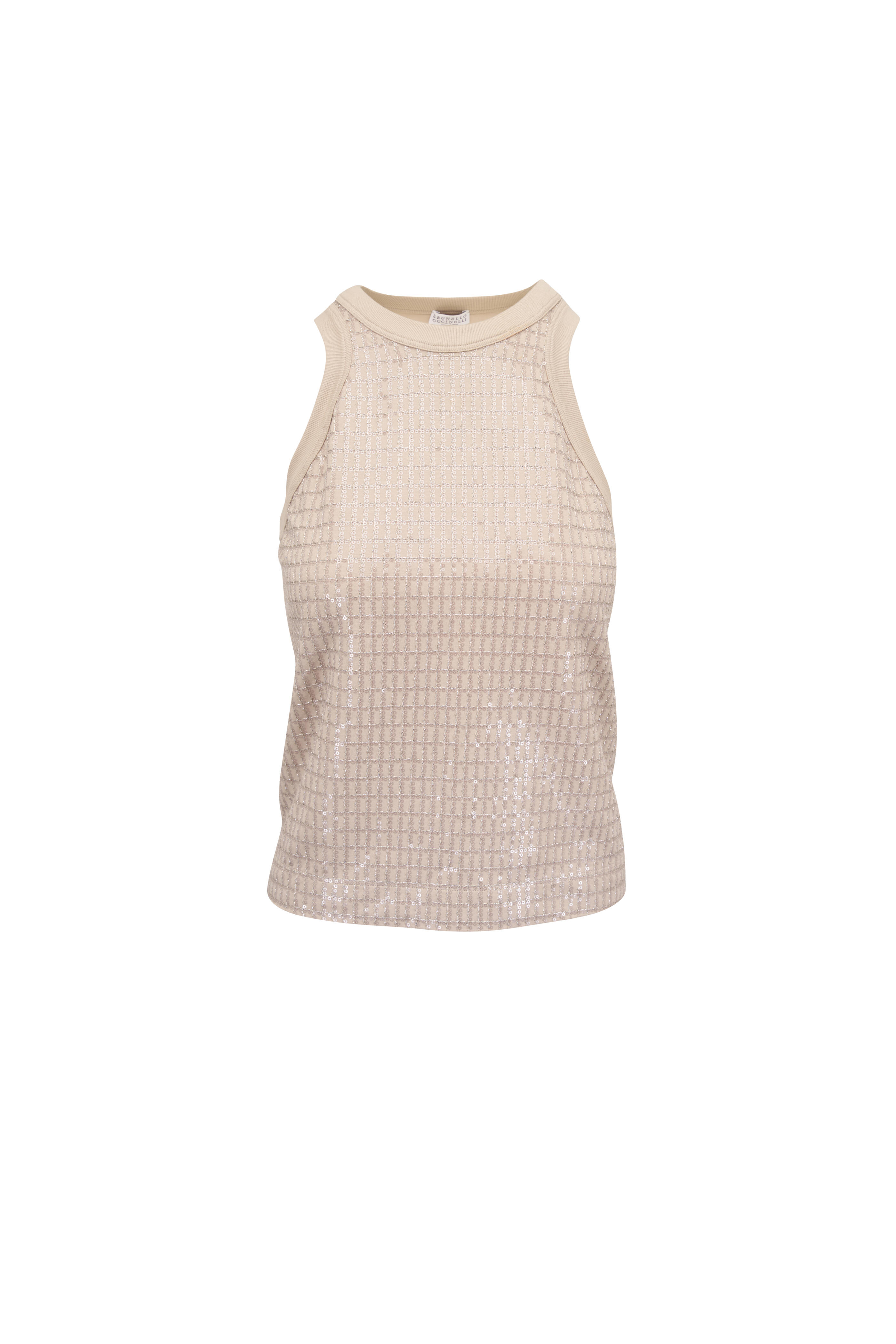 Ribbed crew neckline. All over sequin detailing. Stretch cotton jersey fabrication. Made in Italy. 93% cotton, 7% elastane. Dry clean.