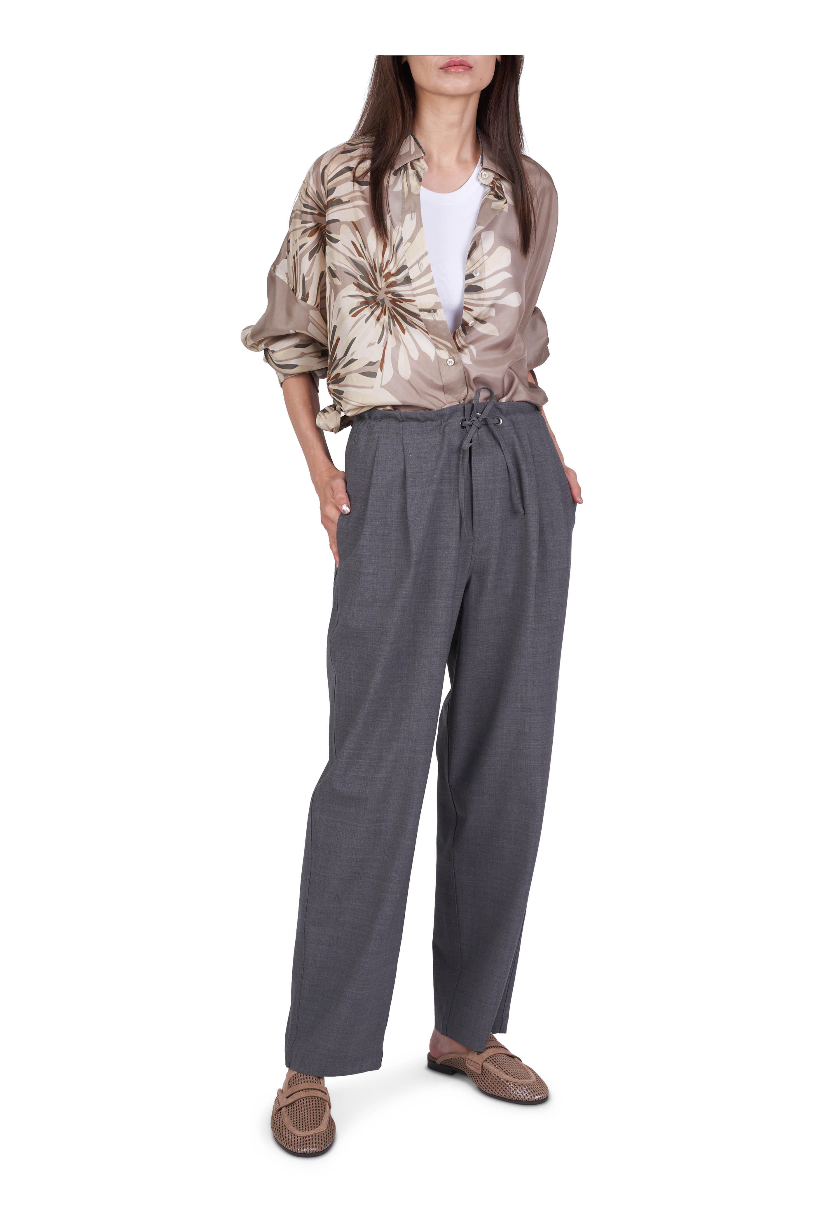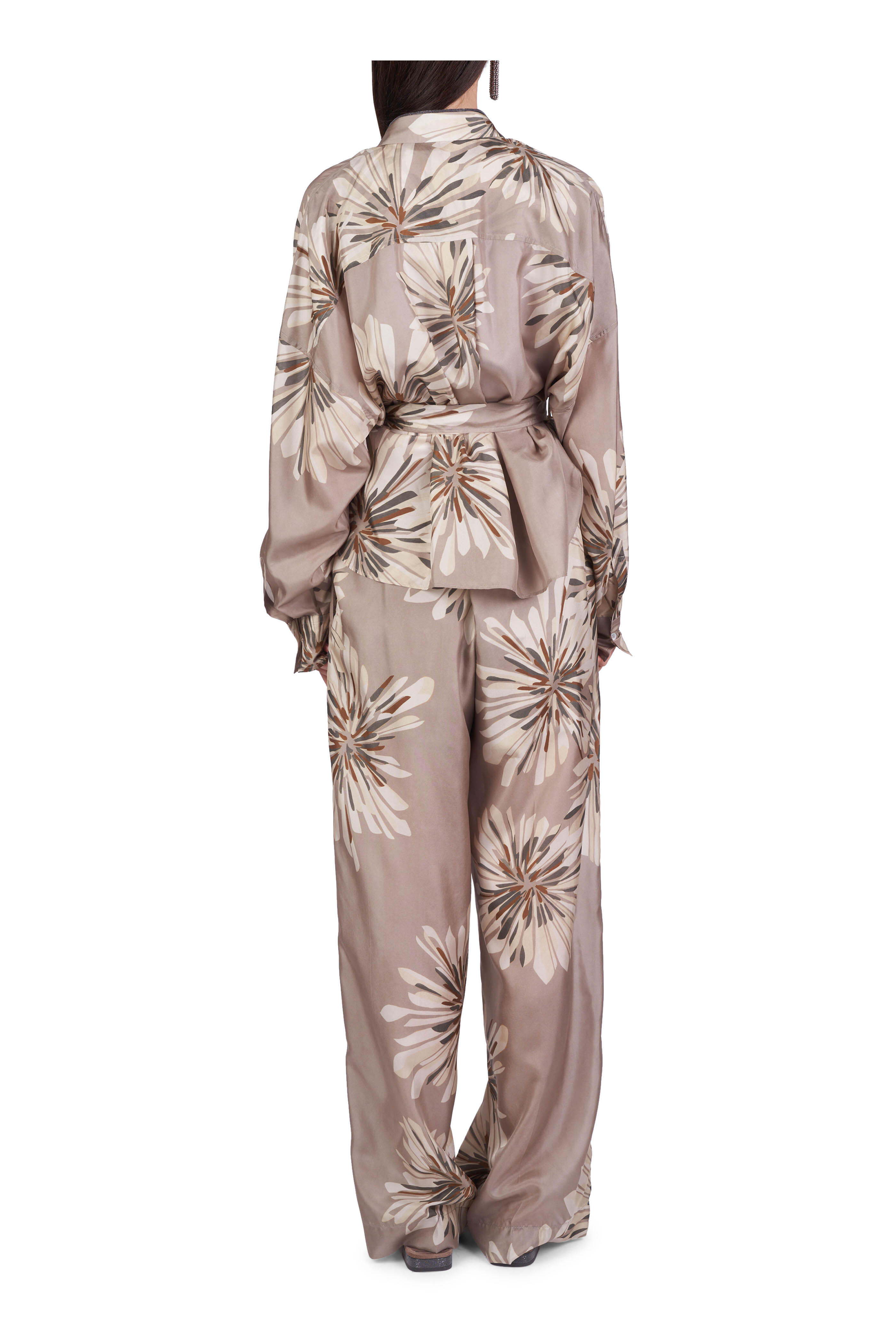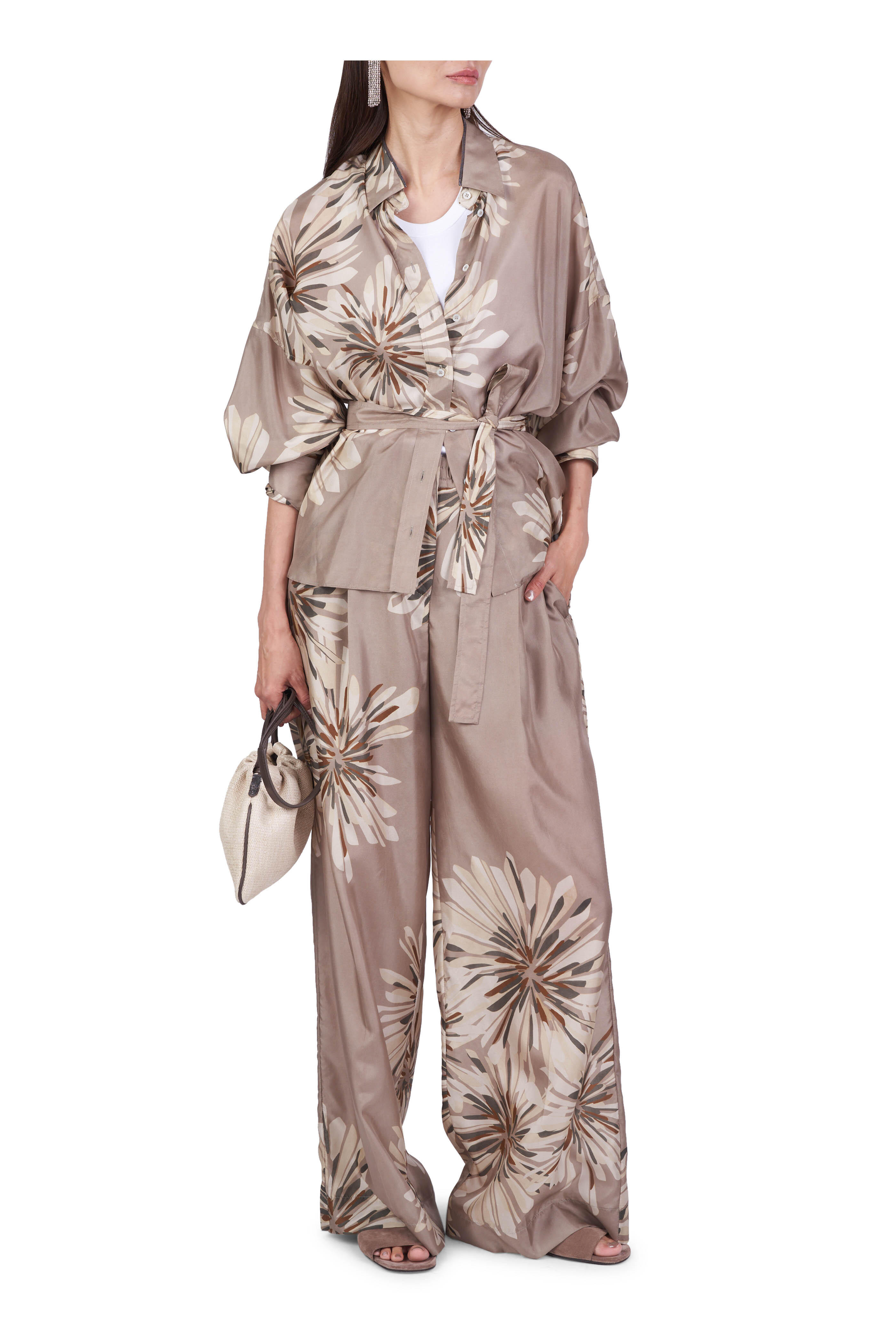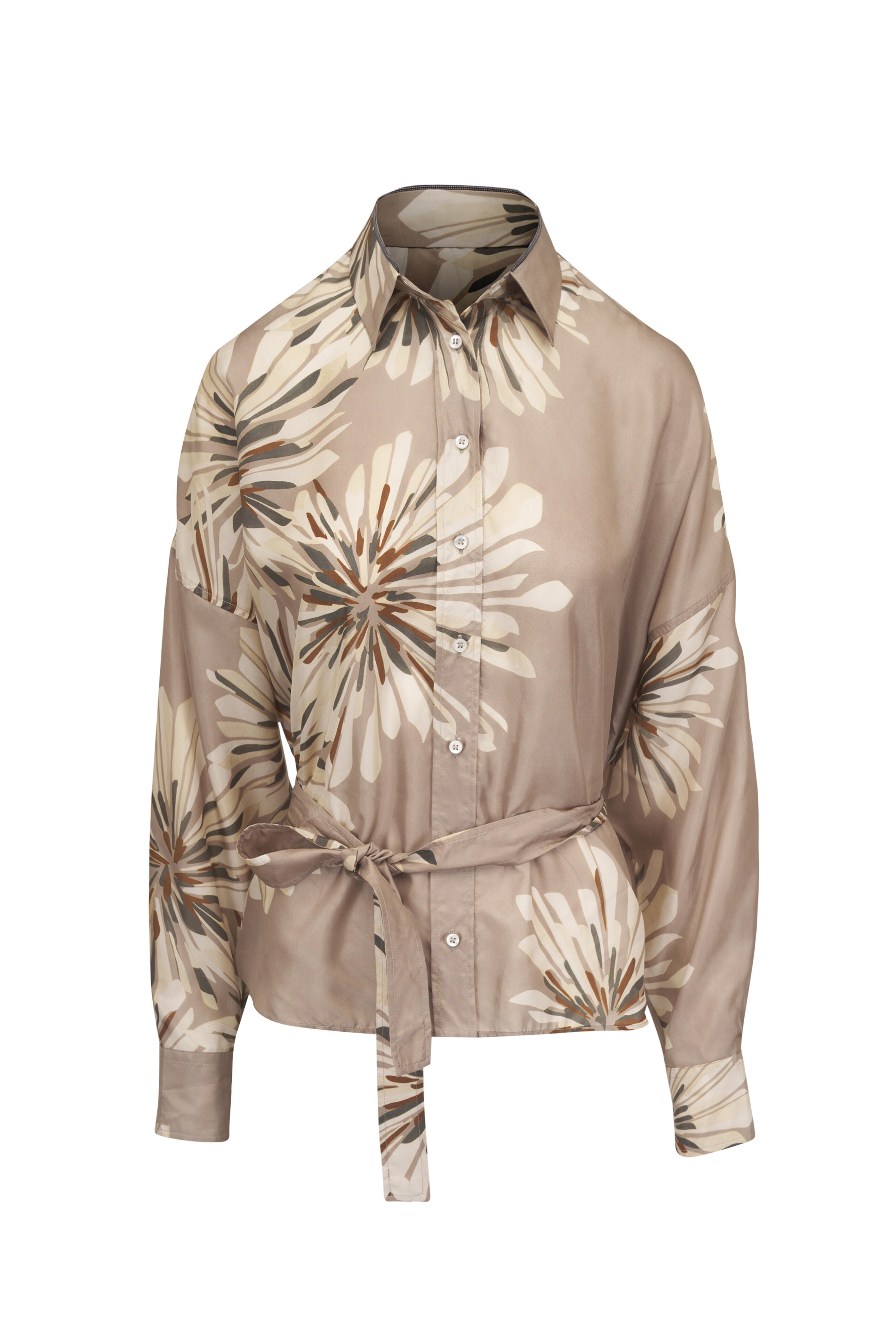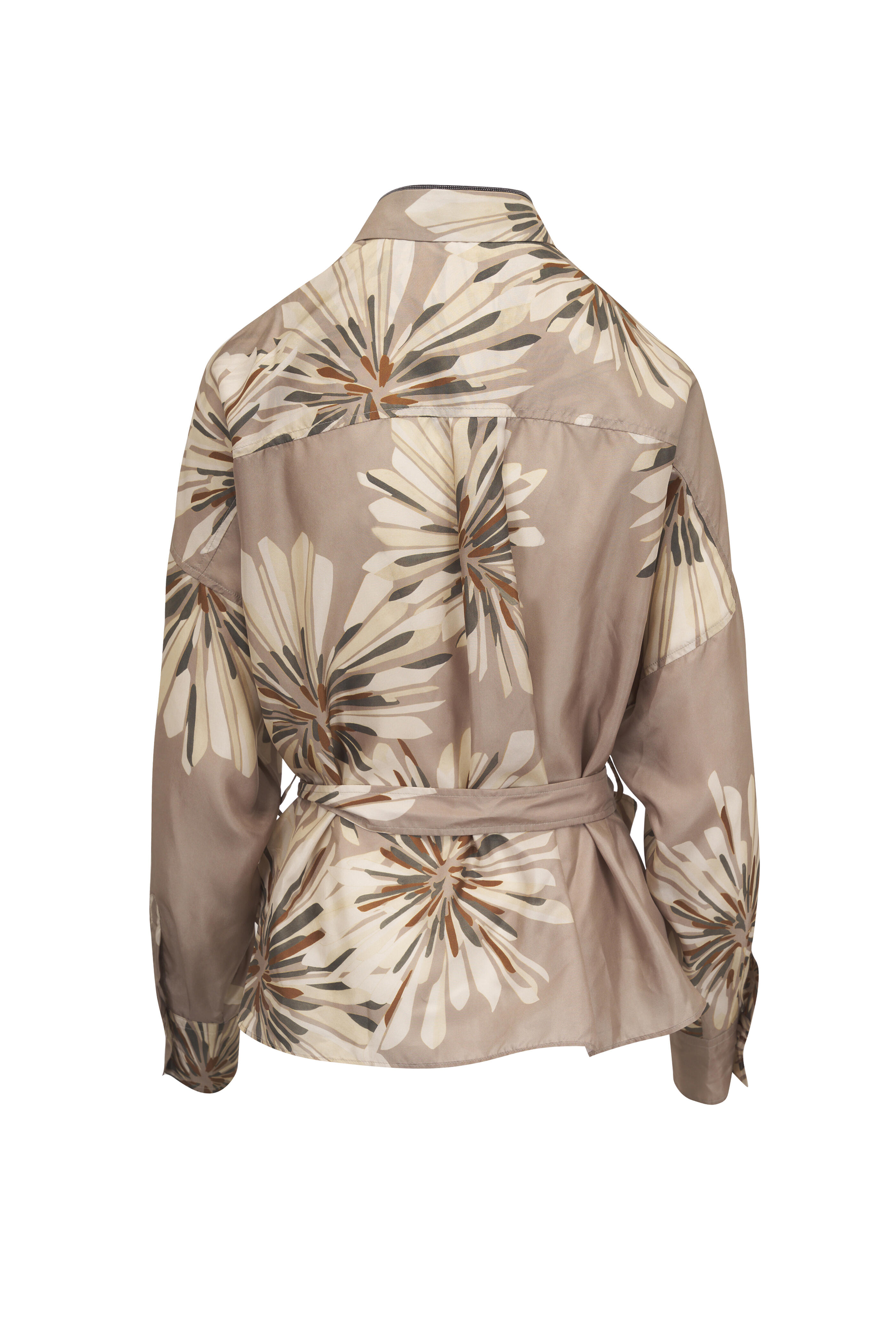 Spread collar. Front button placket; mother of pearl buttons. Single button cuffs. Monili detailing. Made in Italy. 100% silk. Dry clean.