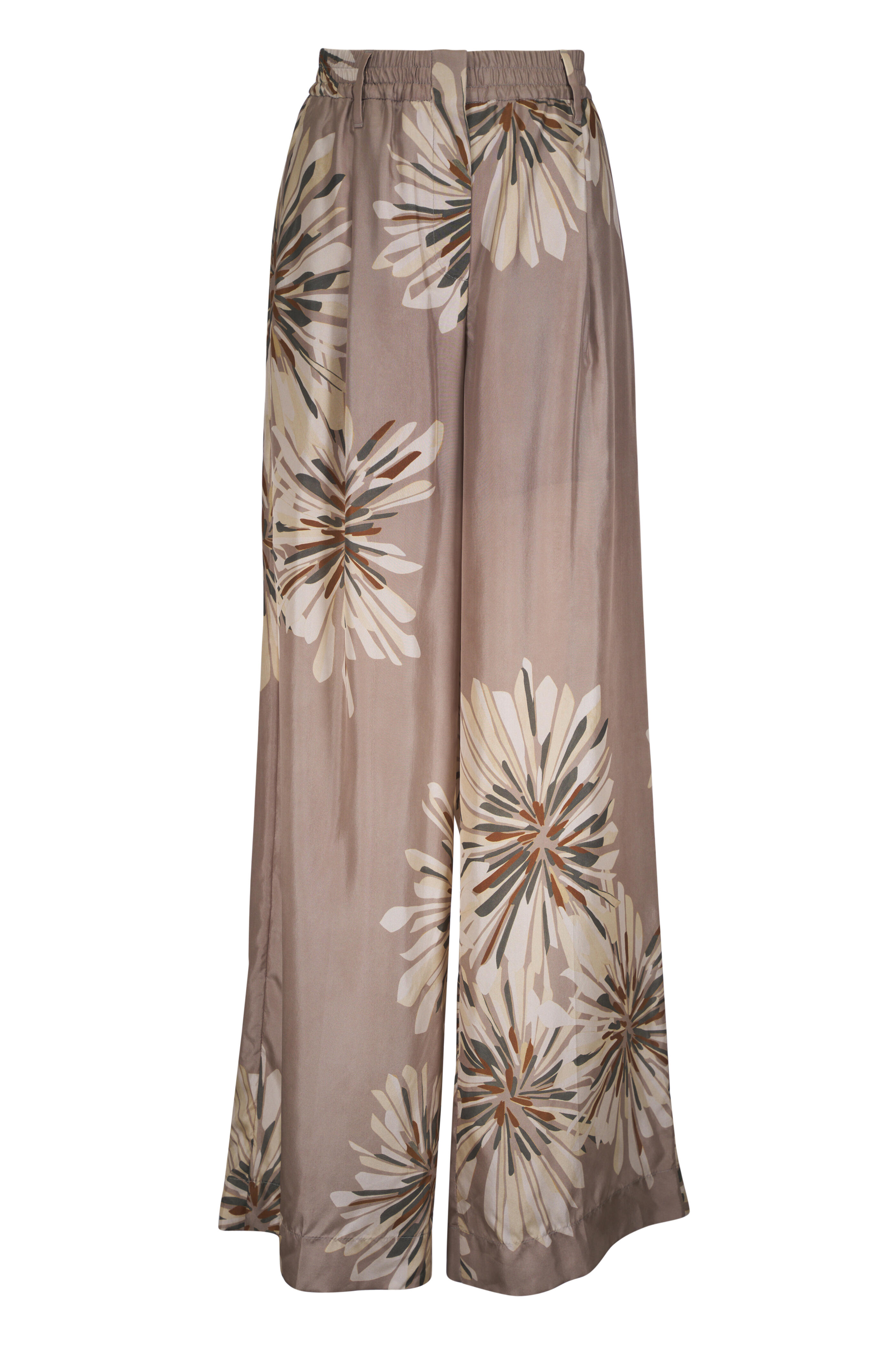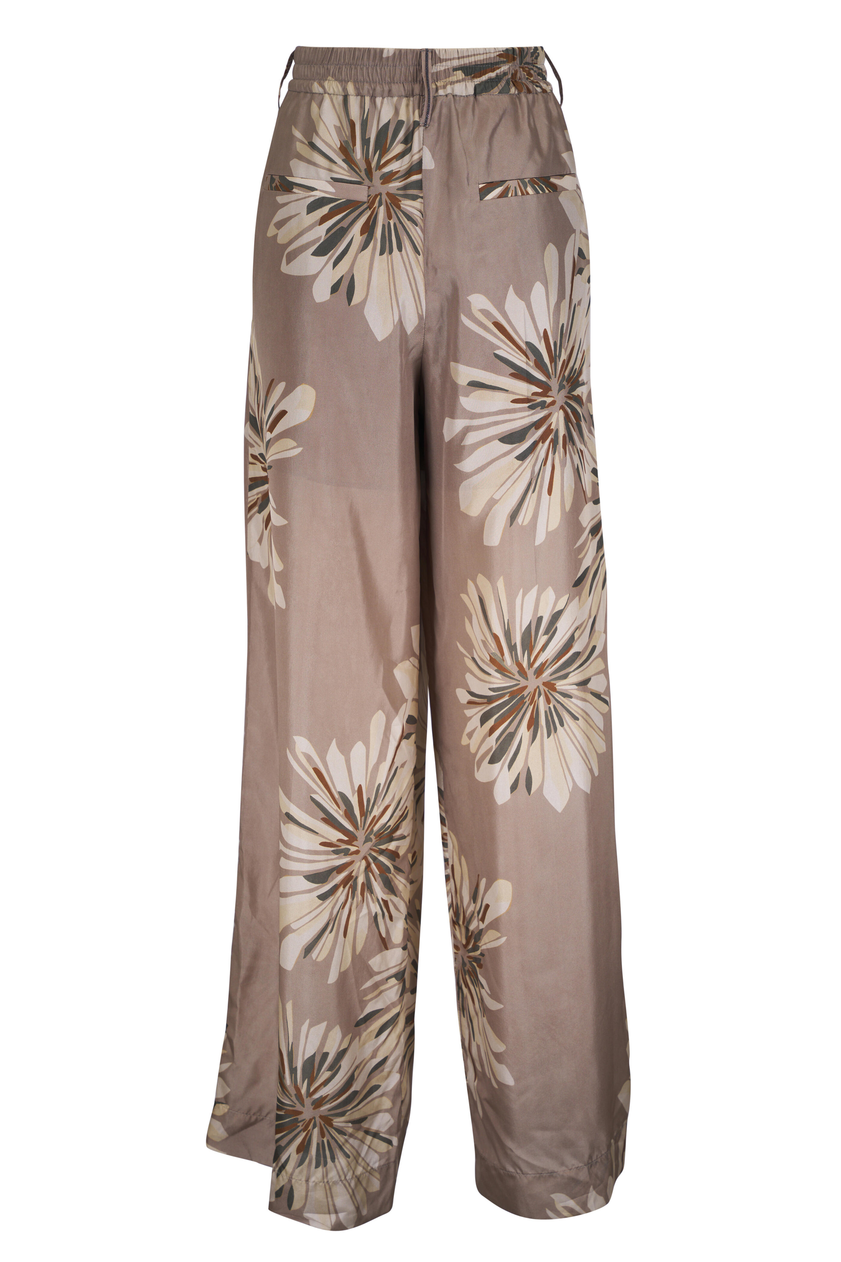 Elastic waistband with drawstring; button closure. Belt loops. Side slip pockets; back welt pockets with button. Made in Italy. 100% silk. Dry clean.
