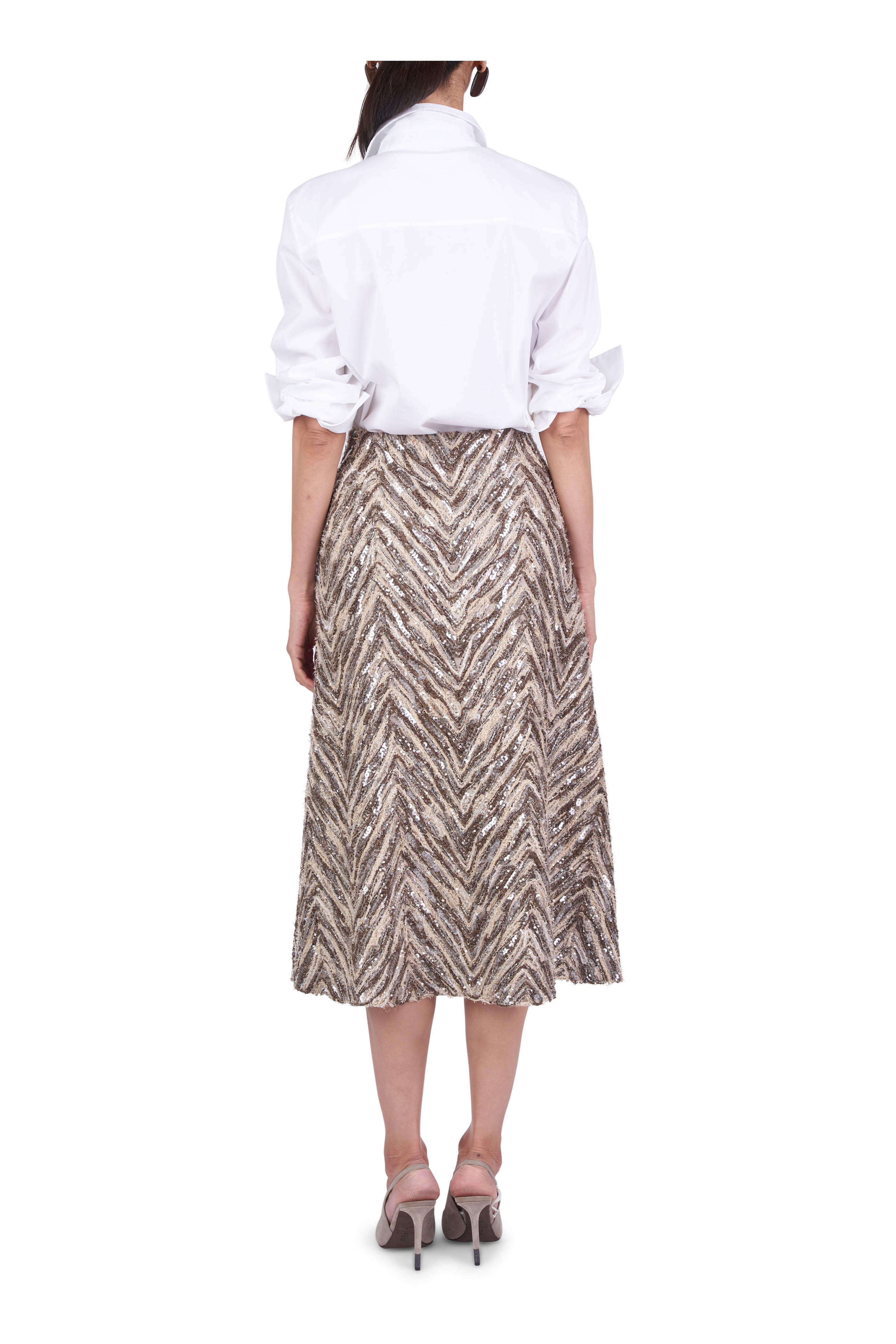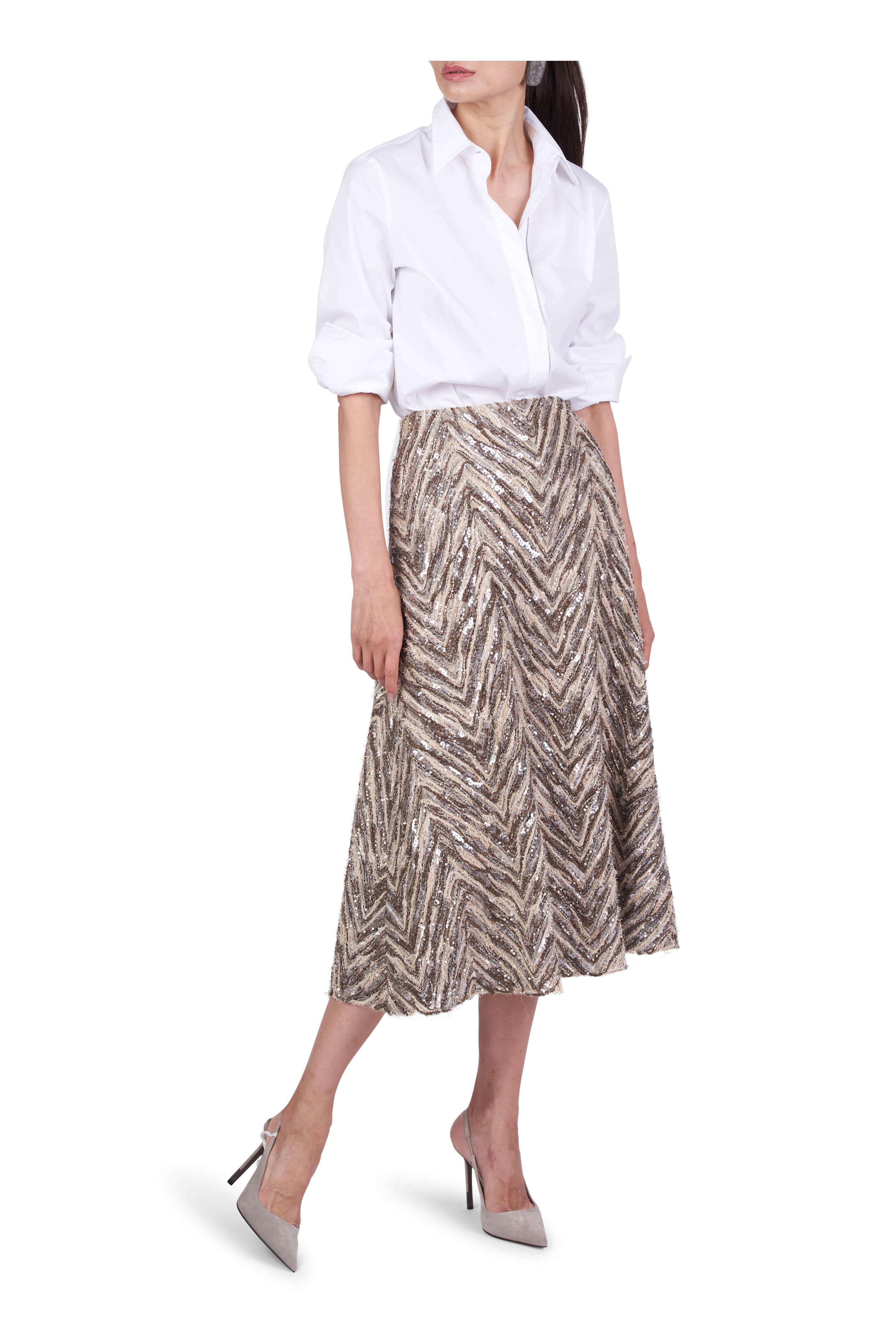 Natural Embroidered Fit & Flare Chevron Skirt
