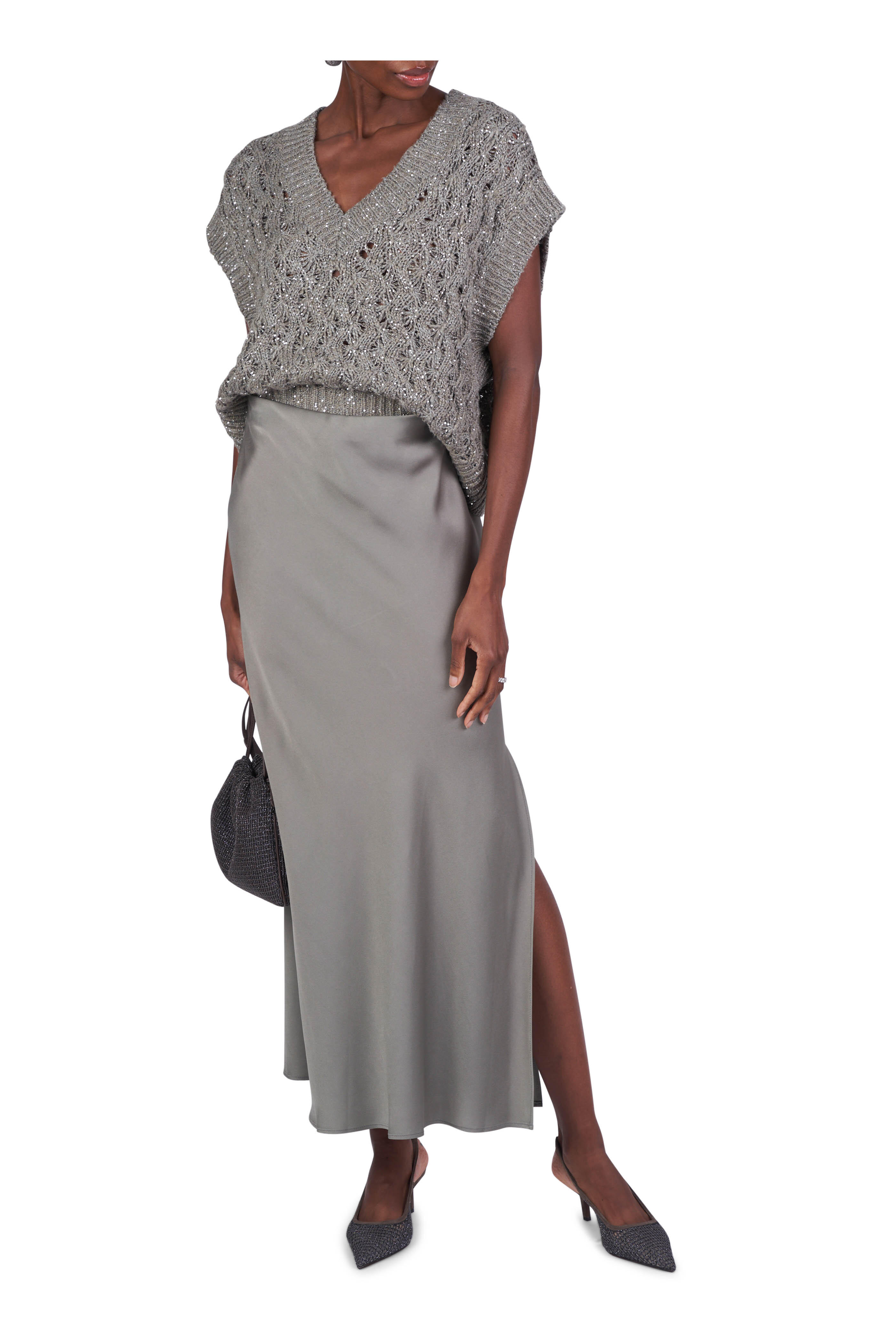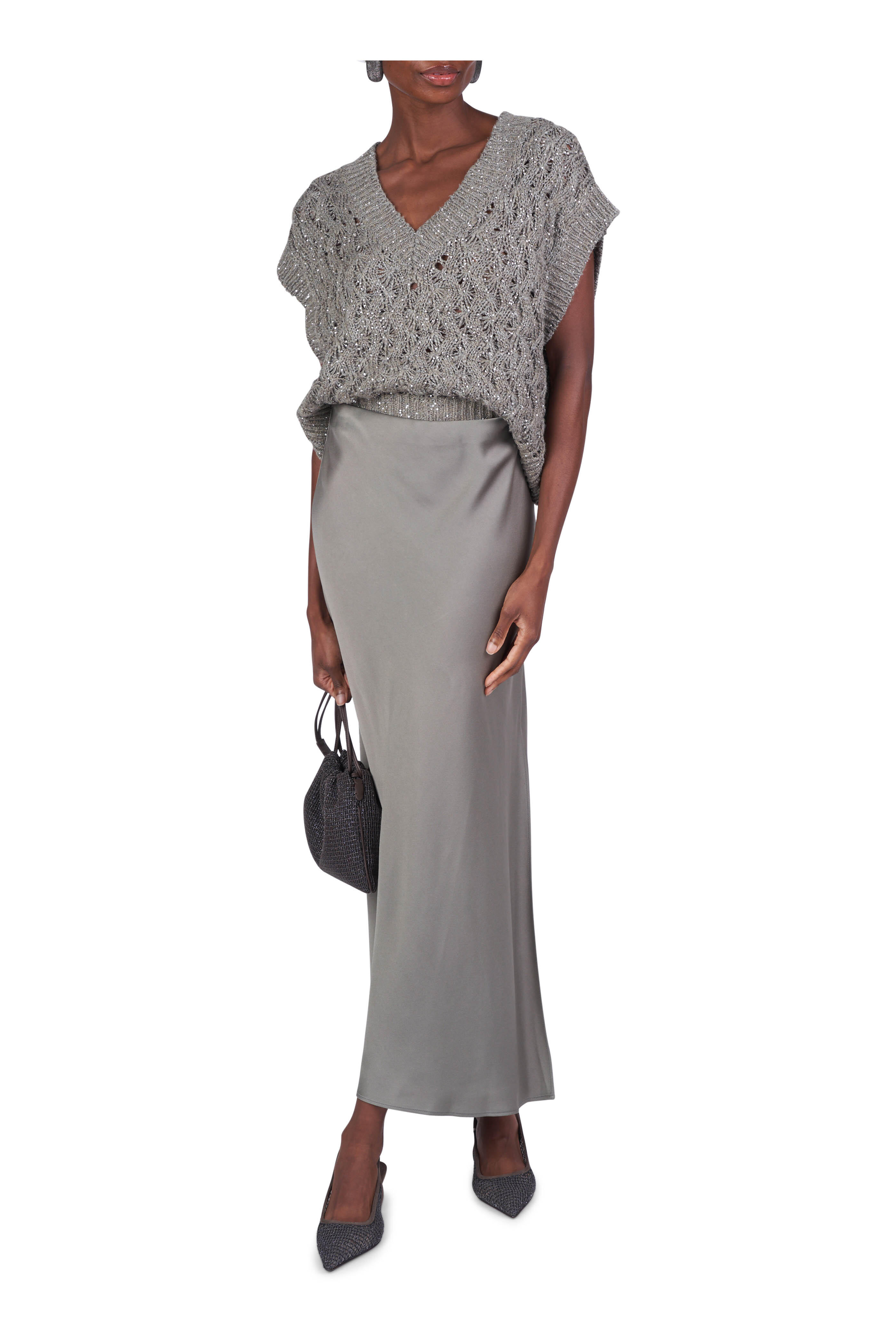 Monili embellished fabric upper. Pointed toe. Slingback. Suede trim. Leather insole; fabric lining. Leather and rubber sole. Made in Italy. Heel measurement: 55mm.