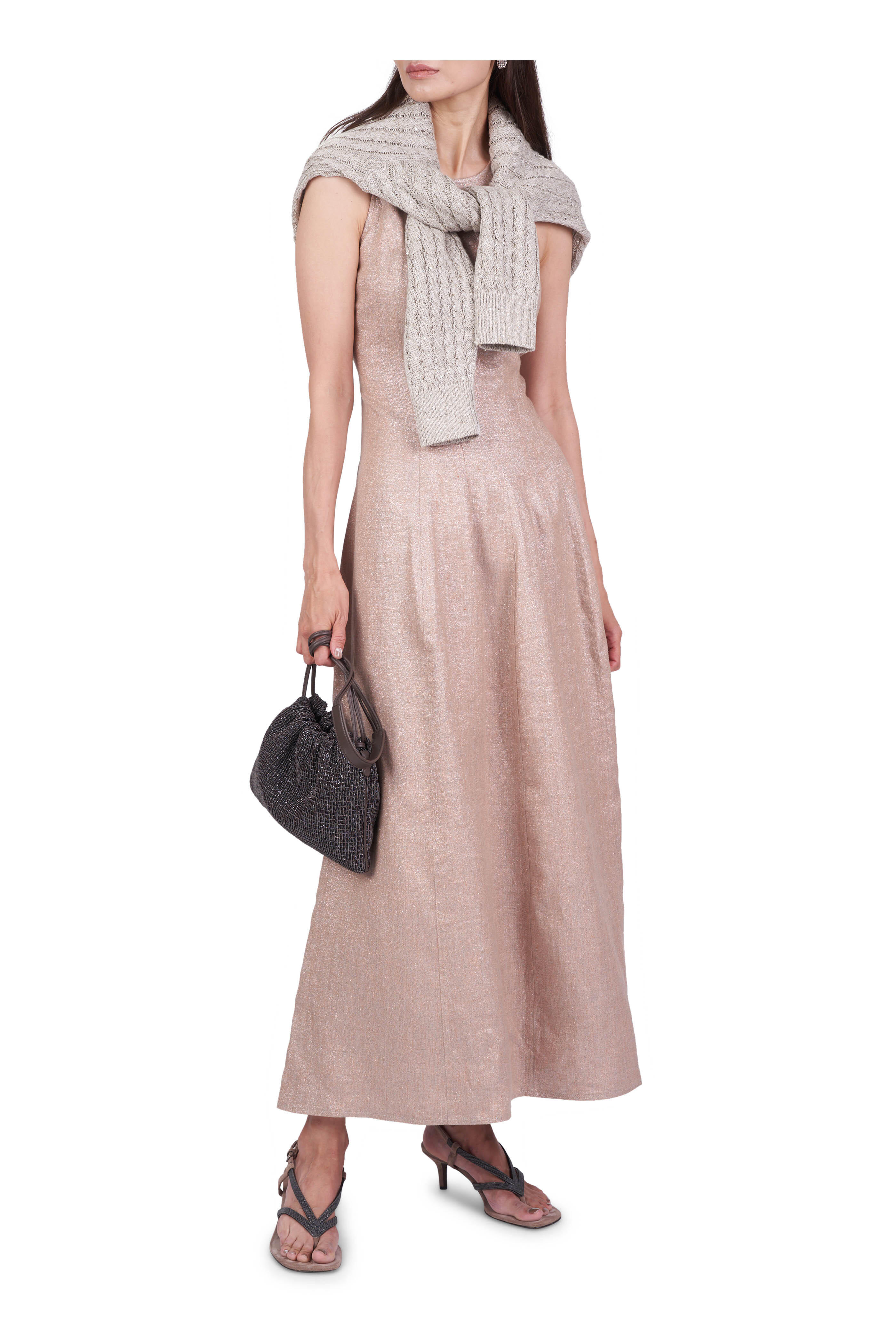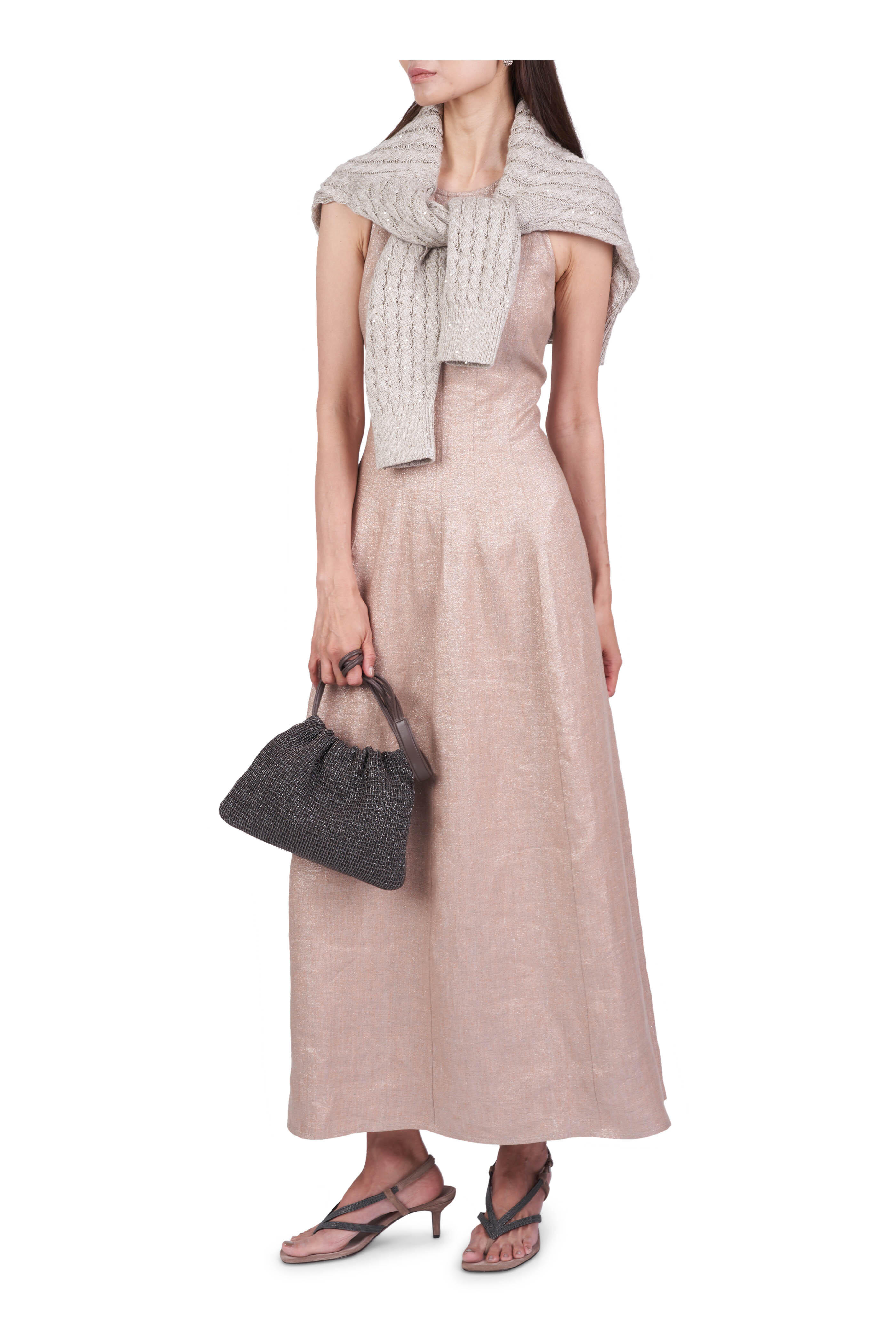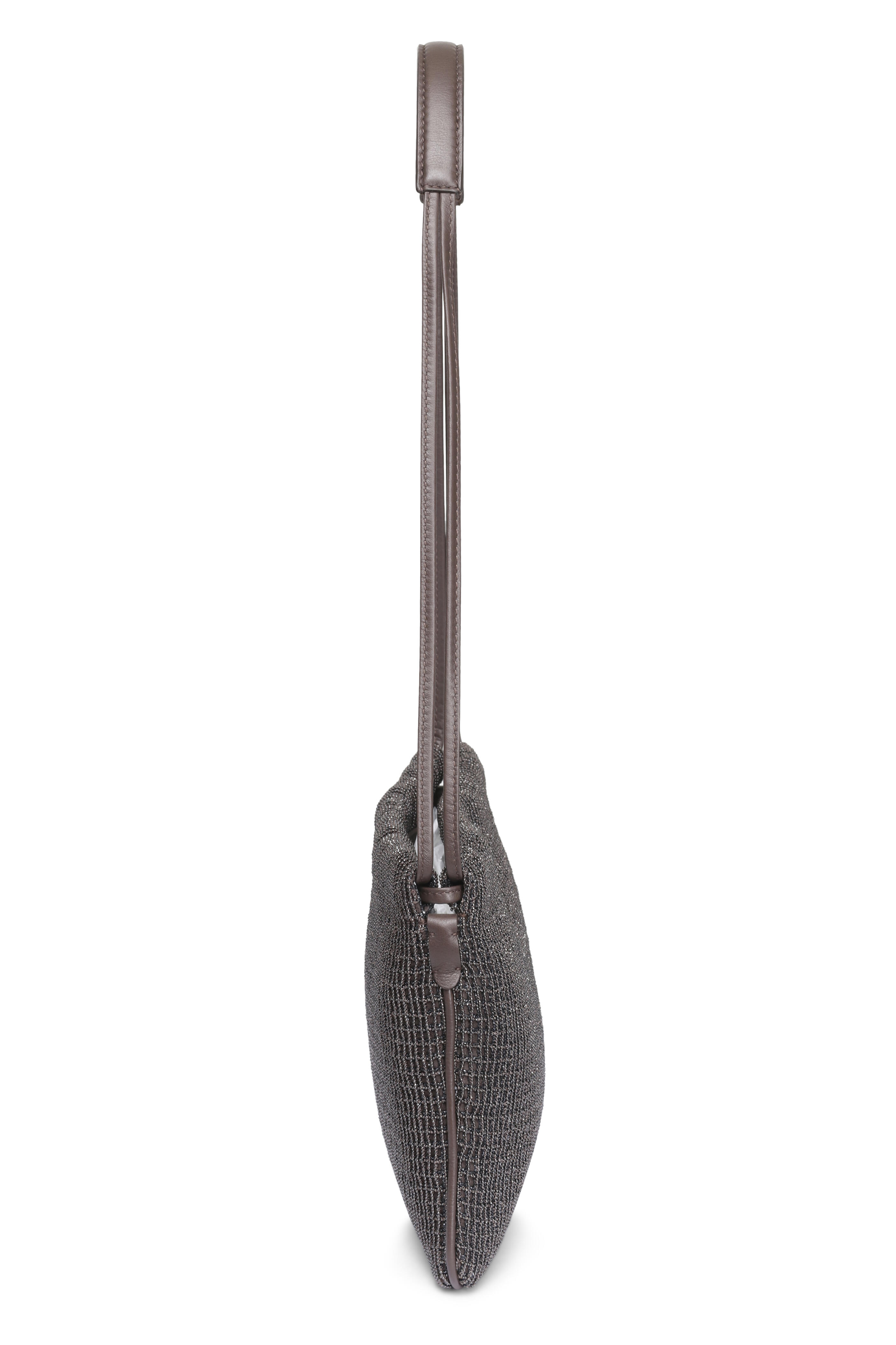 Leather and monili netting. Drawstring closure. Shoulder strap. Interior pocket. Leather lining. Made in Italy. Length: 9.84". Width: 7.87". Depth: 0.79".