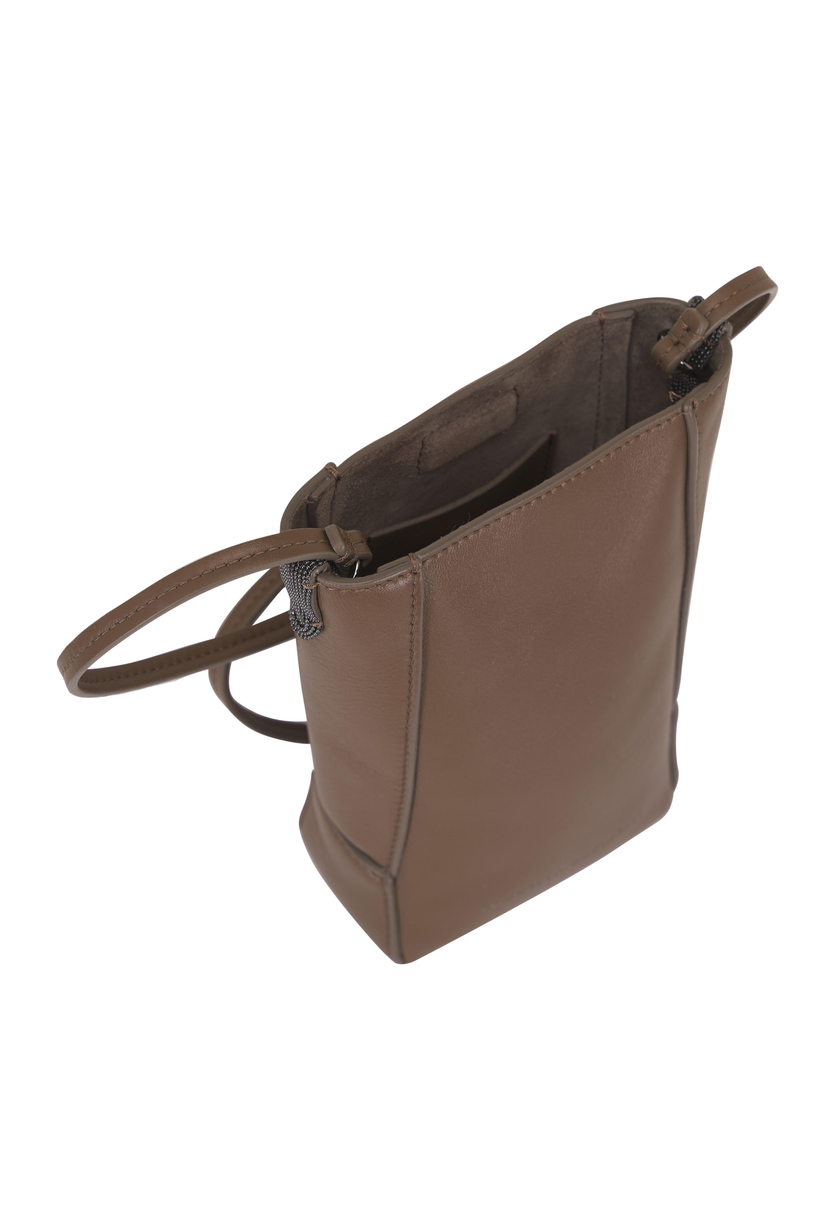 Leather outer. Suede lining. Magnetic closure. Leather Crossbody strap. Nickle-free Monili detailing. Made in Italy.