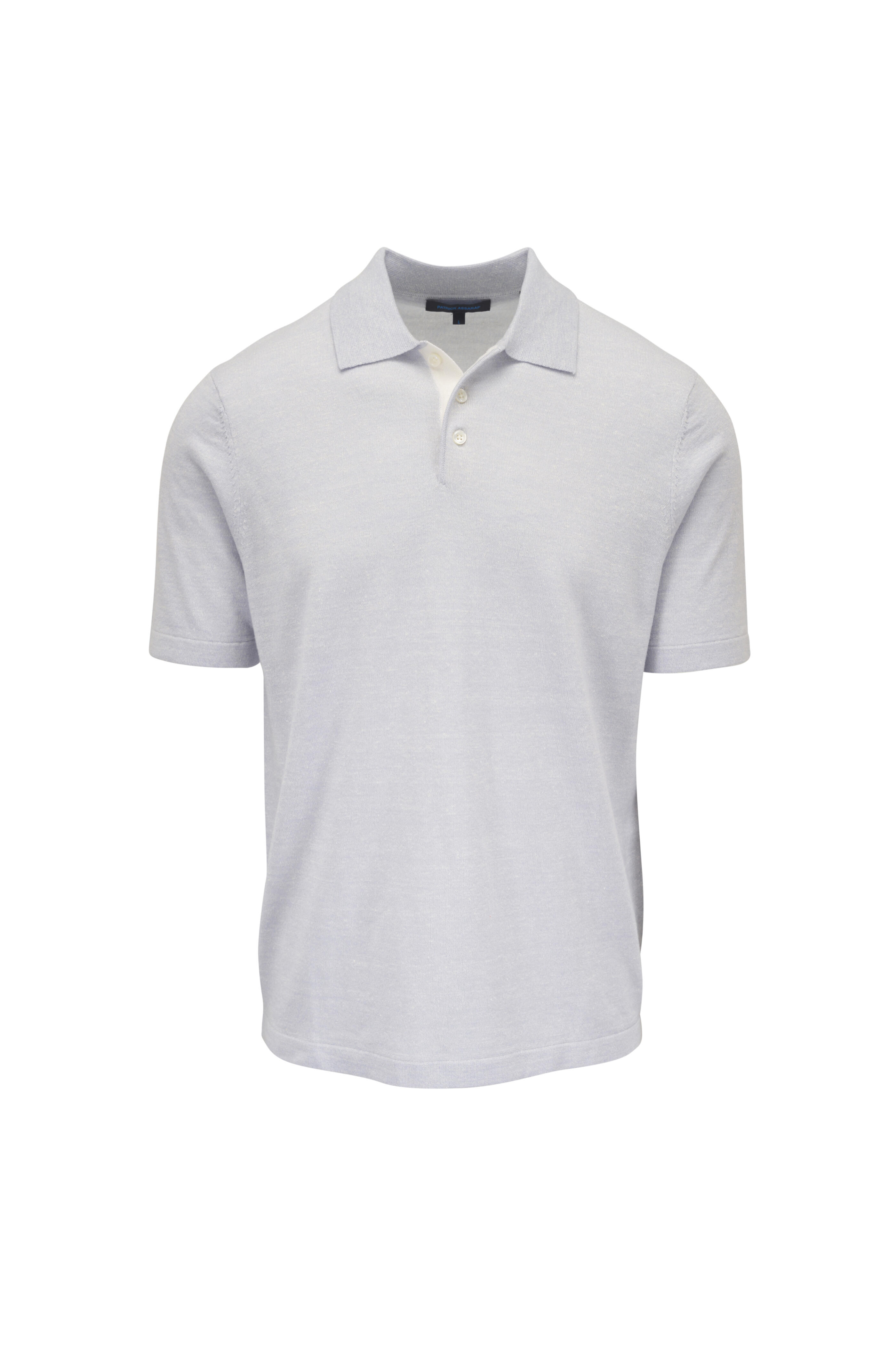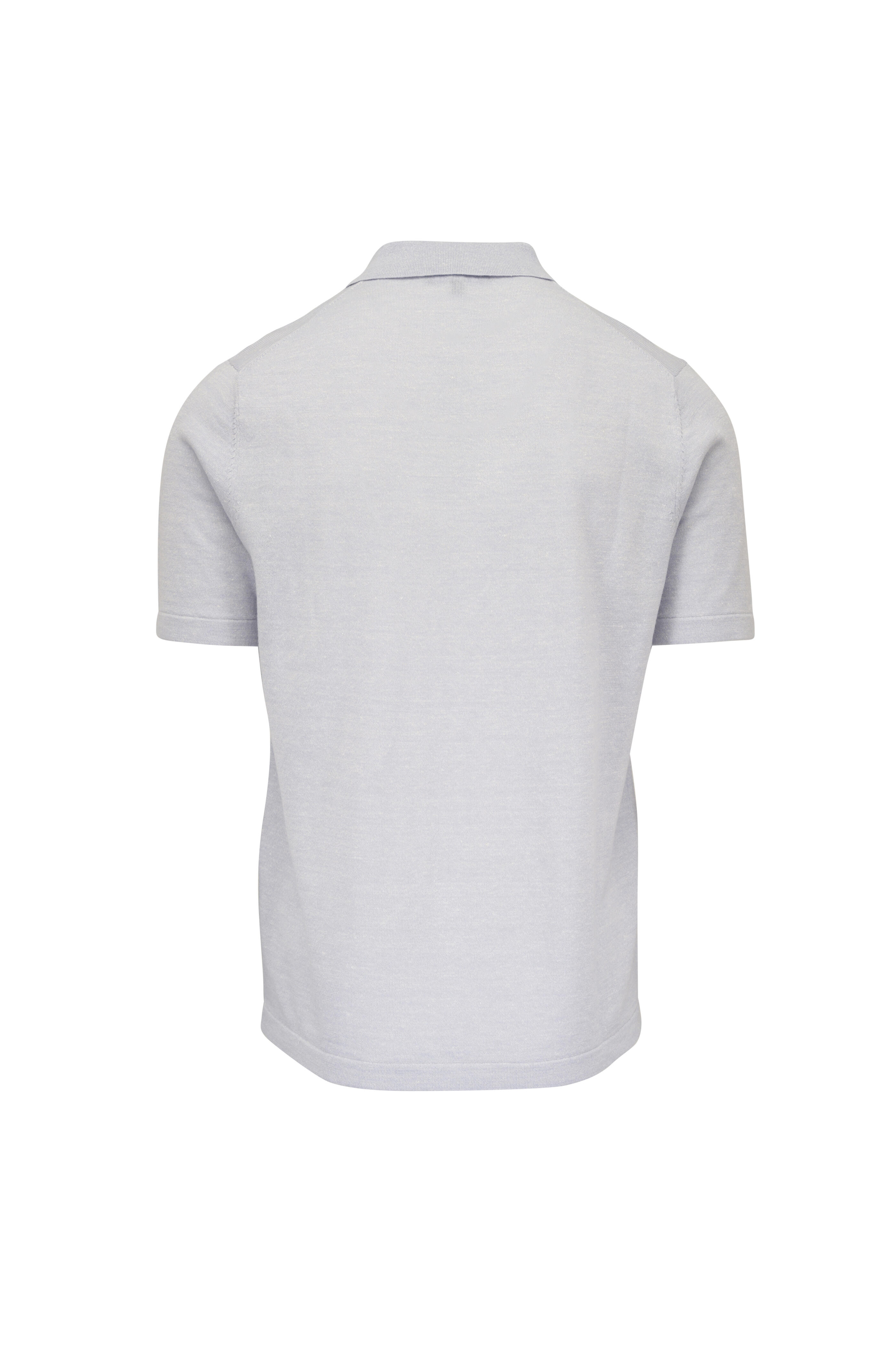 Spread collar. Three button placket. Pullover style. Ribbed trims. Straight hem. Imported. Shoulder to hem 27" (size L). 55% extra fine merino wool, 45% linen. Hand wash.