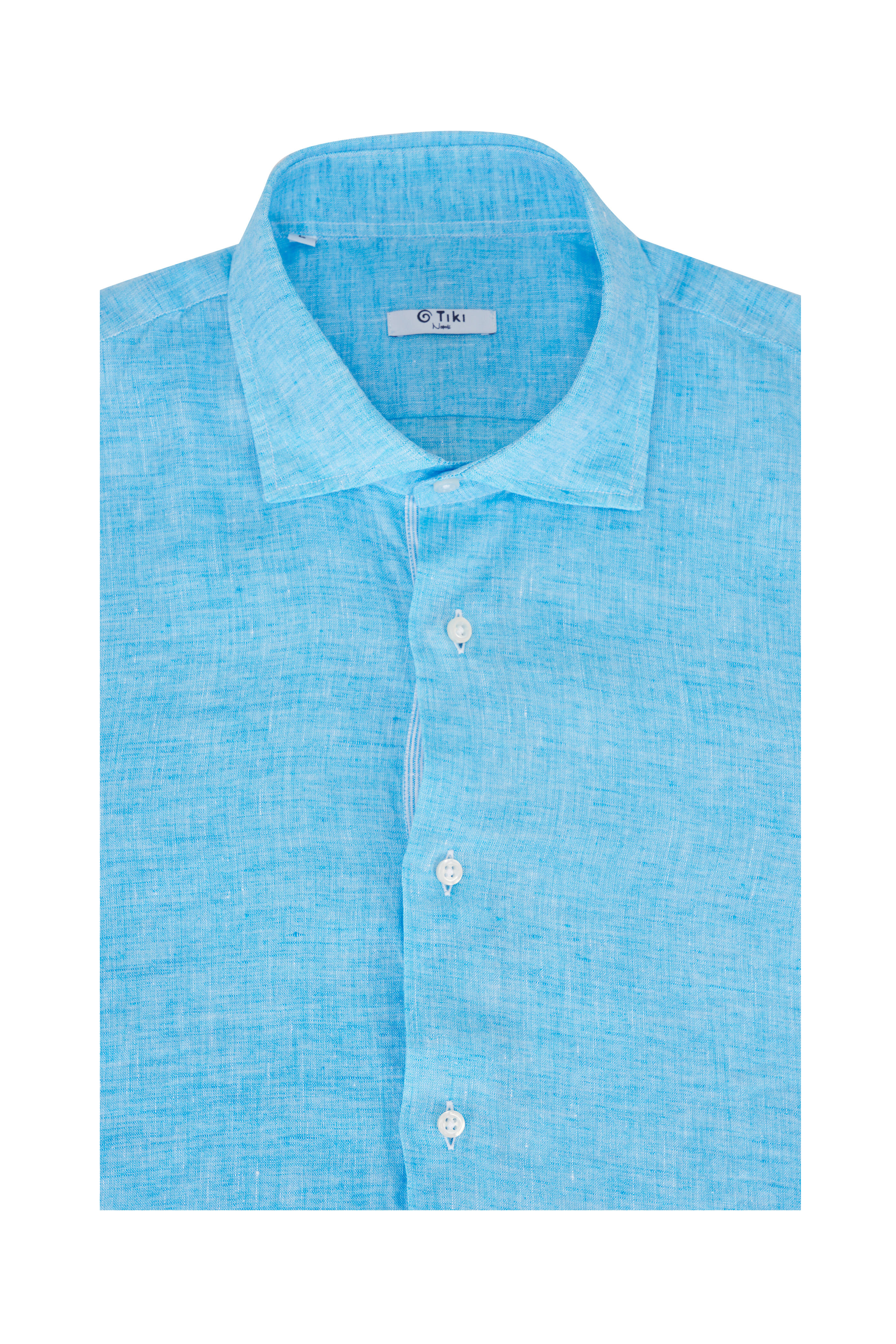 Spread collar. Button front closure. Single-button mitered cuffs. Made in Italy. 100% linen. Machine wash.