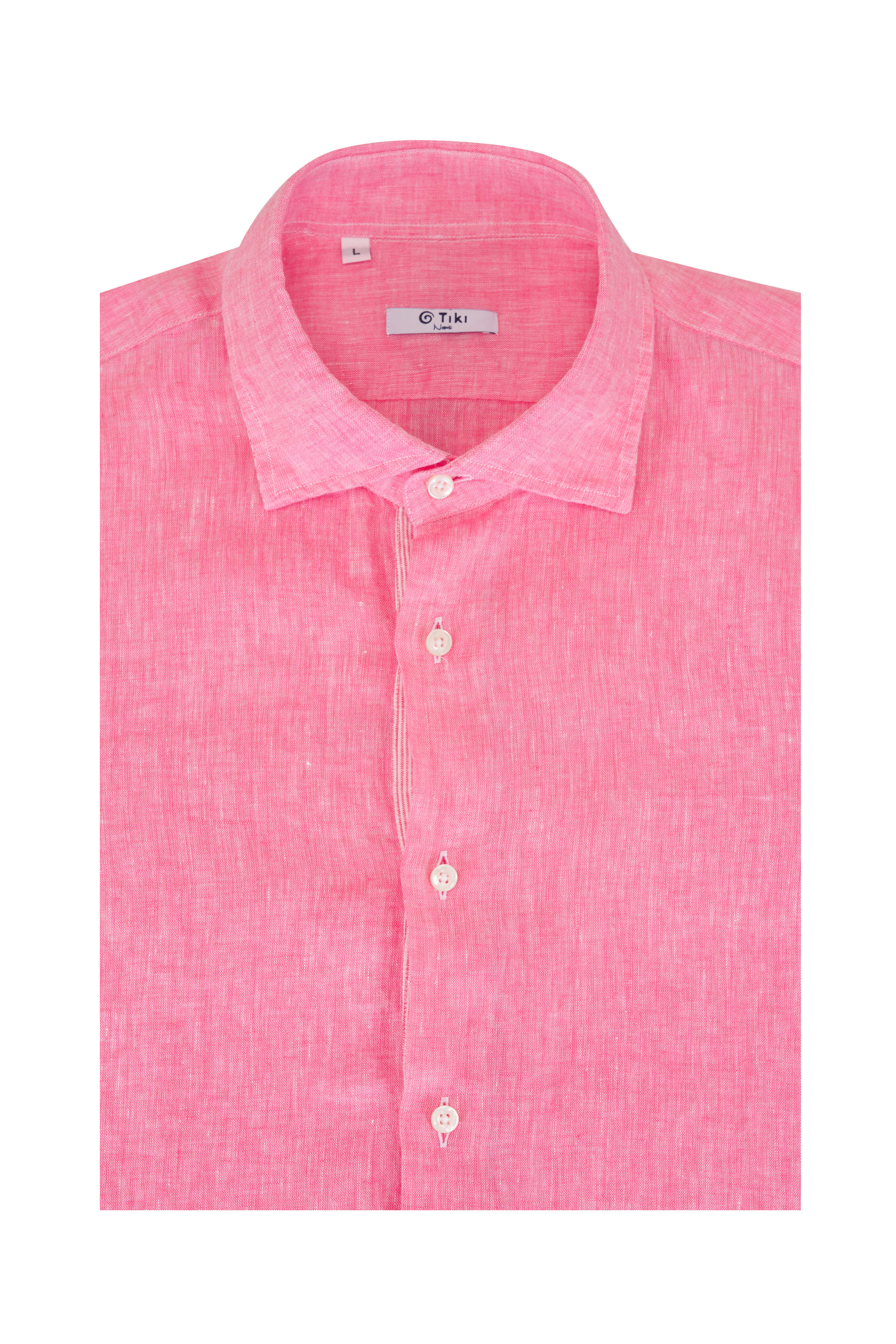 Spread collar. Button front closure. Single-button mitered cuffs. Made in Italy. 100% linen. Machine wash.