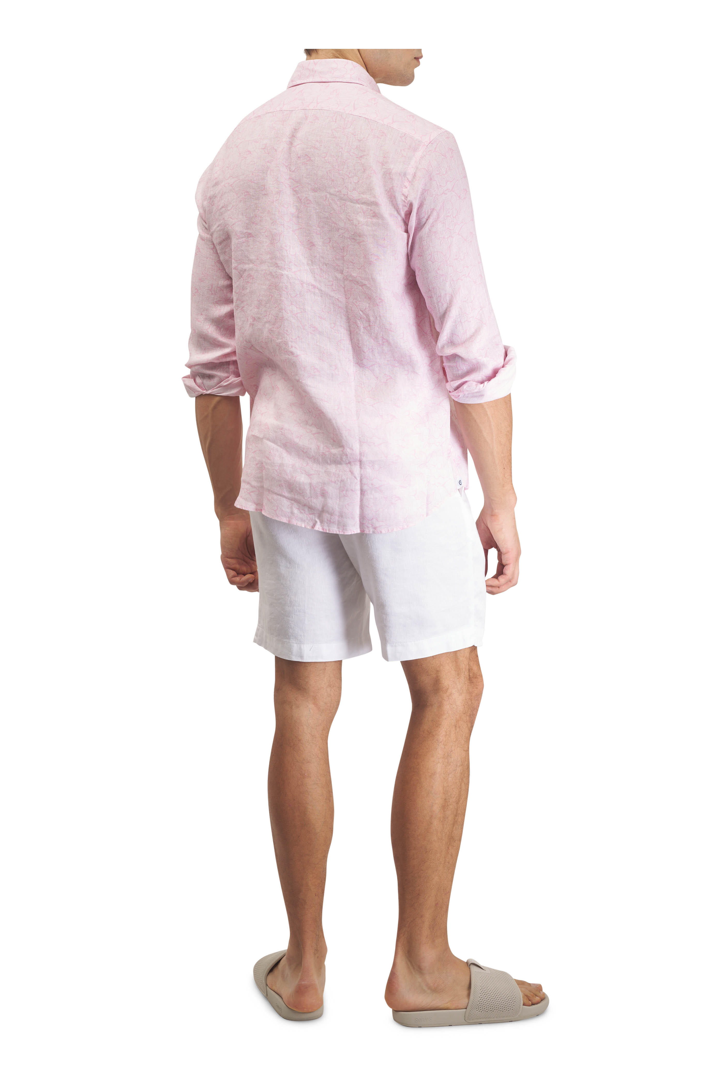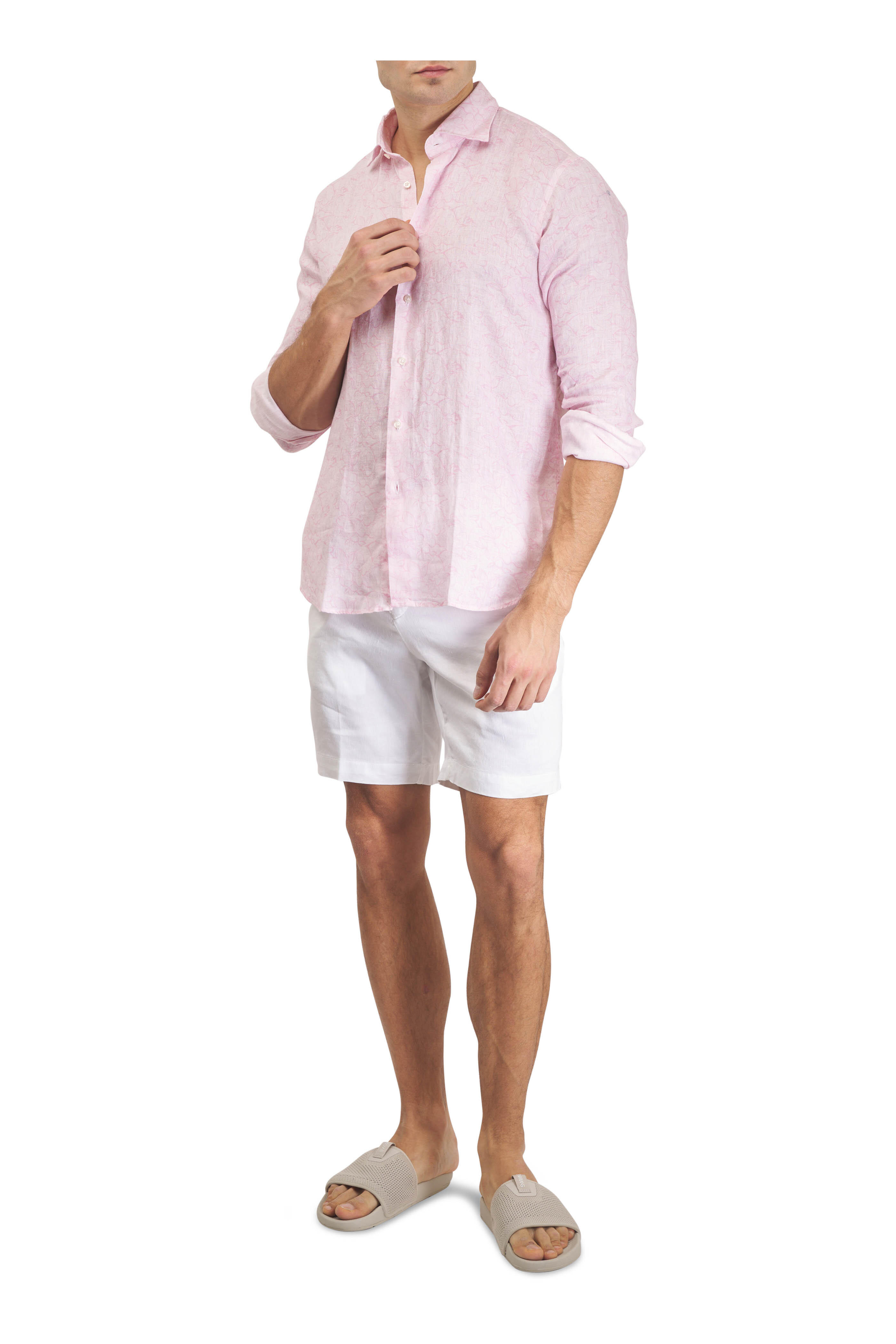 Spread collar. Button front closure. Single-button mitered cuffs. Made in Italy. 100% linen. Machine wash.