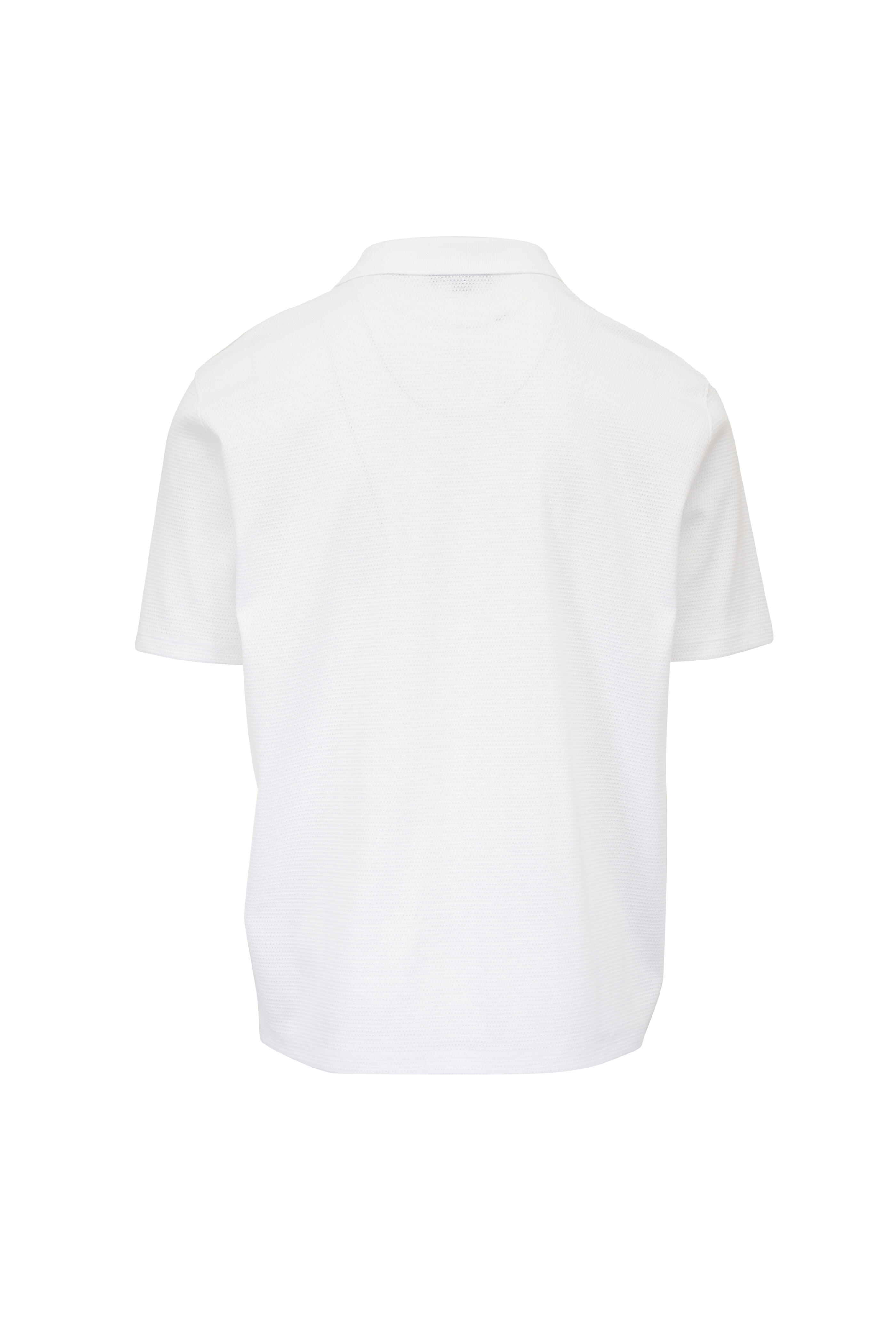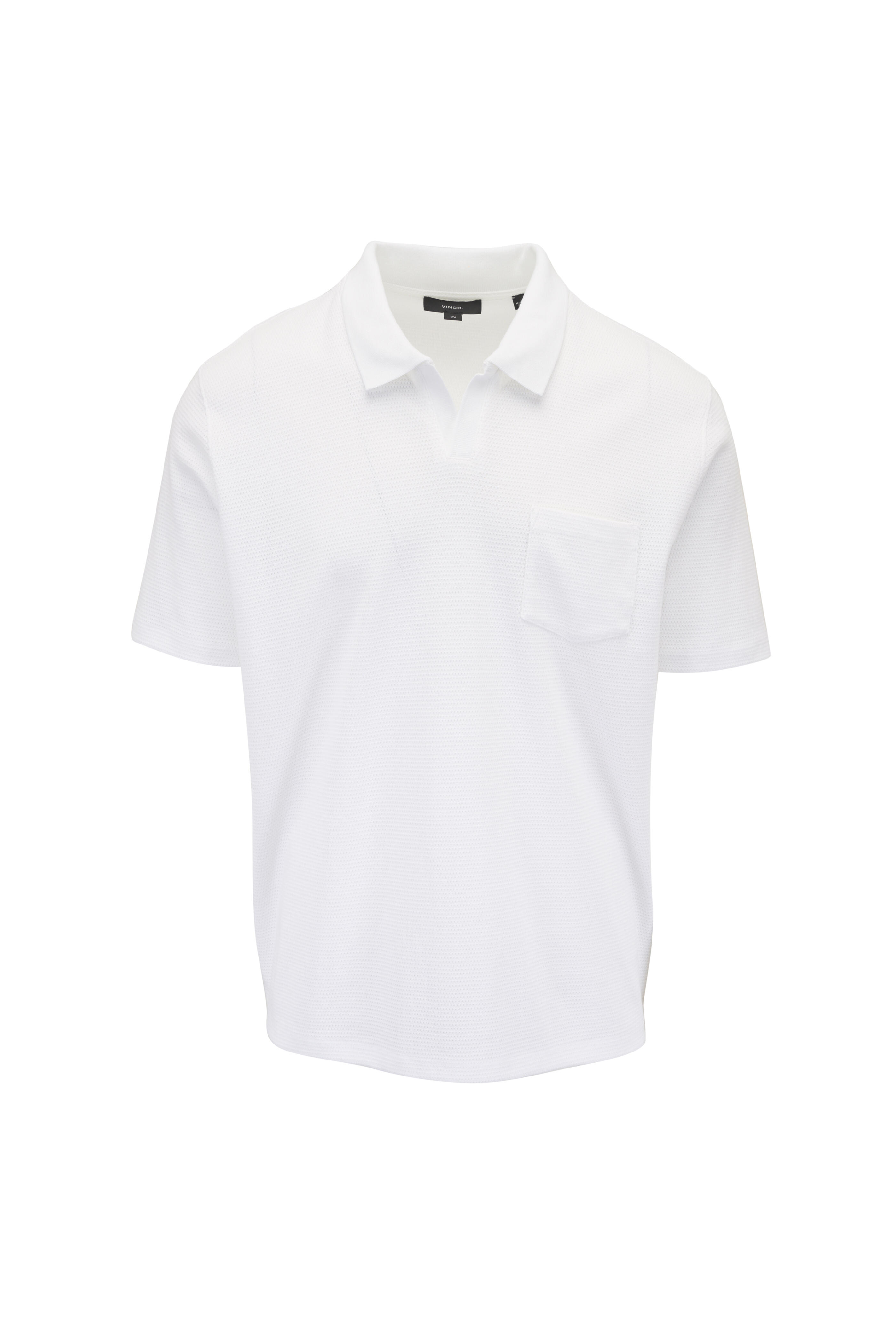 Spread collar. V-neckline. Made in Peru. 60% cotton, 40% polyester. Machine wash.