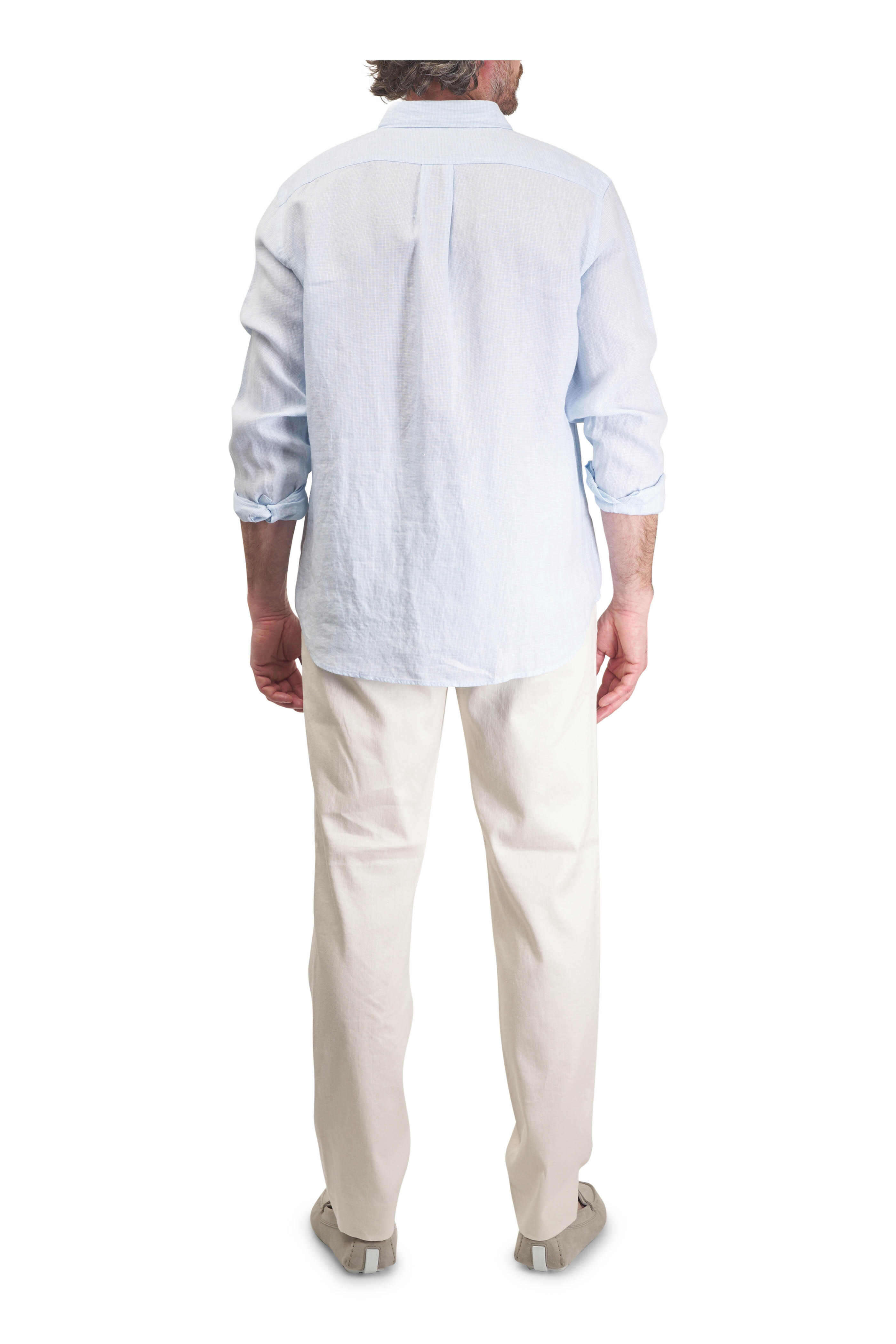 Light Blue Houndstooth Linen Sport Shirt