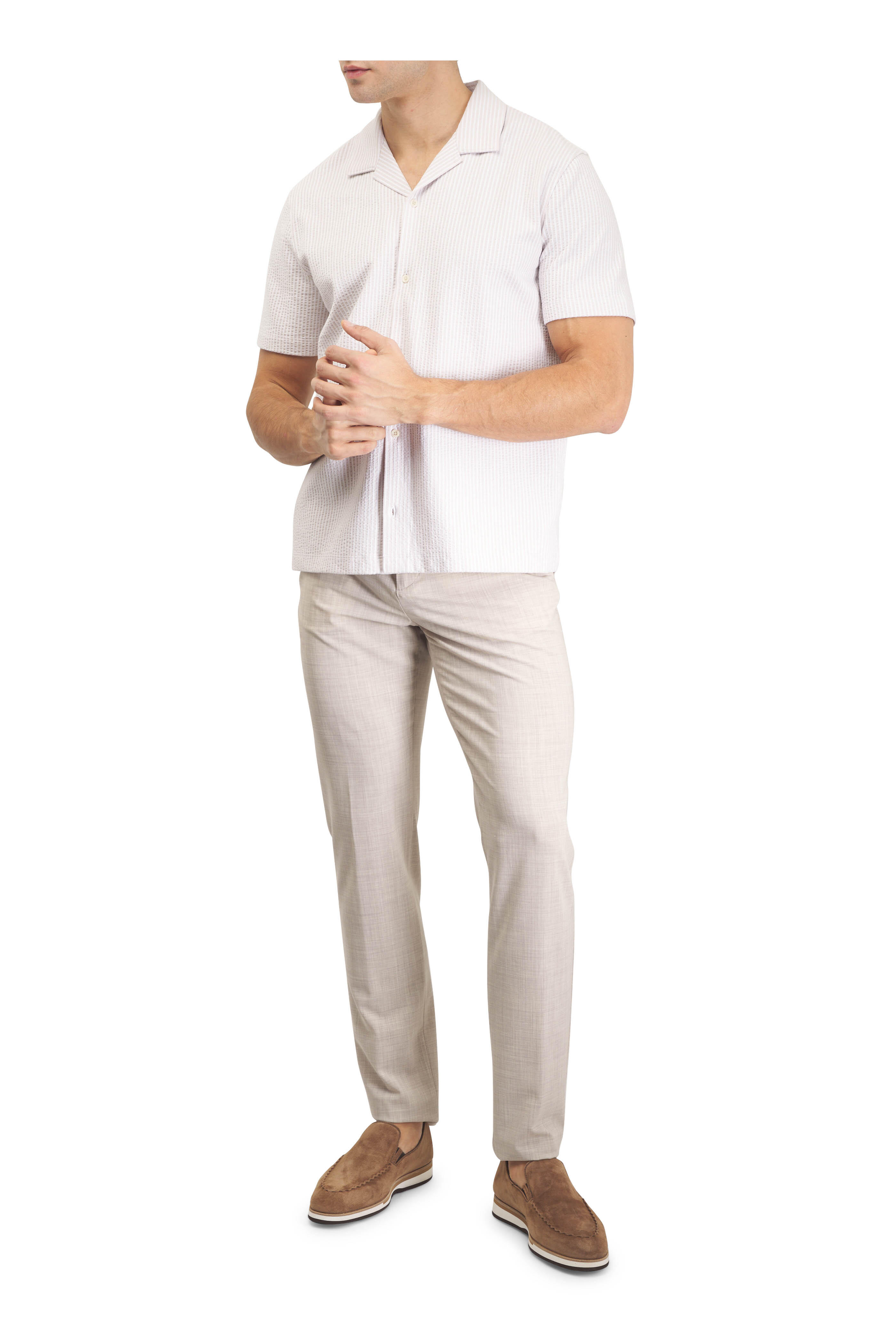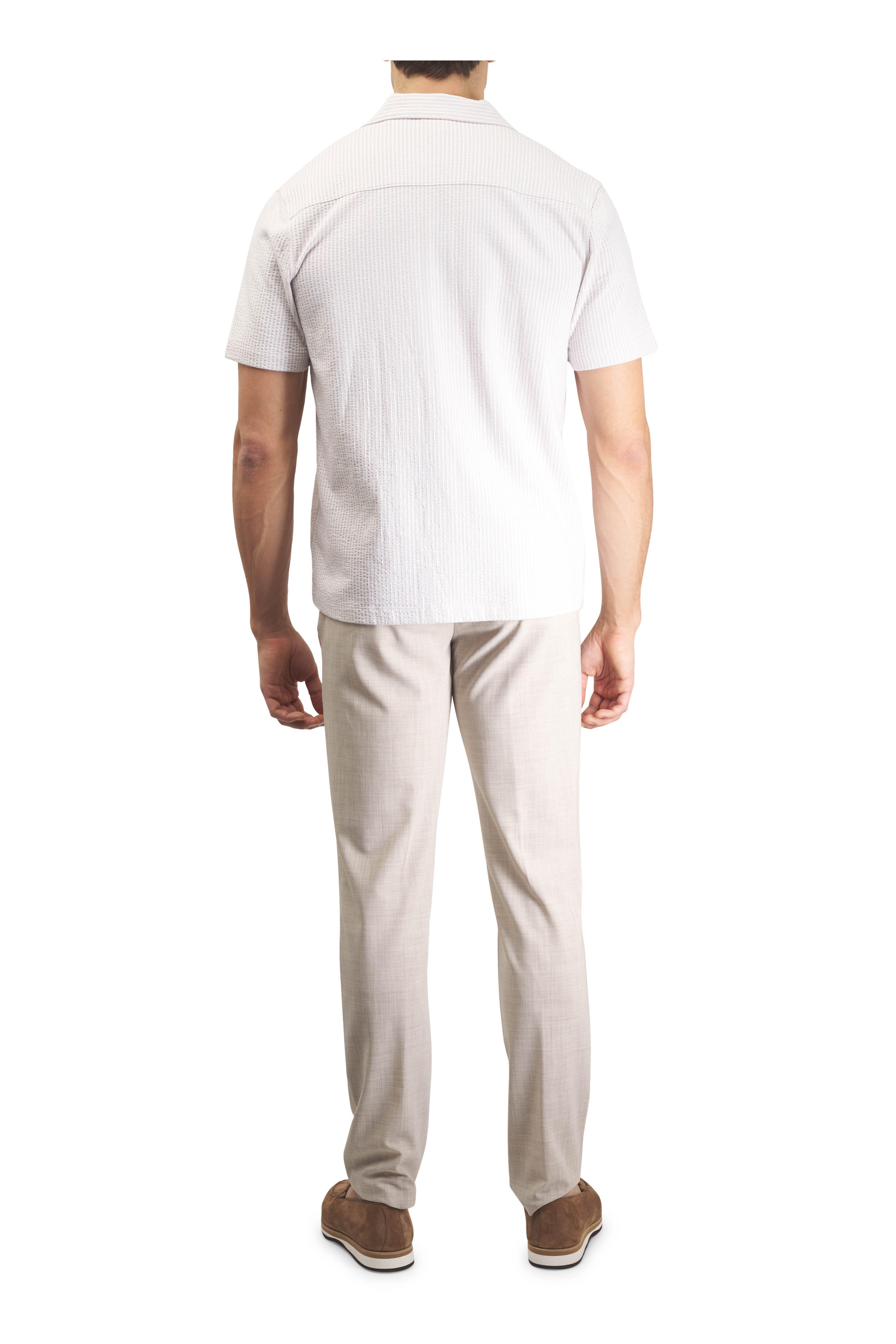 White & Tan Seersucker Short Sleeve Shirt