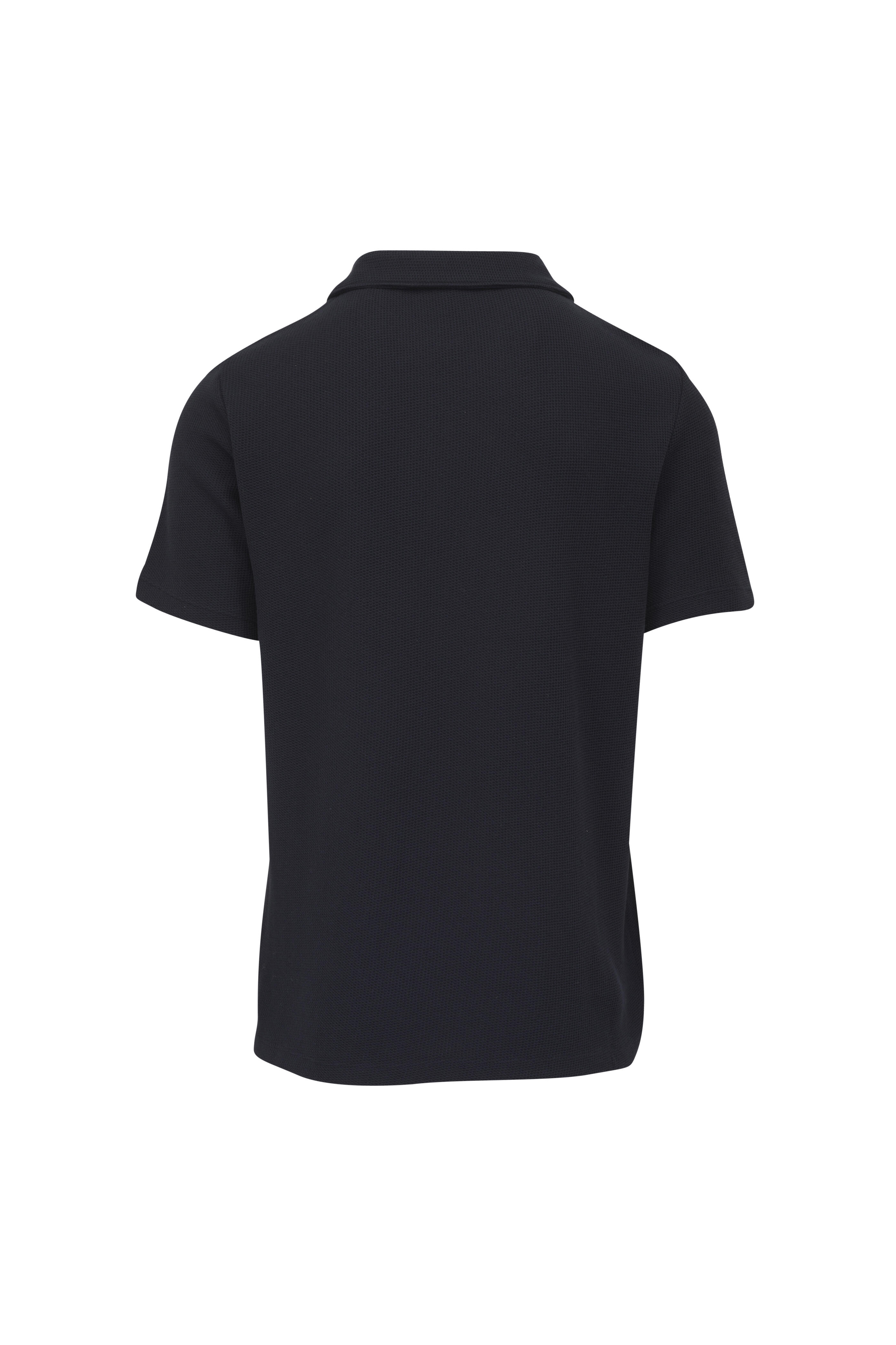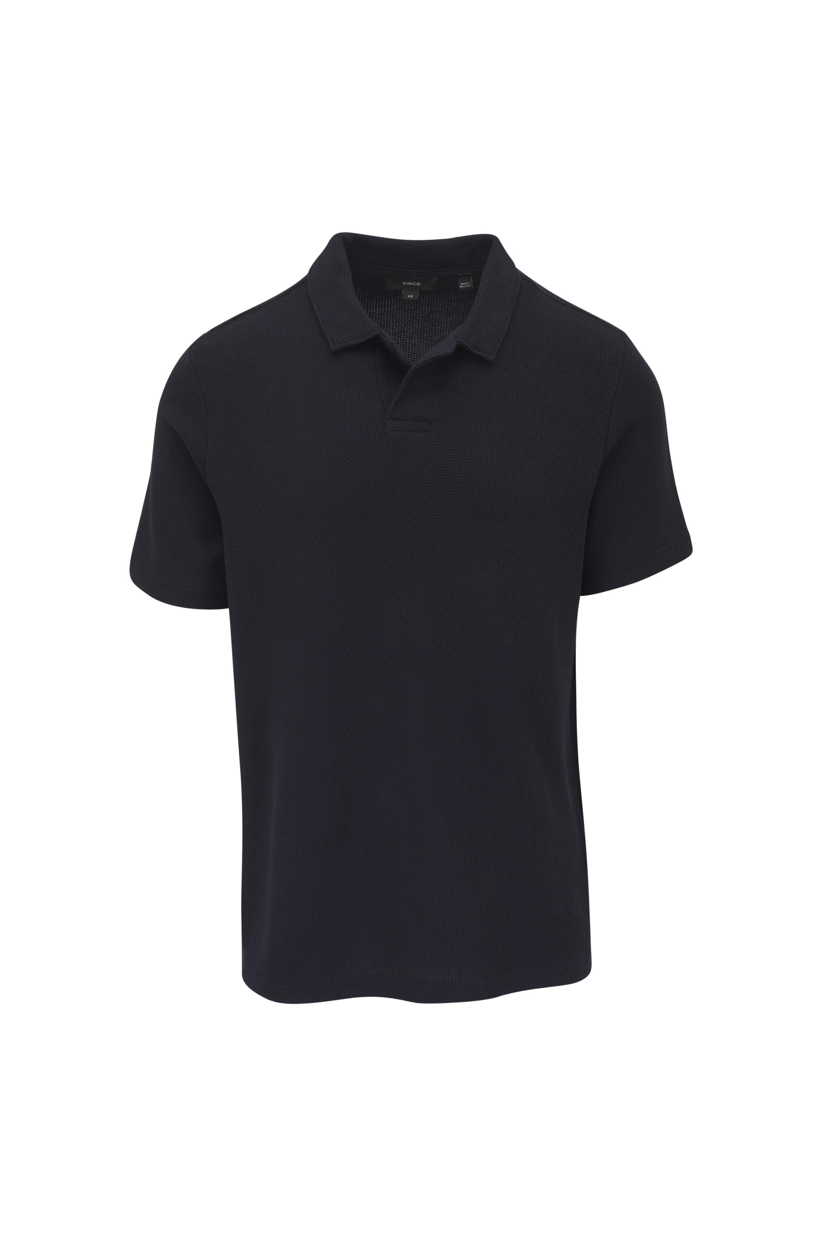 Spread collar. V-neckline. Made in Peru. 53% polyester, 47% cotton. Machine wash.