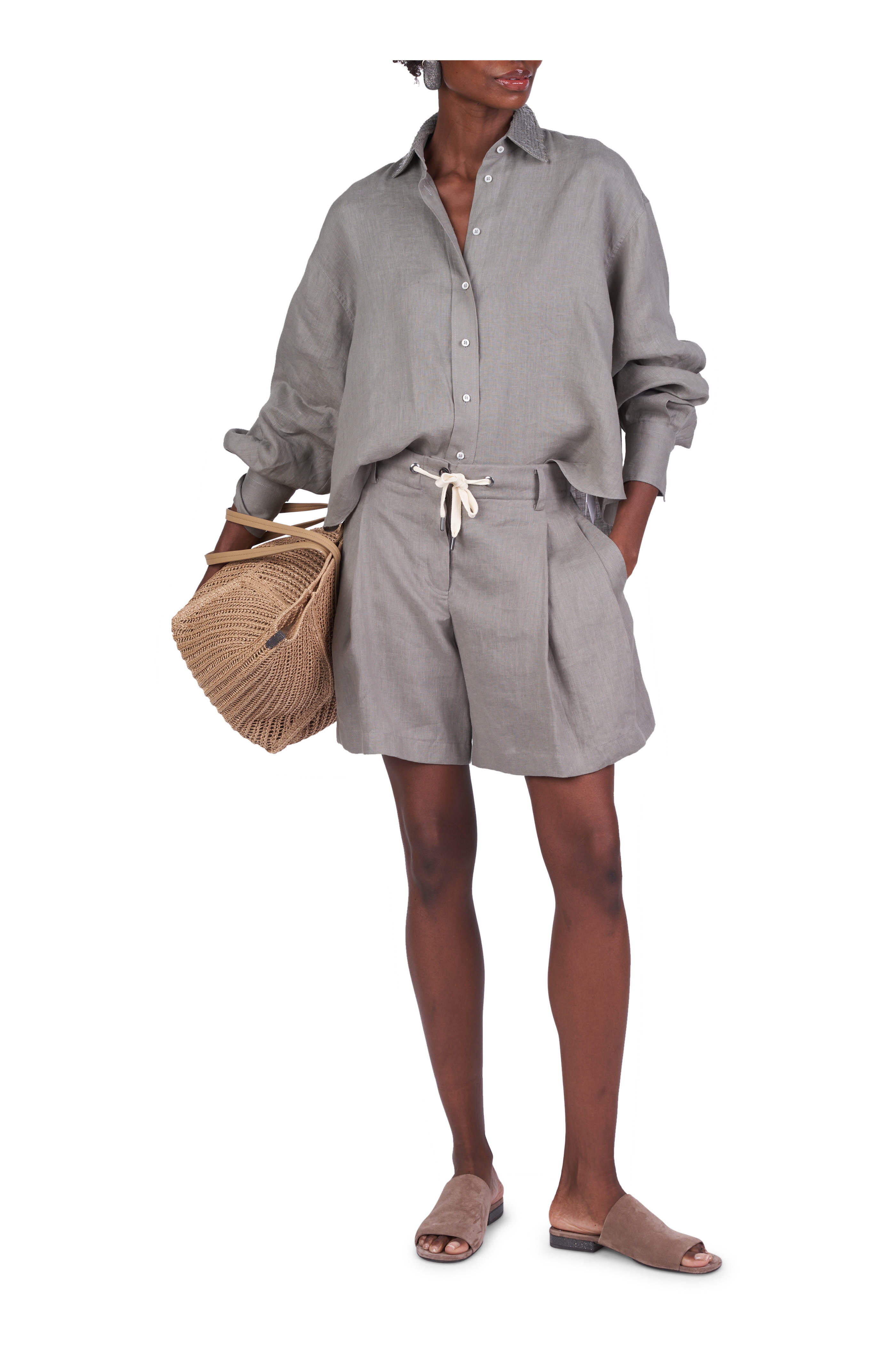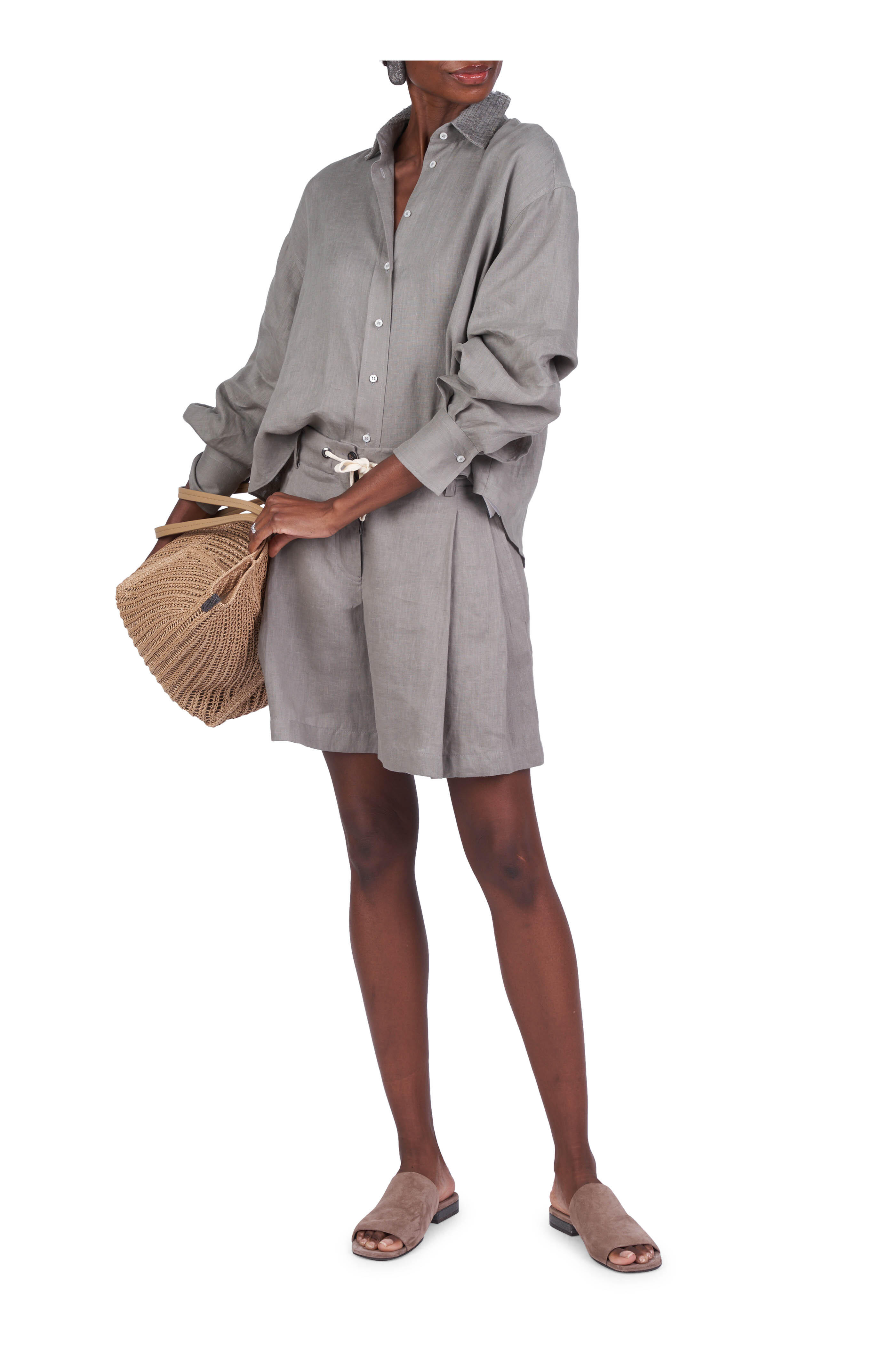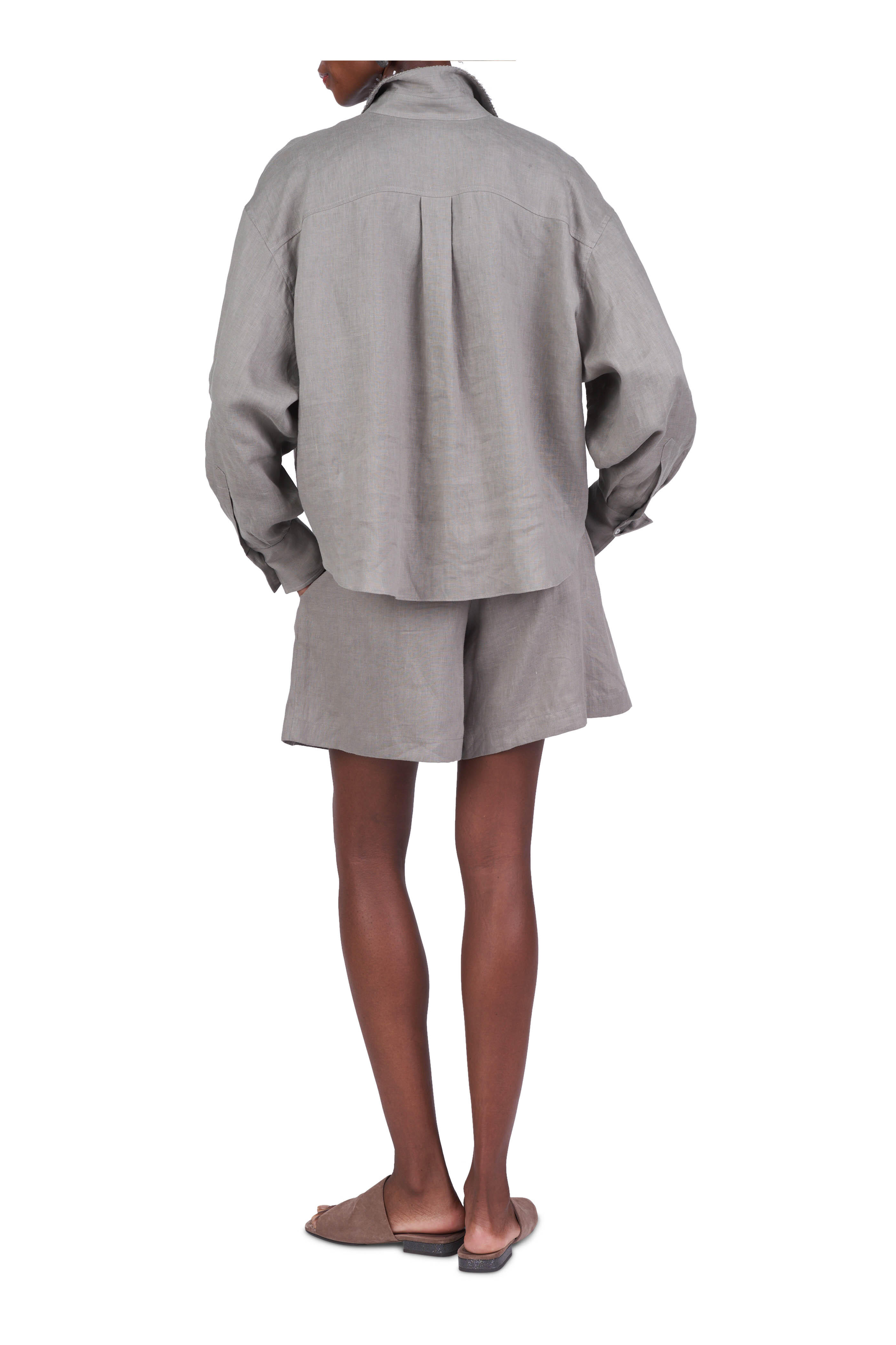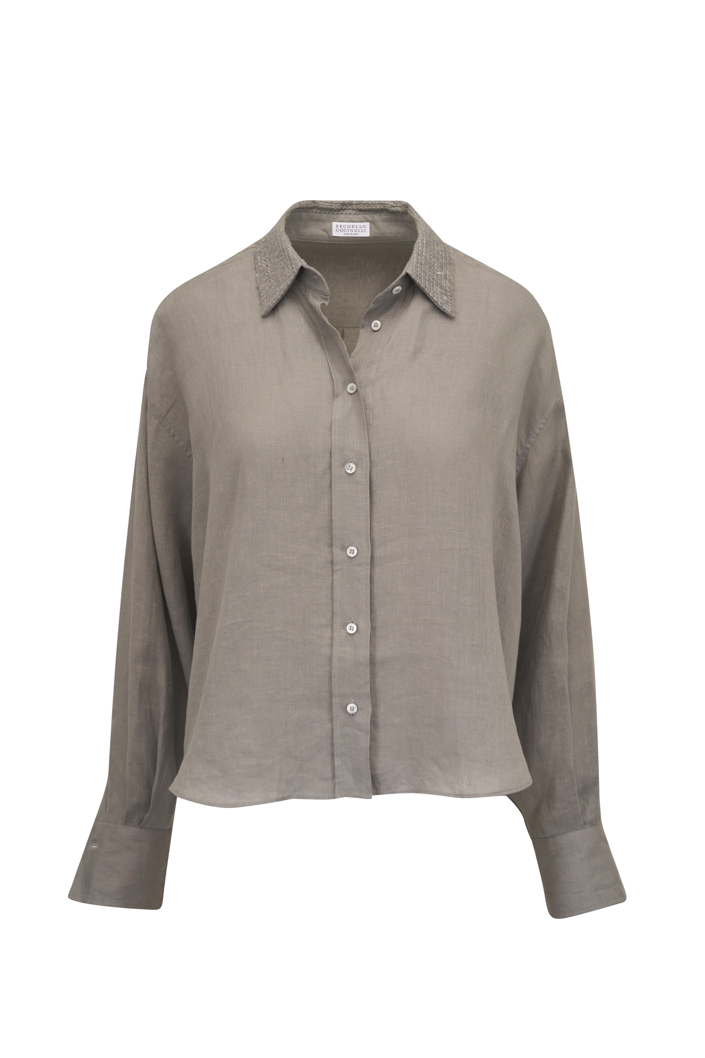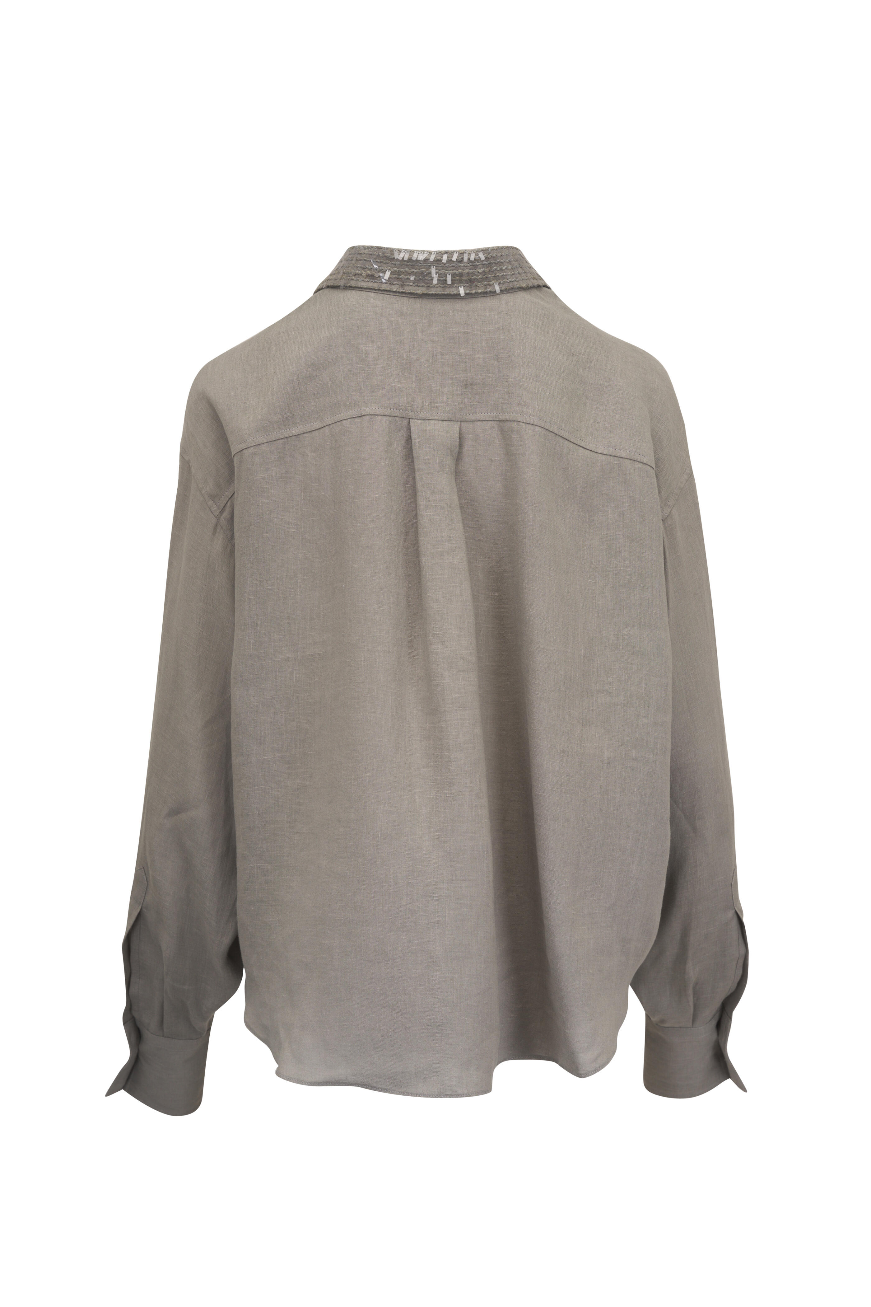 Safari Green Linen Sequin Collar Blouse