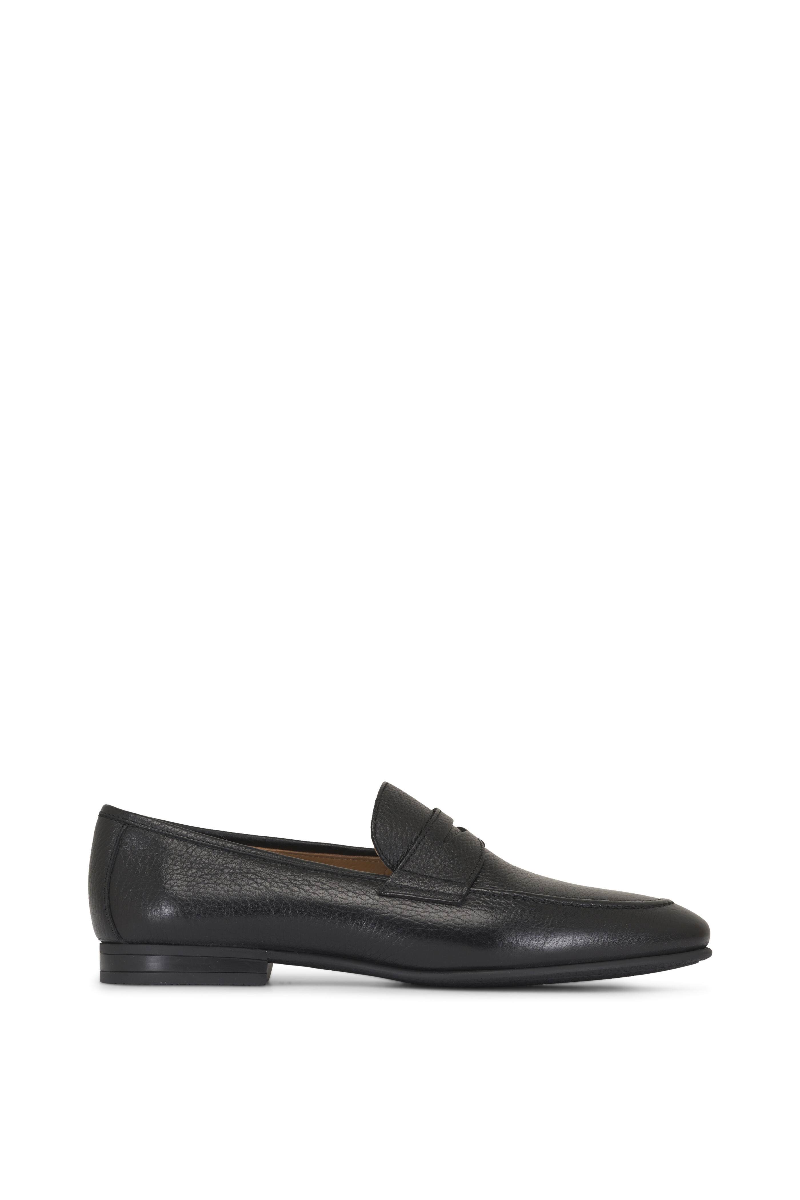 Leather upper. Apron toe. Penny strap at vamp. Leather lining & insole. Stacked heel. Rubber sole. Made in Italy.
