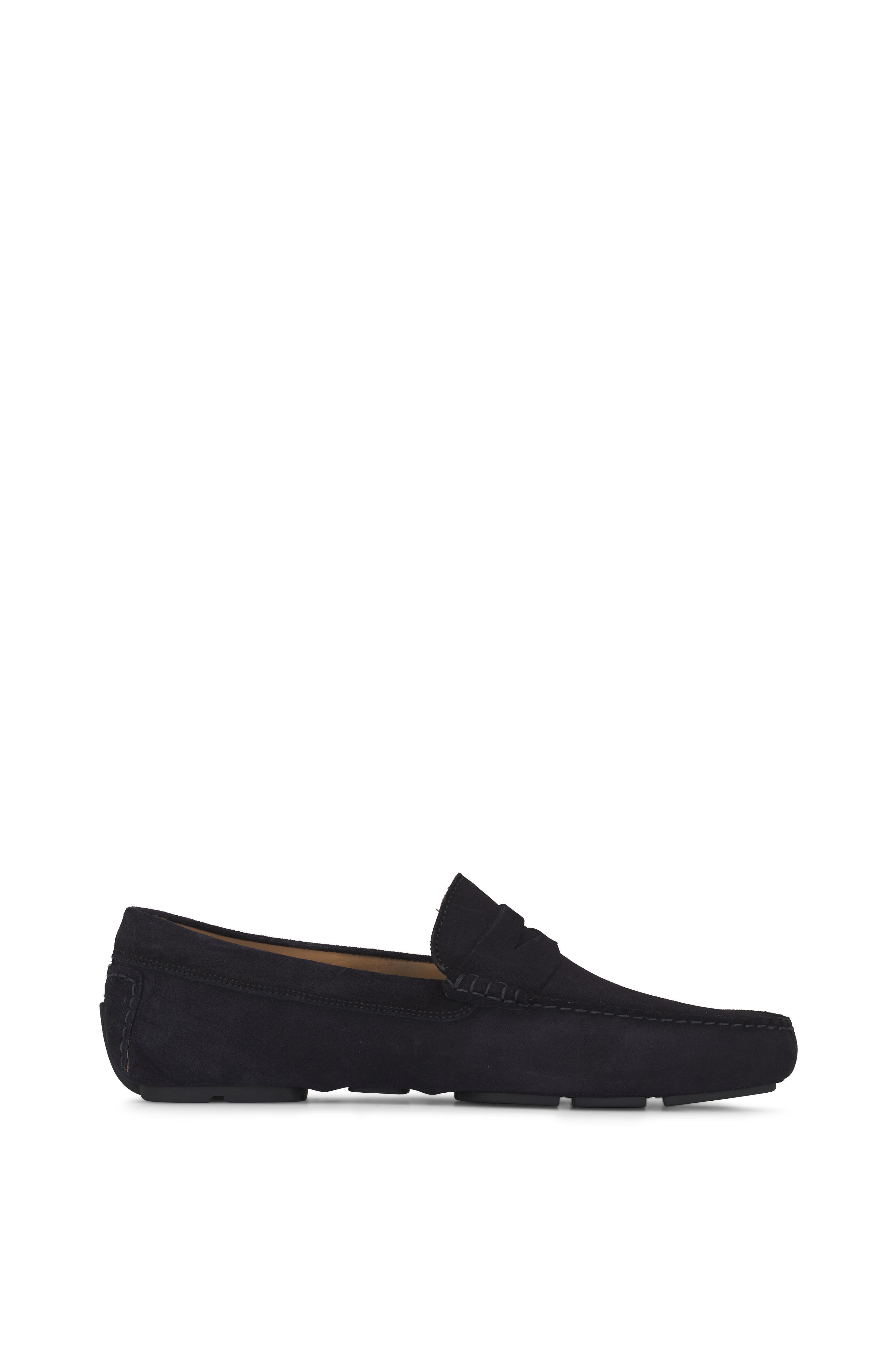 Suede upper. Penny strap at vamp. Slip on style. Leather lining and insole. Rubber sole. Made in Italy.