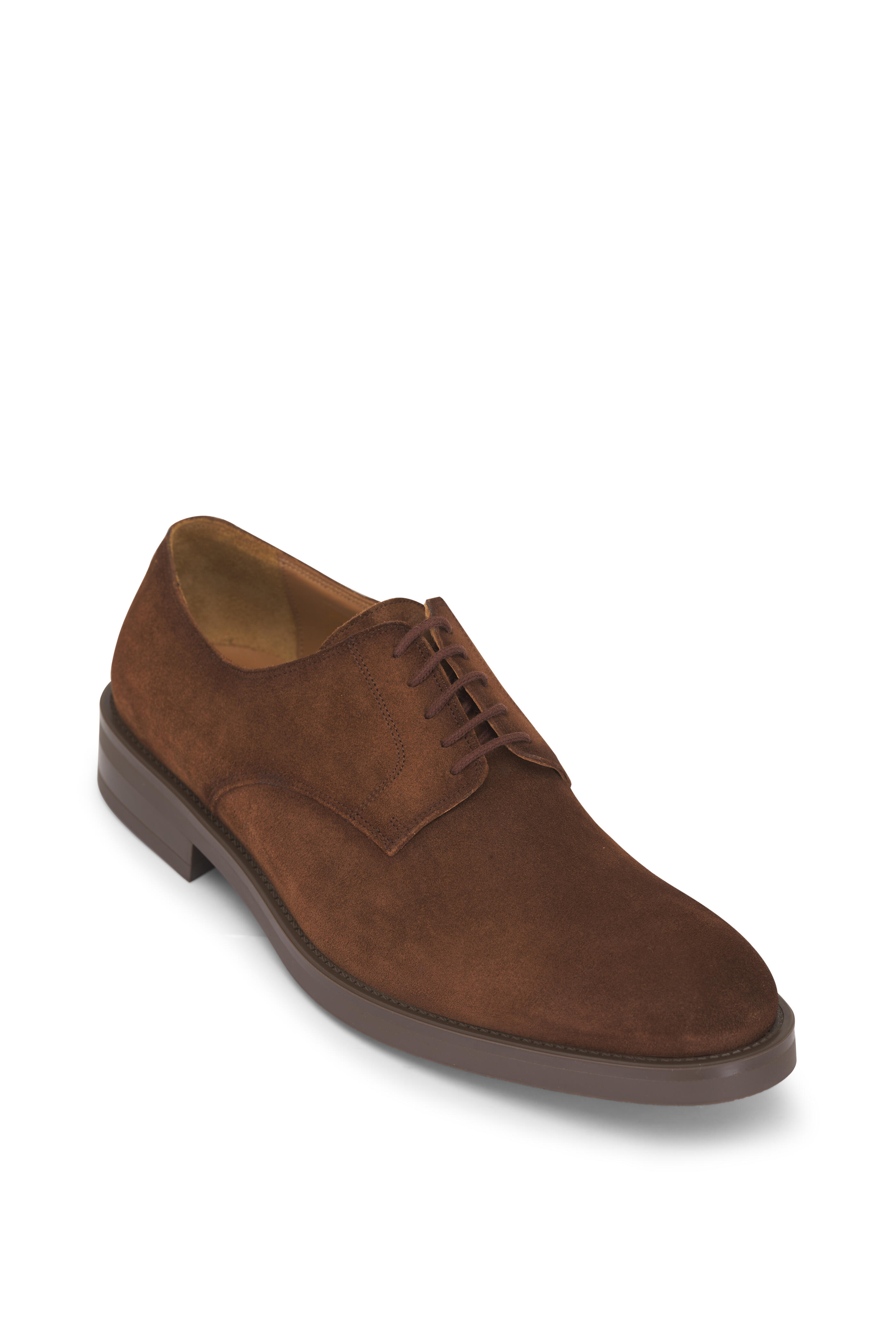 Suede upper. Lace up closure. Leather lining and insole. Stacked heel. Rubber sole. Made in Italy.