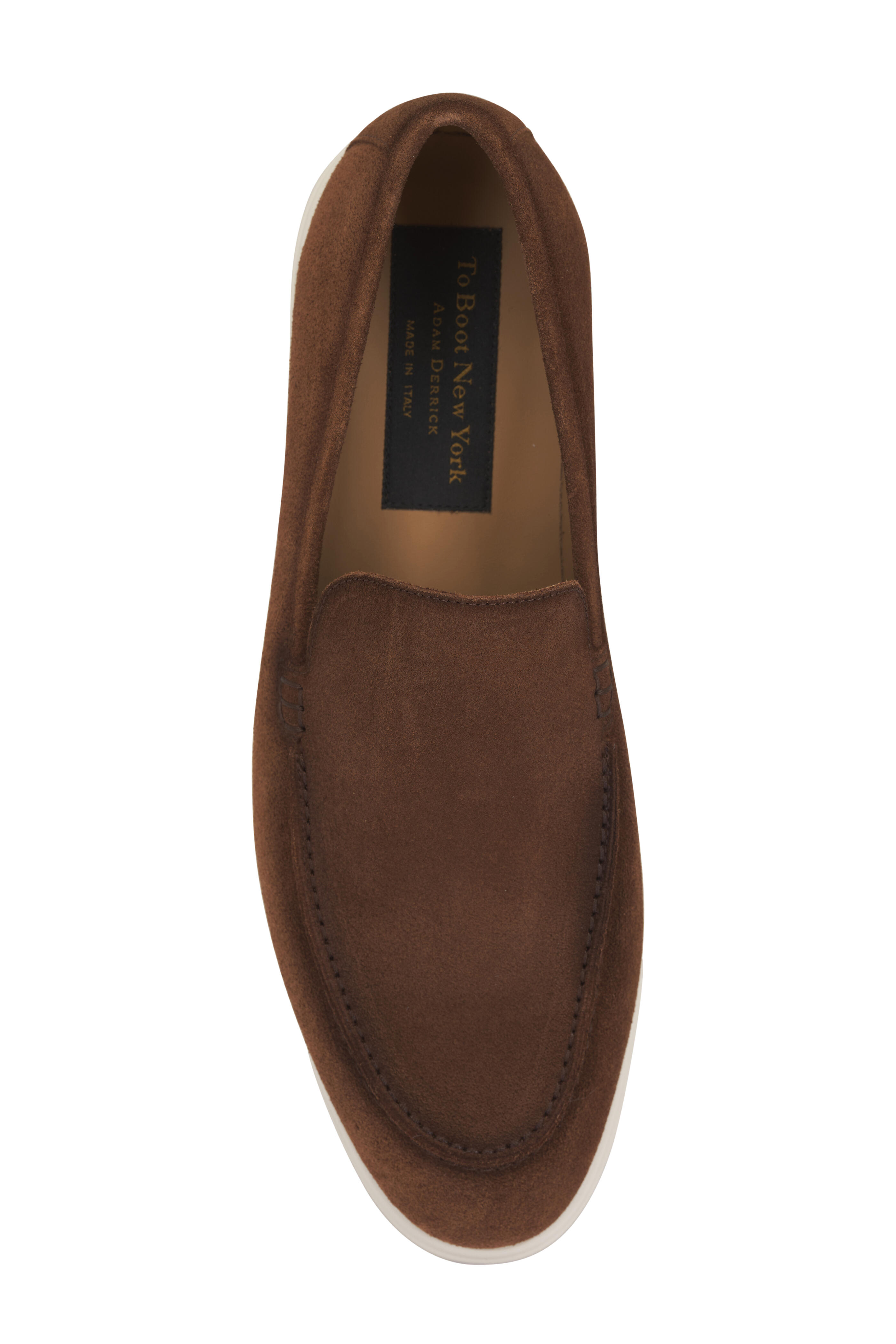 Suede upper. Moc toe. Notched vamp. Leather lining and insole. Rubber sole. Made in Italy.
