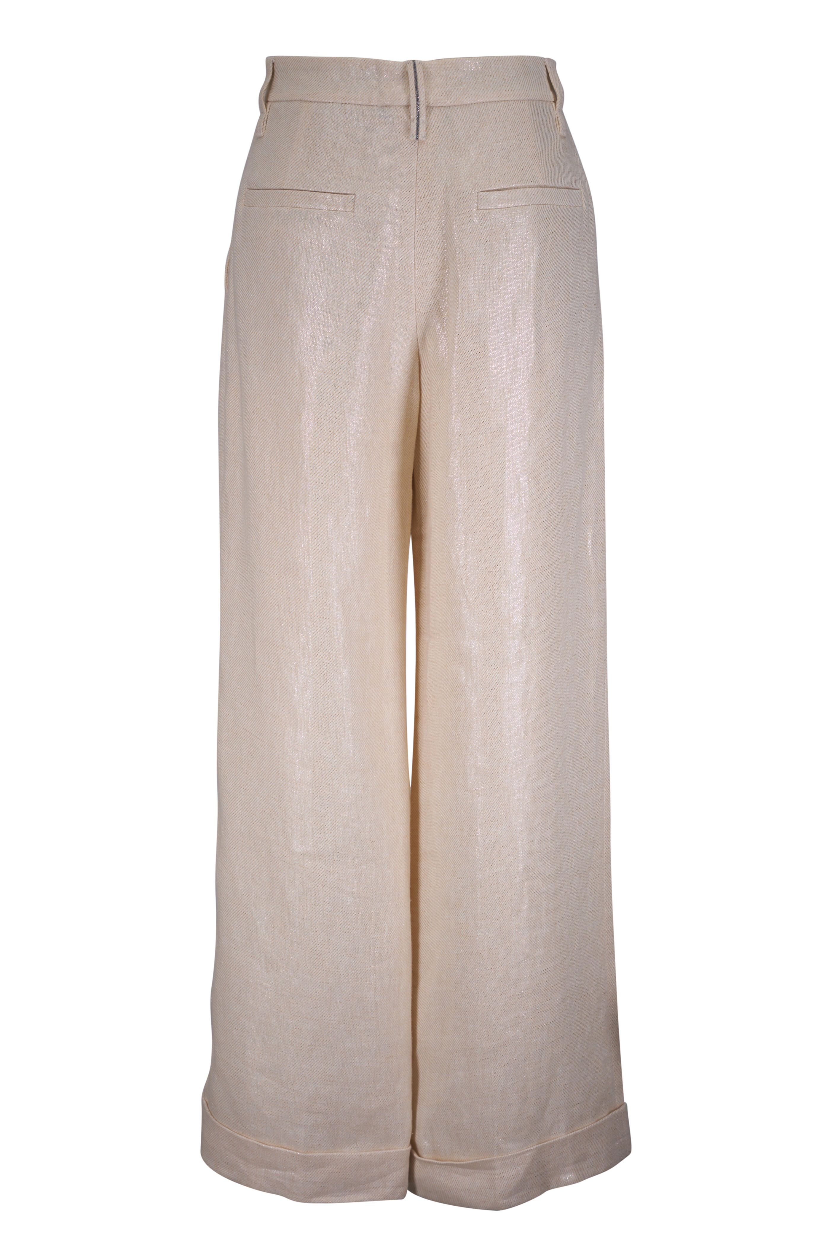 Cream Lame Linen Cuffed Pant
