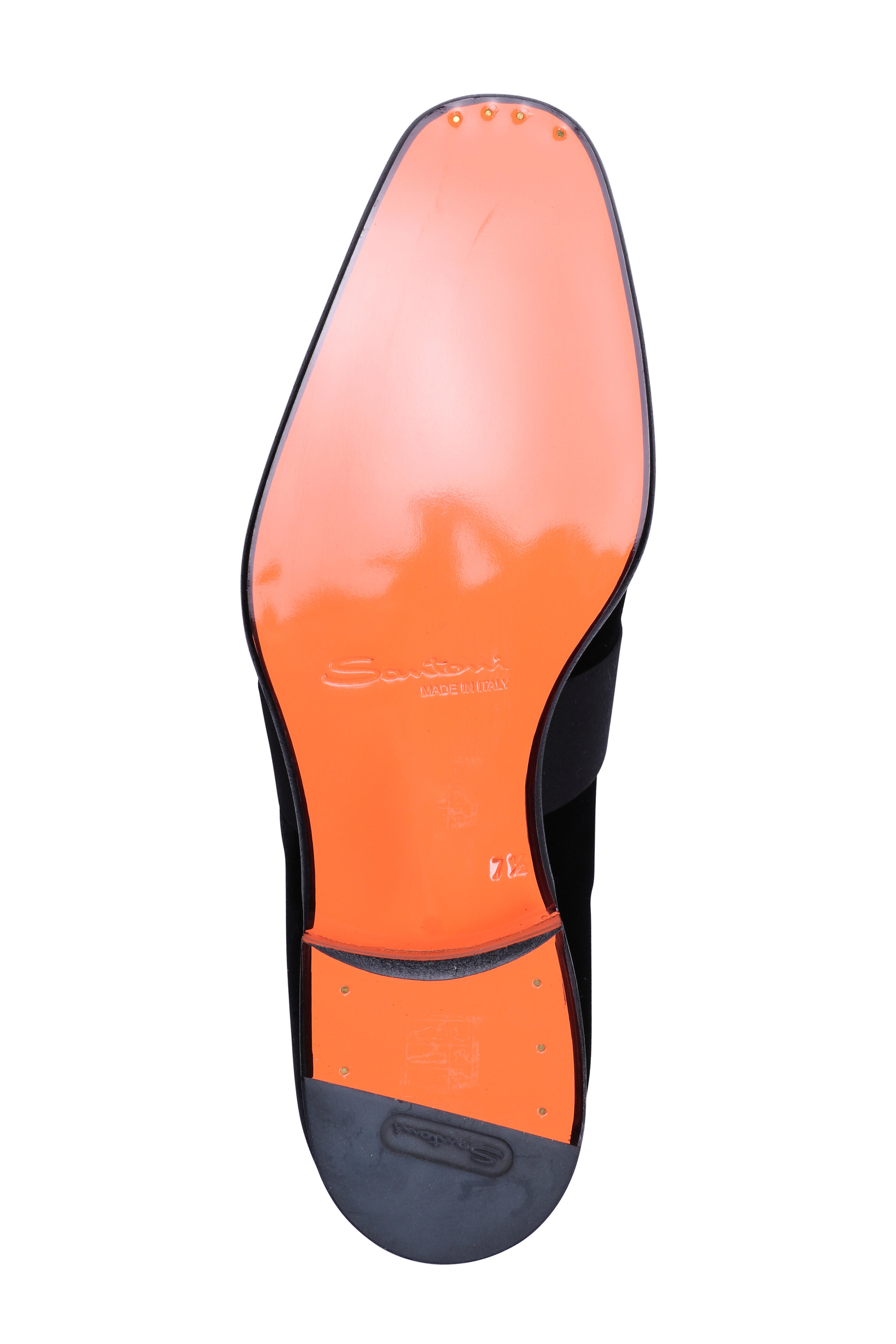 Velvet and grosgrain upper. Leather lining and sole. Almond toe. Grosgrain strap. Notched vamp. Slip-on style. Made in Italy. All sizes listed are in US measurements.
