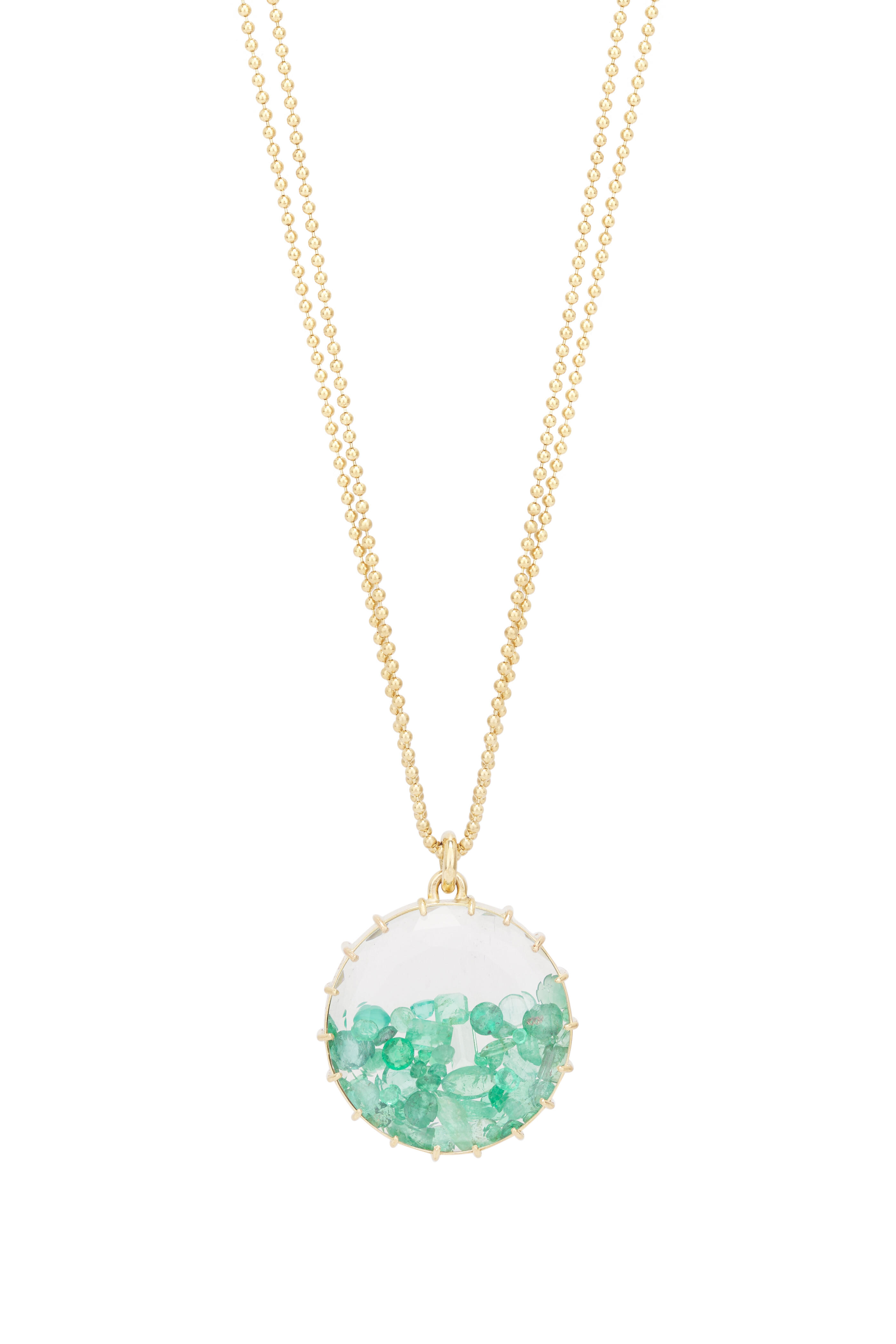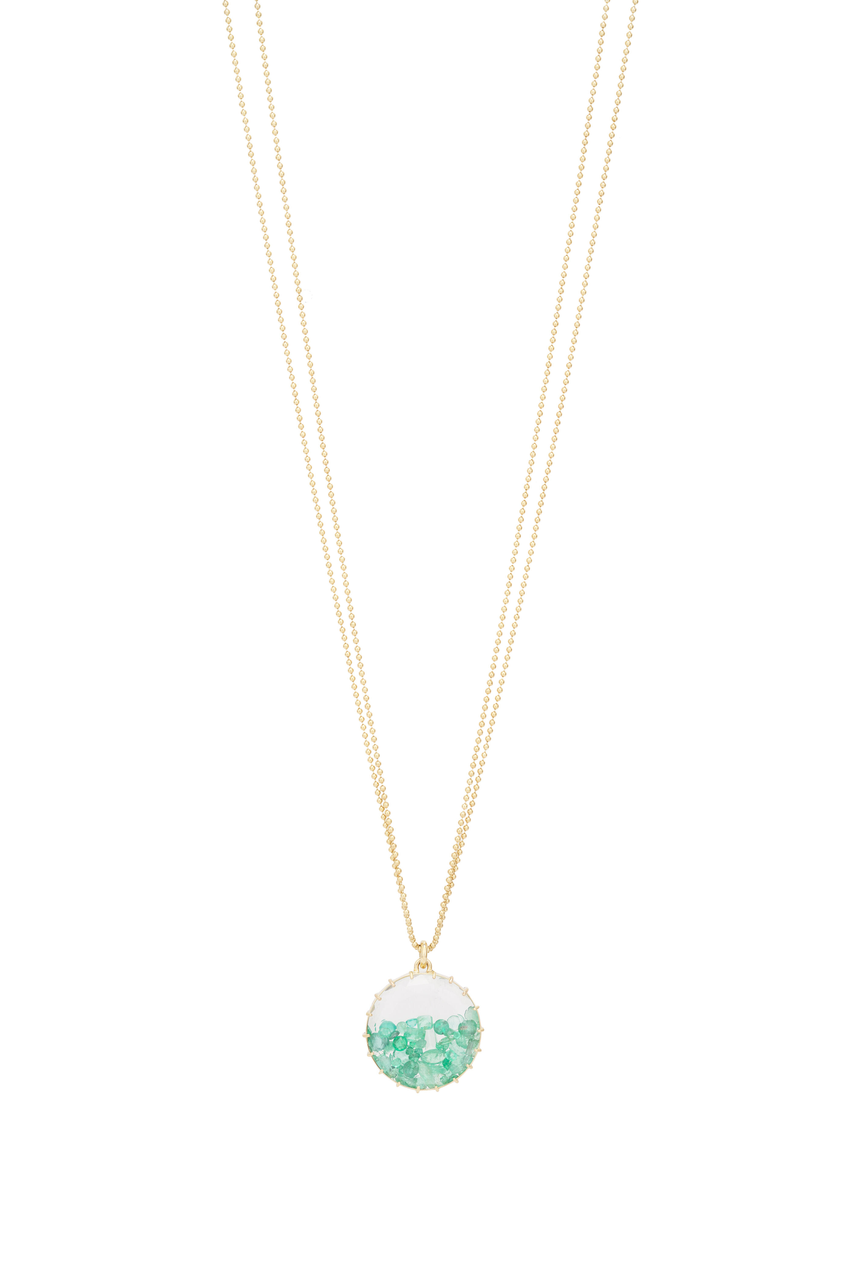 18k Yellow Gold 2 Chain Emerald Shake Necklace