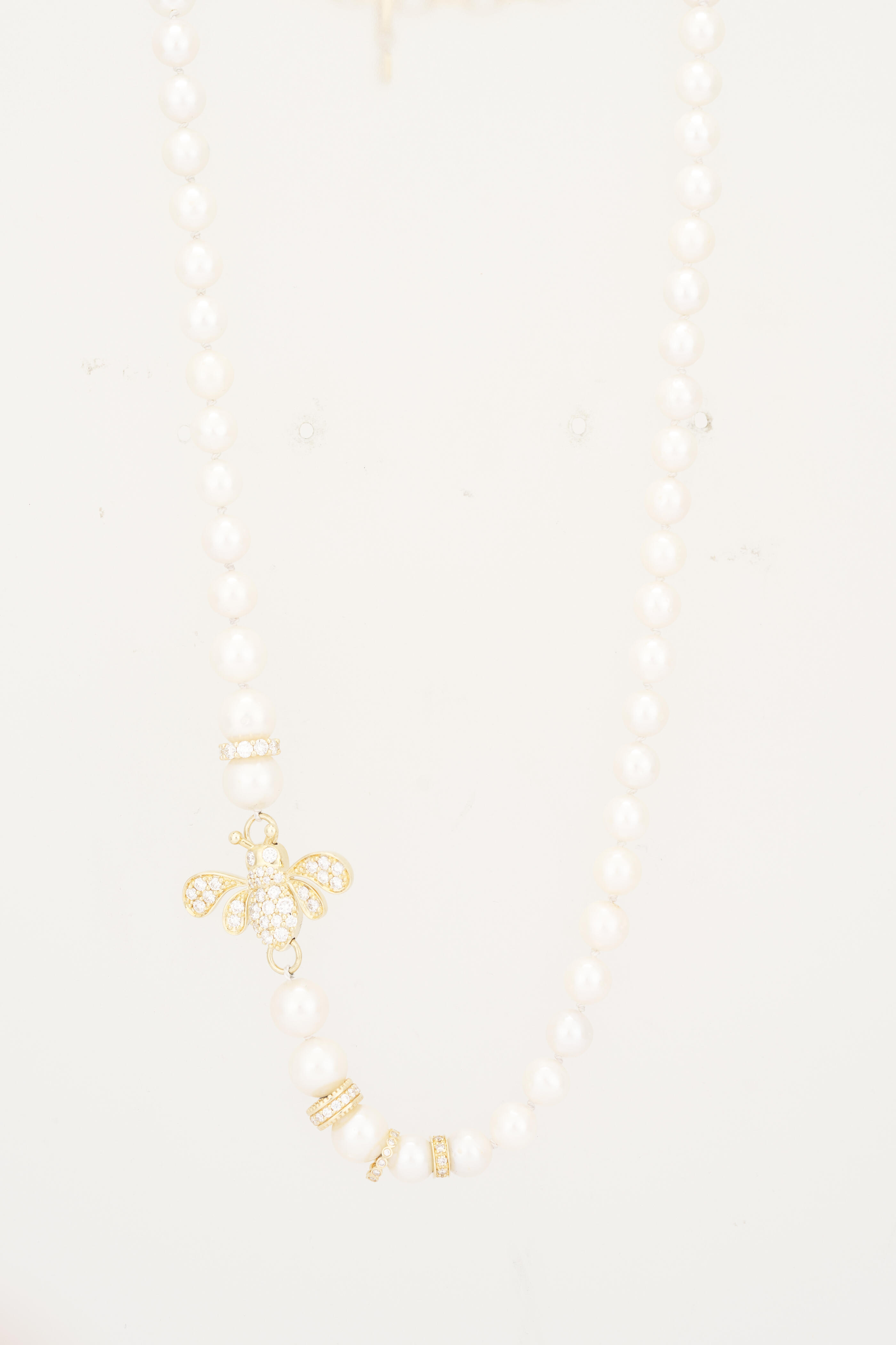 14k Yellow Gold Pearl & Diamond Bee Necklace