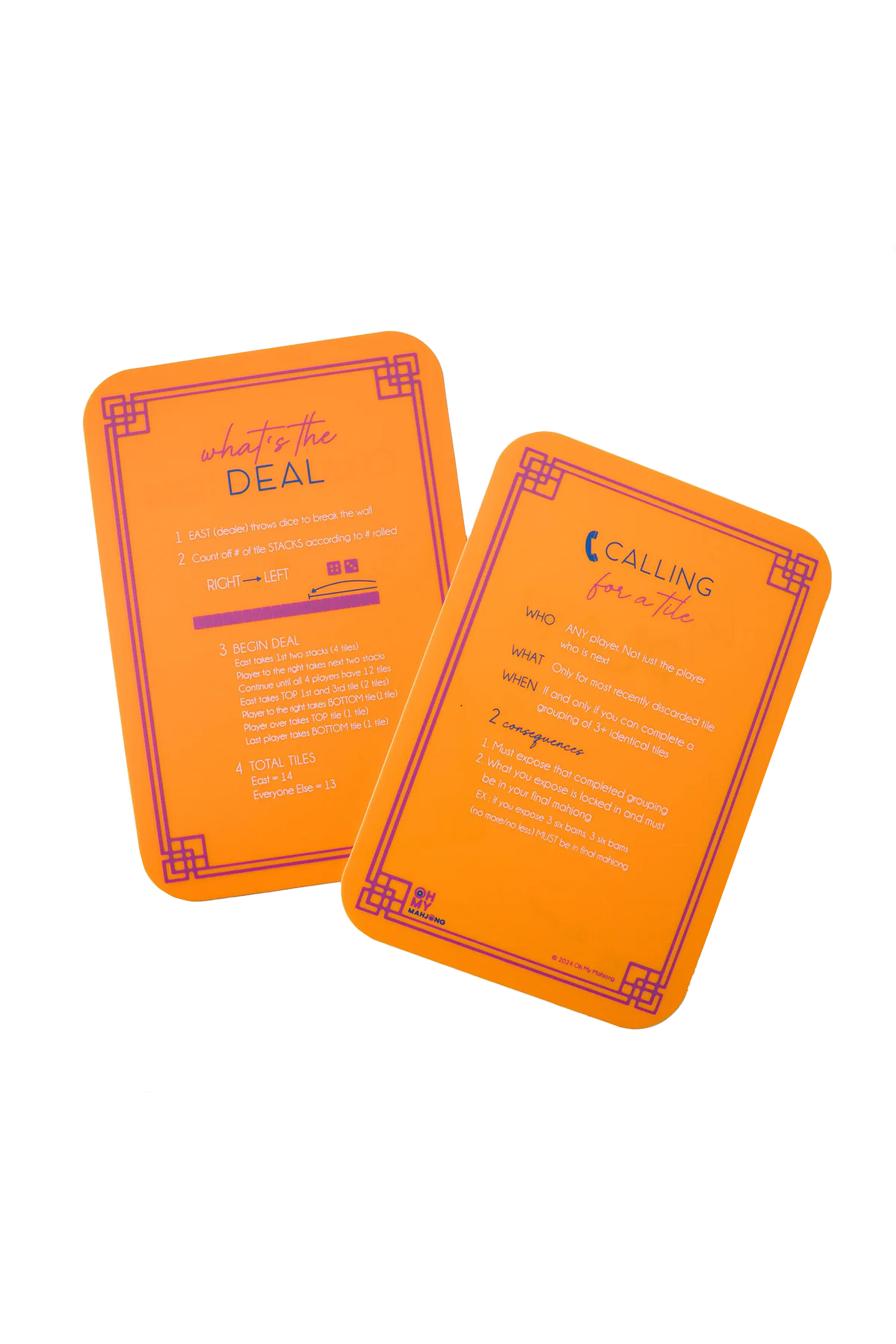 Introducing Mahjong Tile Shufflers, the ultimate solution for effortless tile shuffling in Mahjong games. Say goodbye to tedious shuffling and hello to seamless entertainment with these must-have additions to your Mahjong collection. Whether treating yourself or surprising a fellow player, these shufflers make the perfect gift for any occasion.. Comes with 2 shufflers, rules and tips printed on all 4 sides. Dimensions: 5.25” x 7.75”.