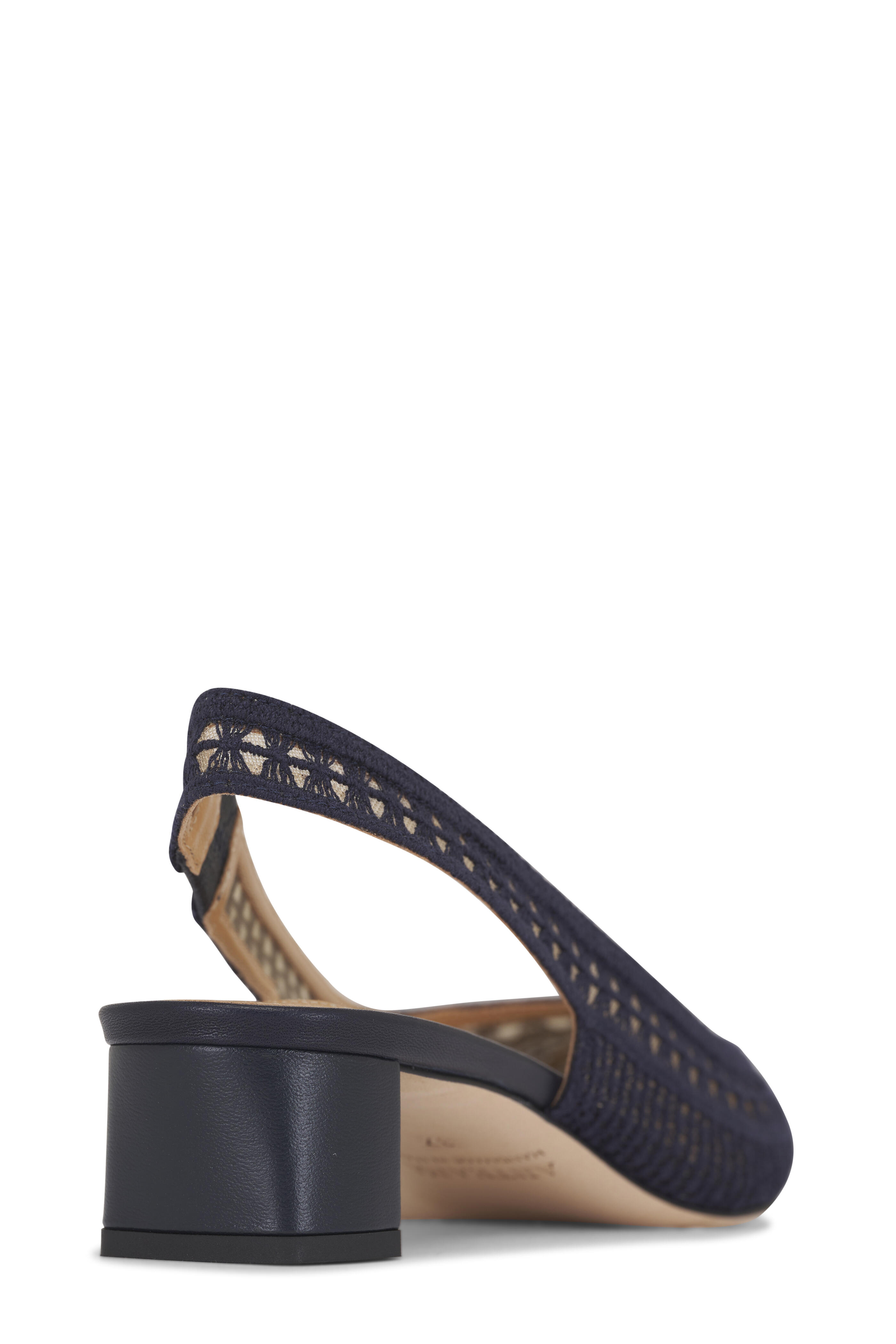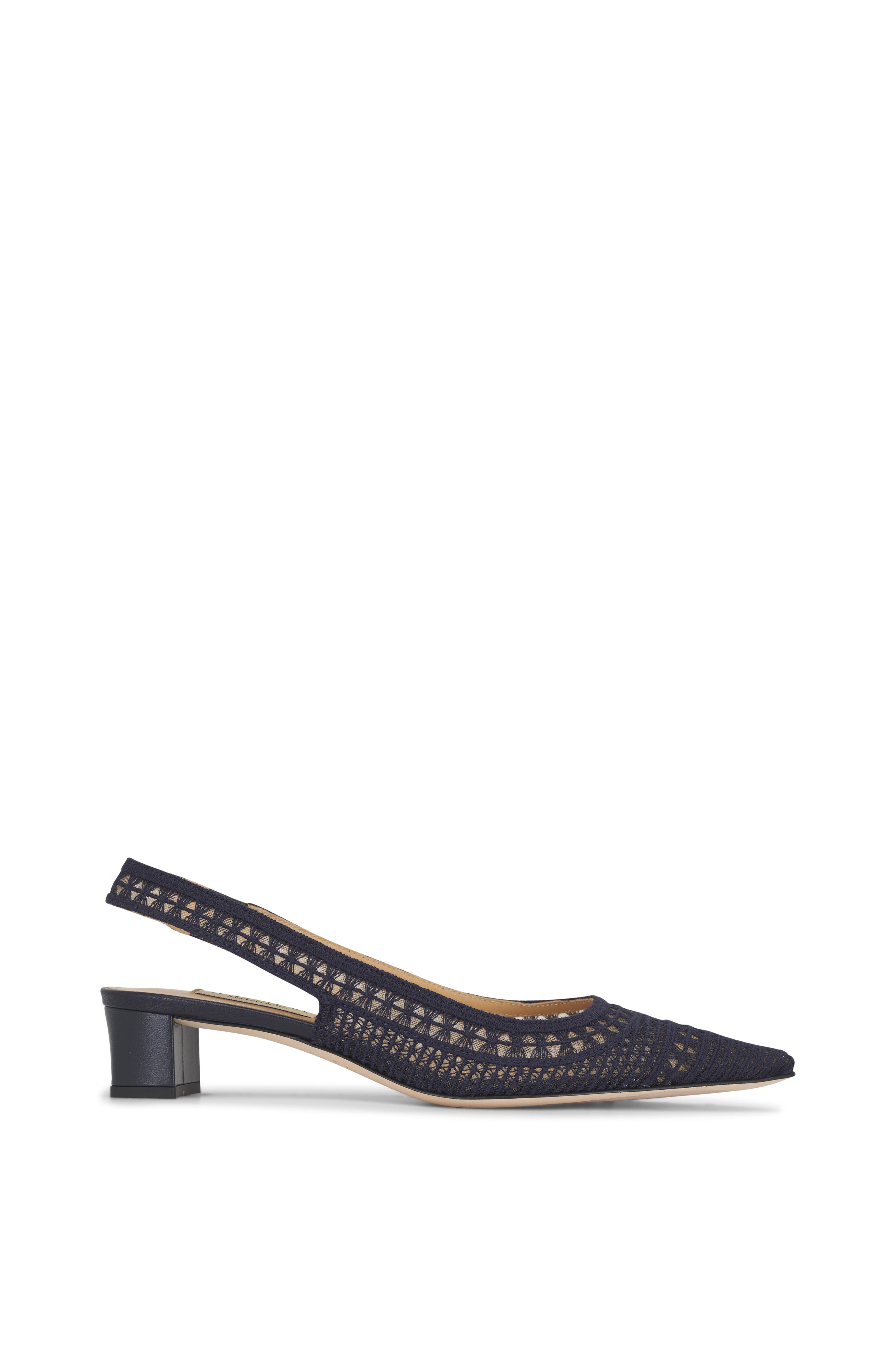 Crochet mesh and leather upper. Pointed toe. Slingback. Block heel; rubber sole. Leather lining and insole. Leather sole. Made in Italy. Heel measurement: 35mm.