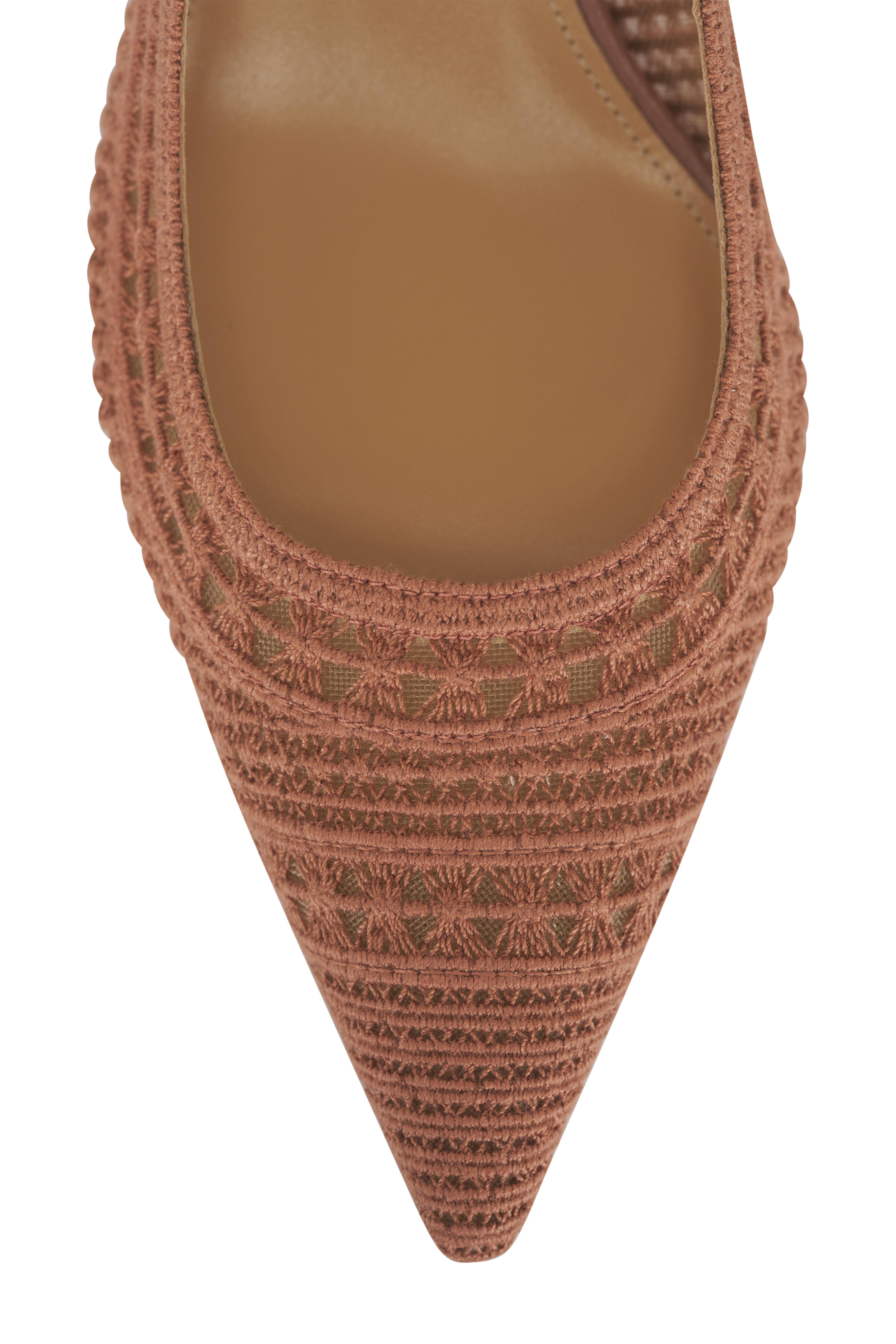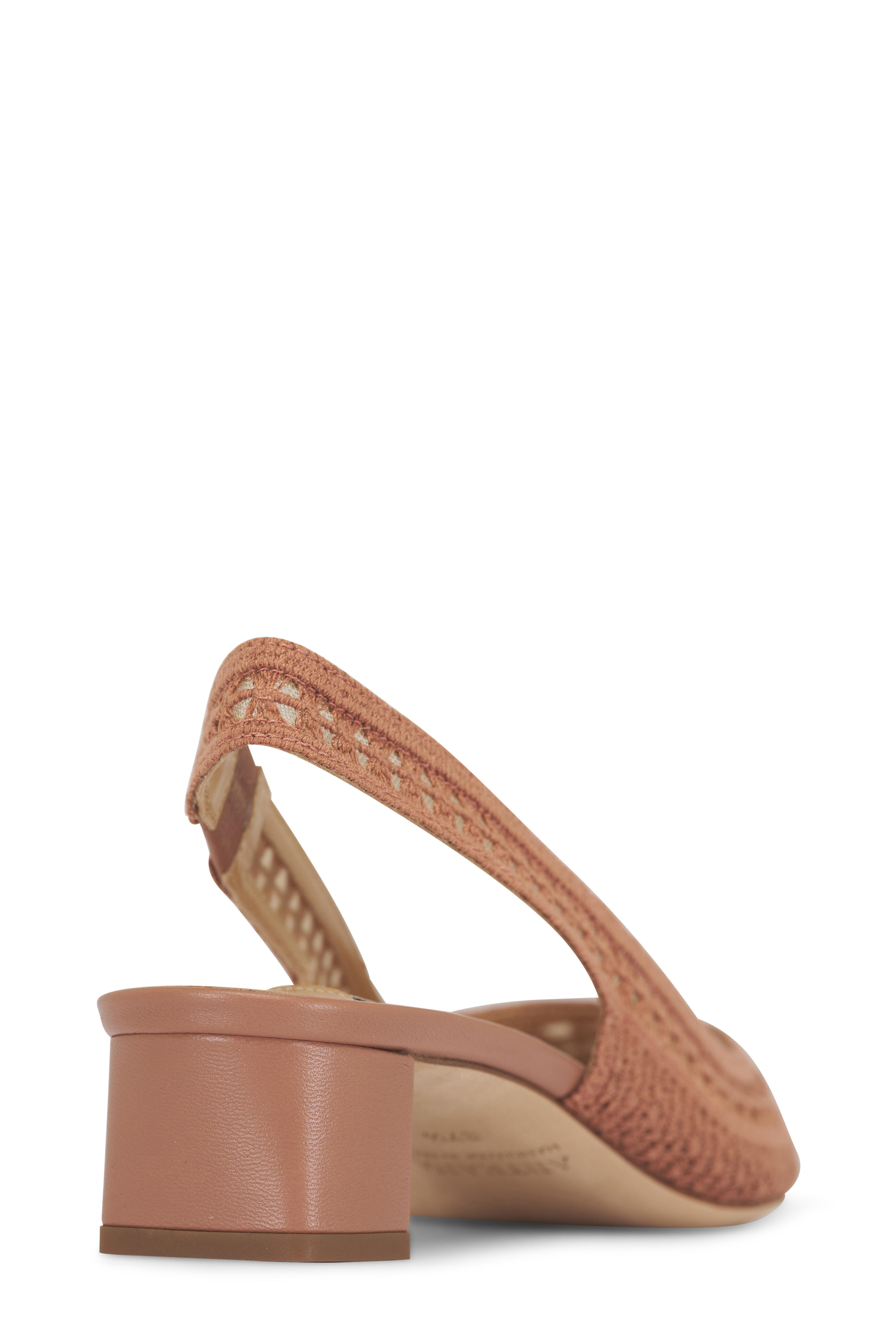 Crochet mesh and leather upper. Pointed toe. Slingback. Block heel; rubber sole. Leather lining and insole. Leather sole. Made in Italy. Heel measurement: 35mm.