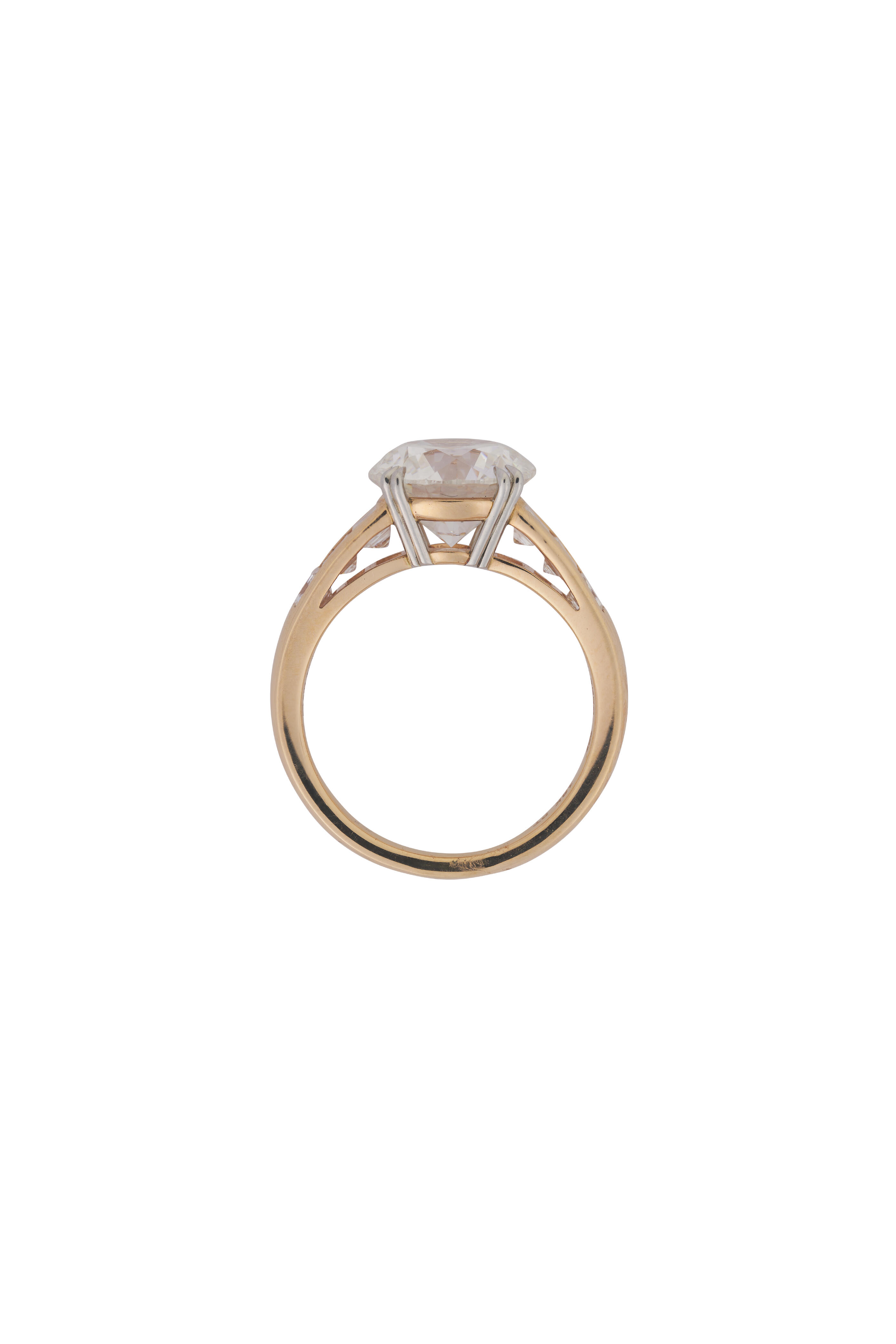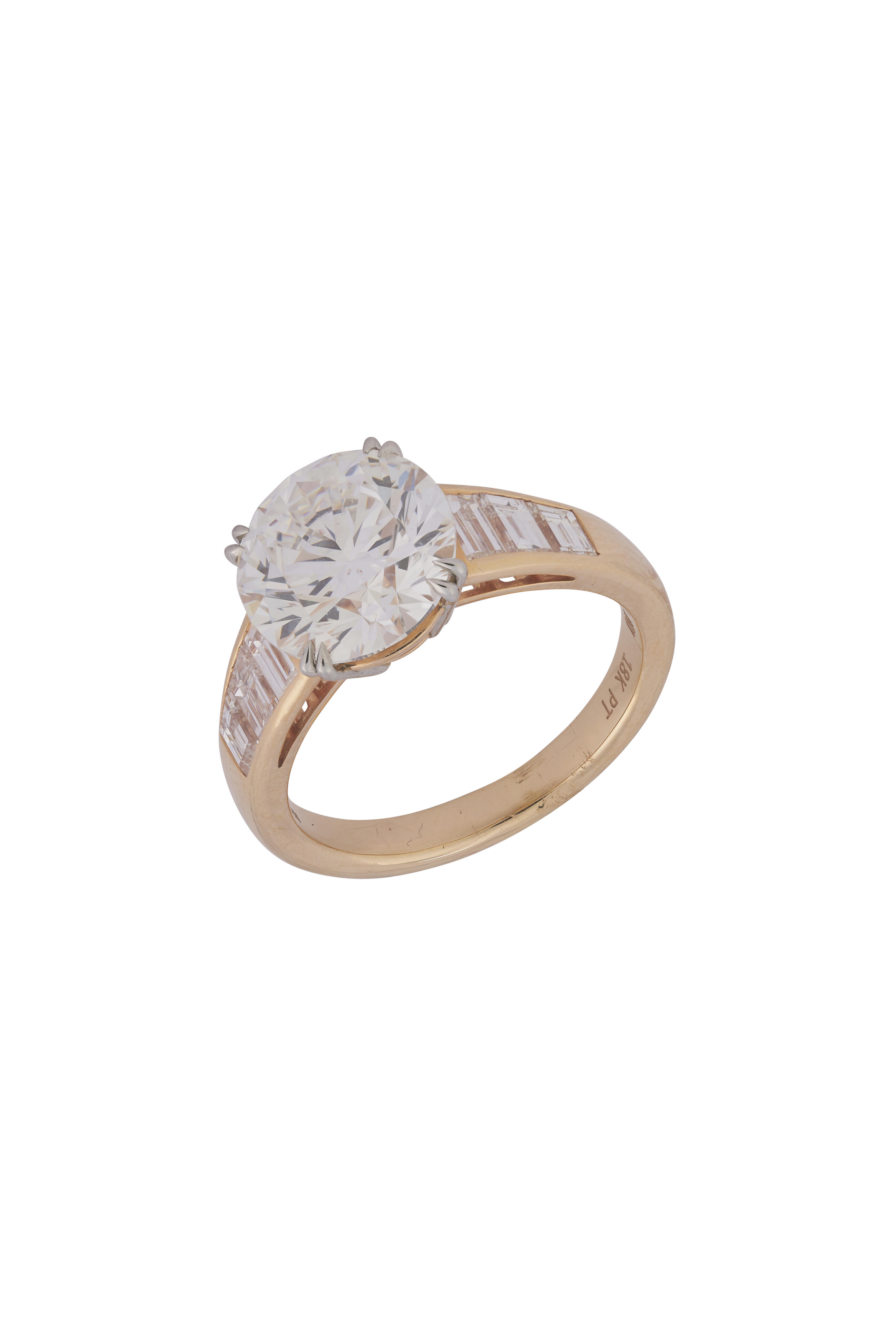 18k Rose Gold. 3.22 ct Round Diamond. 0.98 ct Trapezoid Diamond.